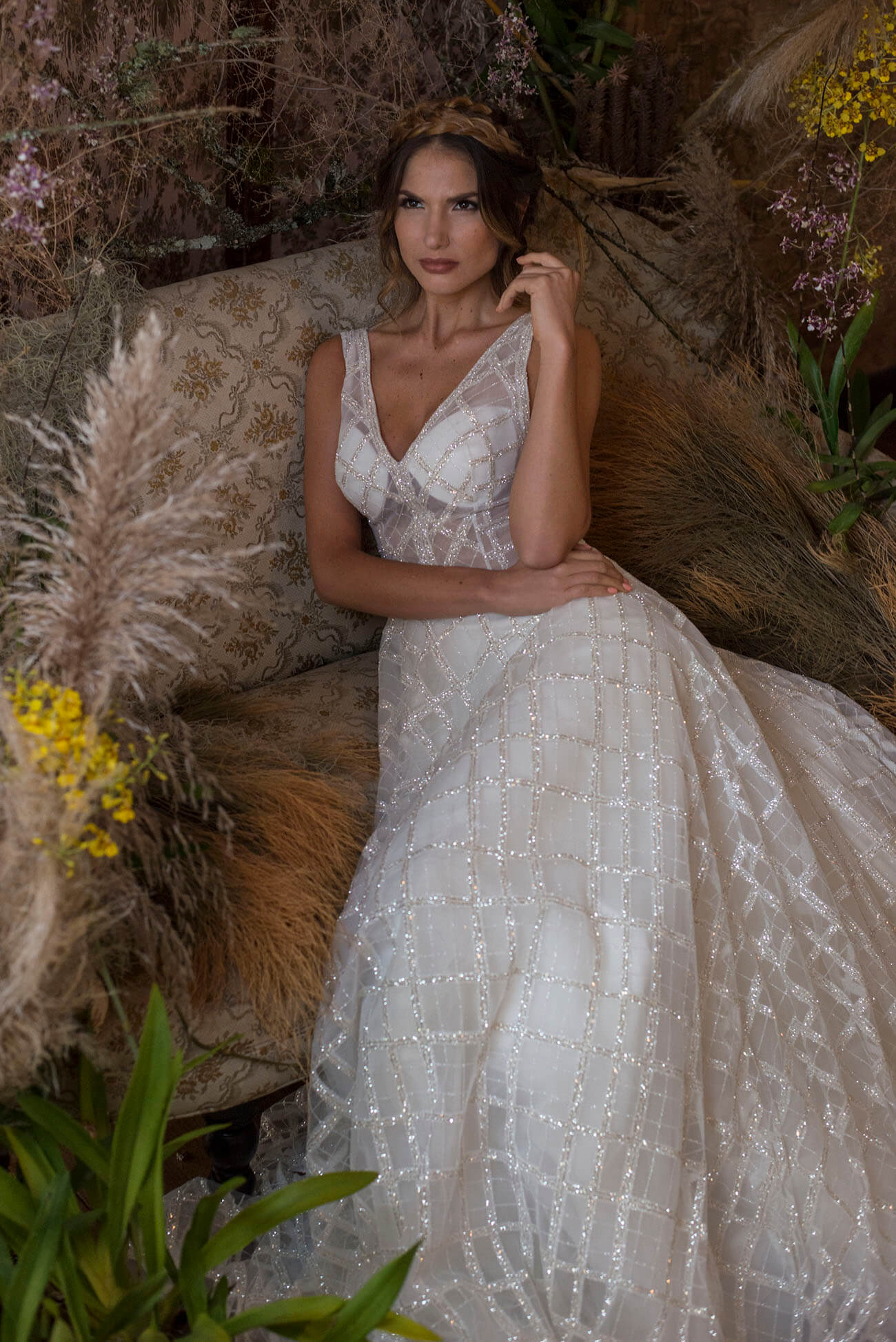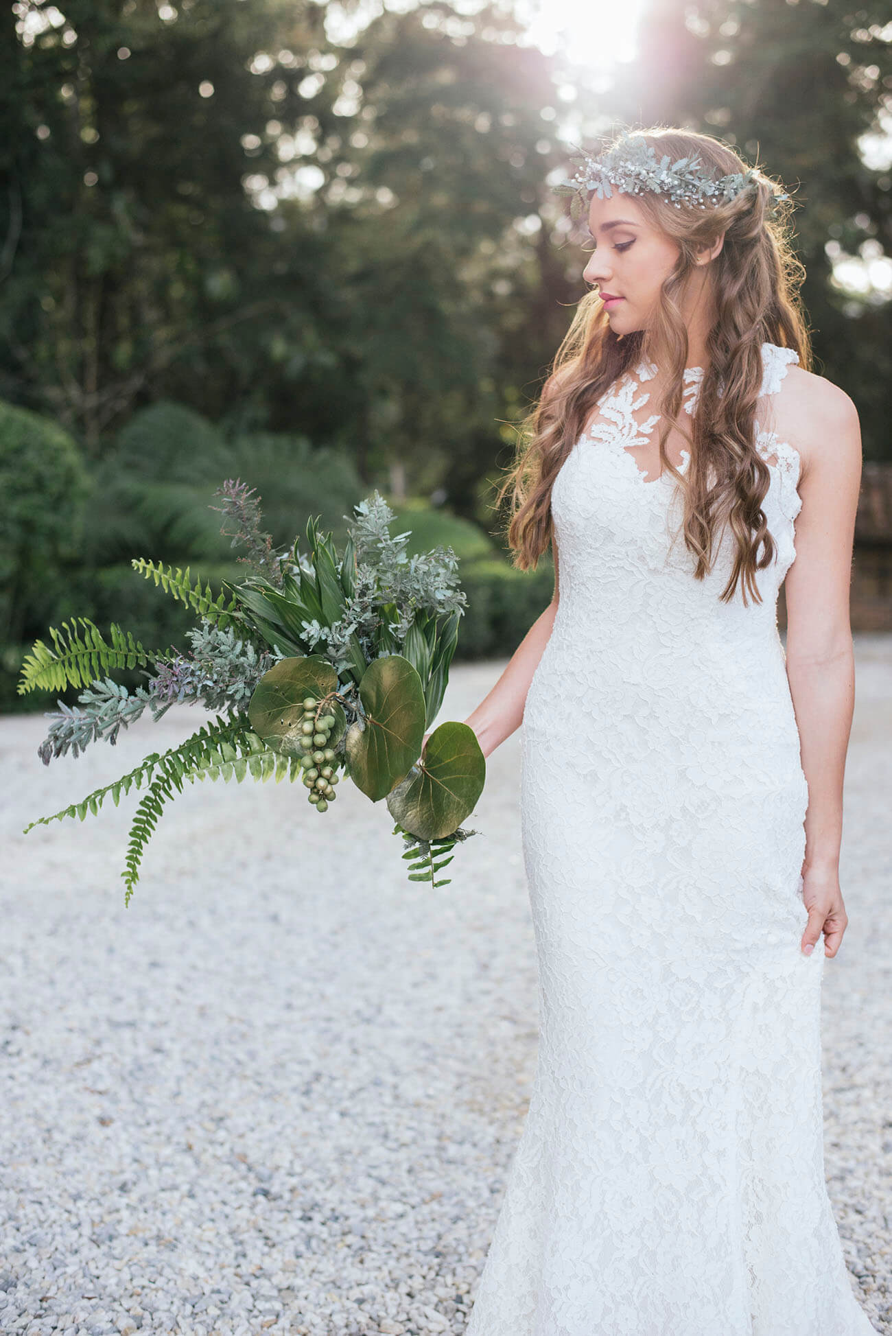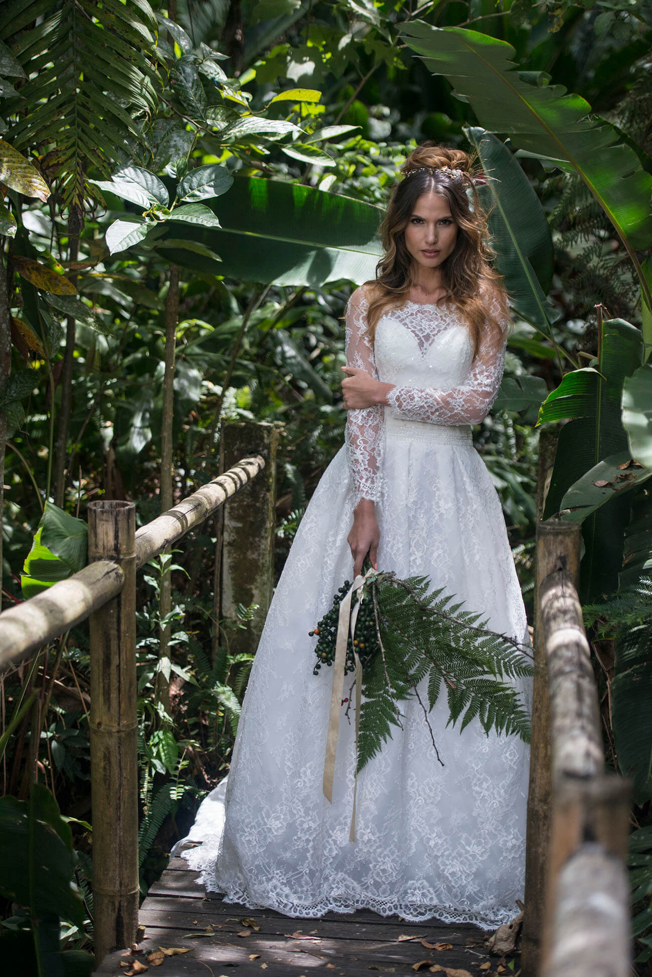 Para las novias que aman el verde, la tendencia greenery parece no agotarse en 2018. De ahí nace esta propuesta de yugo con variedad de helechos, acacias y follaje.