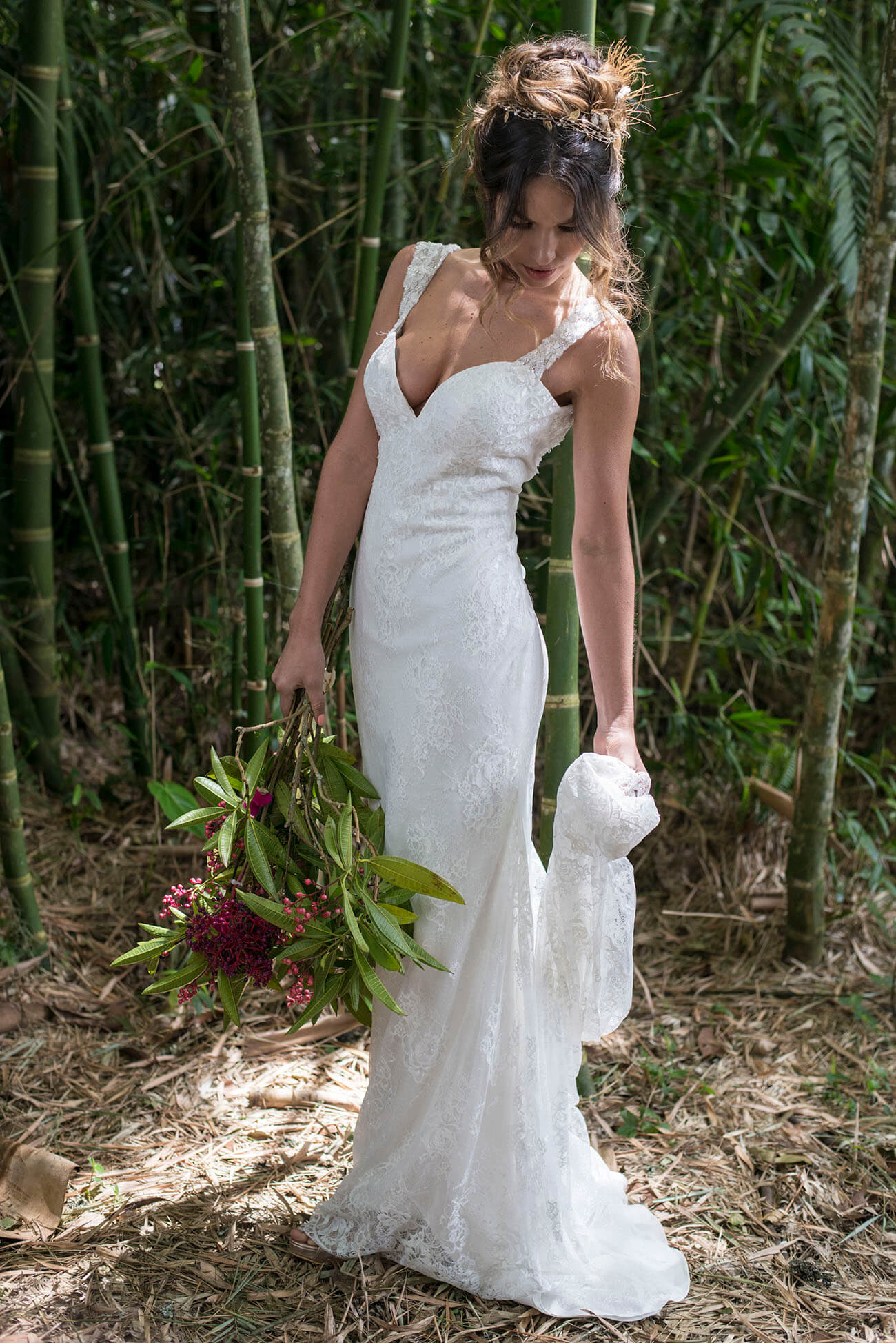 Modelo: Daisy López. Locación: Hacienda Fizebad. Vestido: La Esposa. Maquillaje: Marysol López. Fotos: Juan Camilo Méndez. Ramo y producción: Juliana Arango, de Toque Rosa.