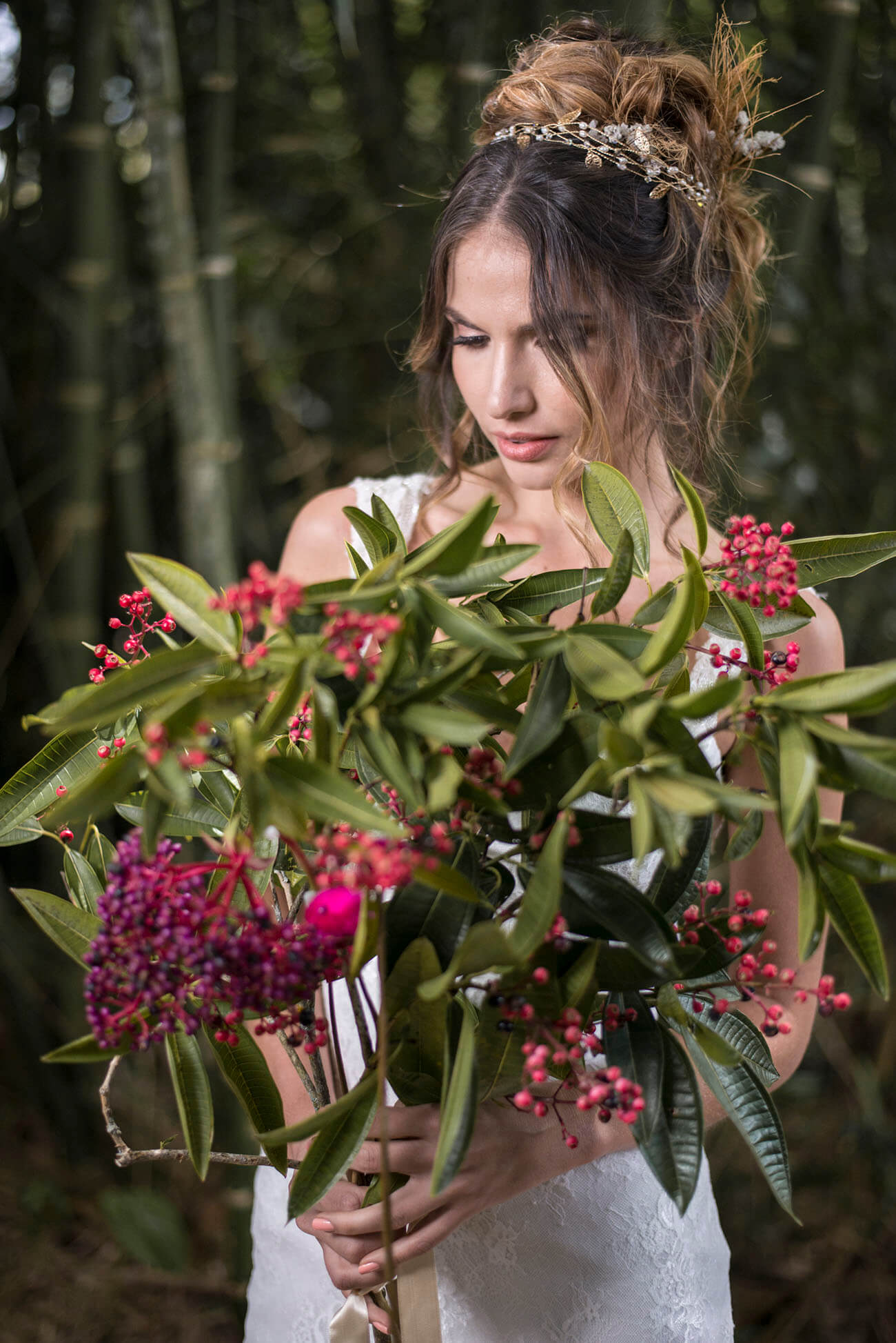 Modelo: Juliana. Locación: Chateau Foret. Vestido: Sposa Mía. Maquillaje: @veromiamakeup. Fotos: Juan Camilo Méndez – F Colectivo. Corona y ramo: Juliana Arango, de Toque Rosa.