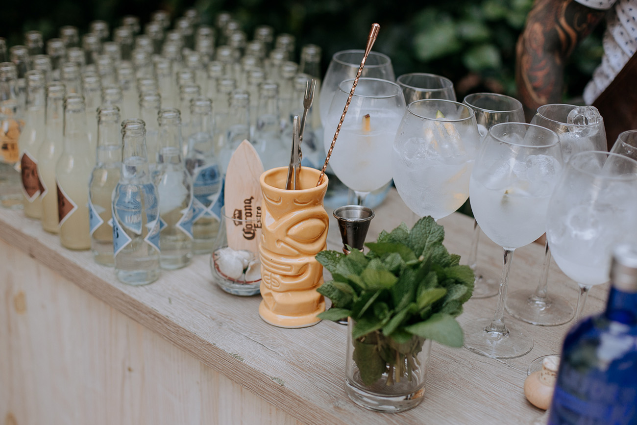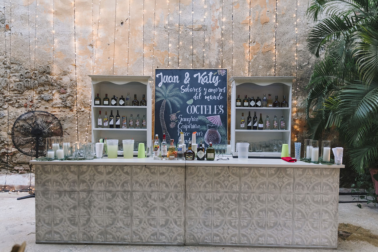 • El bar: ¿dónde se van a servir las bebidas? Lo fundamental en este punto es que la parte donde están los utensilios (vasos, cucharas, tragos, ingredientes) esté cubierta para que el desorden no se vea.