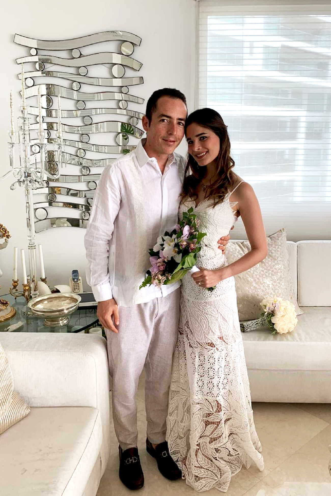 Desayunaron los cuatro: los papás de Mariam, José Pablo y ella. Se arreglaron en cuartos diferentes. Mariam salió de la habitación agarrada de la mano de su papá y caminaron hasta la sala y en esa pantalla de computador los esperaban 250 invitados conectados por Zoom. Ella se puso un vestido blanco de Goretty Medina que estaba en su clóset y usó los accesorios de su abuelita. Él se vistió con una guayabera y un pantalón. Al final, los planes regresaron a lo que José Pablo anheló: un matrimonio íntimo, pequeño, certero. Una ceremonia civil que ofició una notaria, un brindis, un almuerzo en casa, un video con muchos mensajes de sus amigos y familiares y una serenata de vallenatos al final. Si hubiera sabido que se iba a sentir así de feliz, como si el corazón estuviera estrenando una de sus partes, tal vez lo hubiera planeado de esa manera; espontáneo y fugaz, dice Mariam. En todo caso, quedaron las fotos de un almuerzo en familia, de un 2 de mayo feliz como ningún otro y aunque faltaron los papás de él, su hermana y la de ella (que es su adoración), fue un momento de esos escasos donde te das cuenta de que estás viviendo un instante de levedad maravillosa.