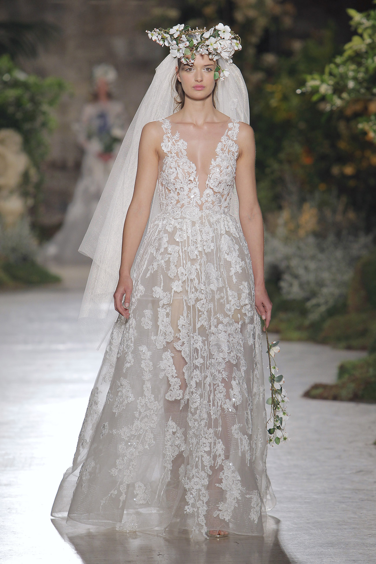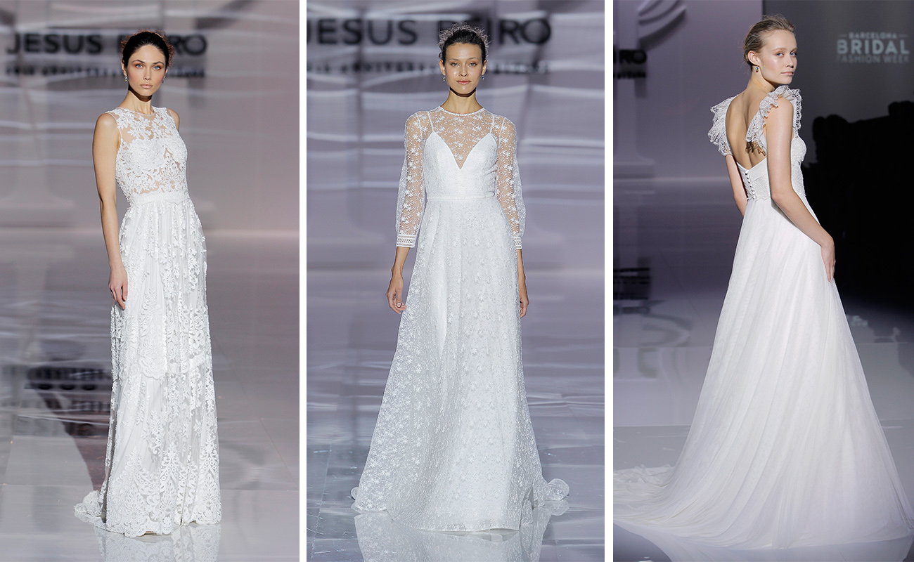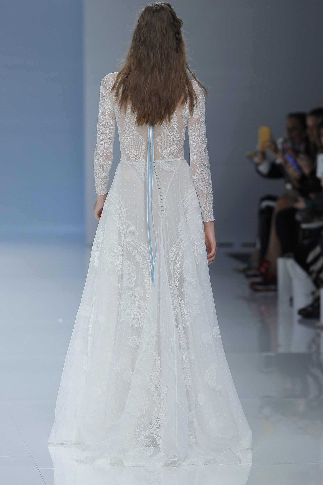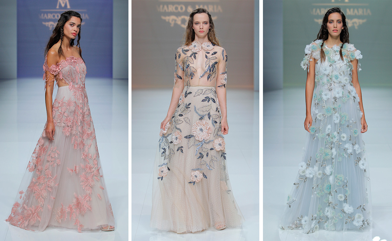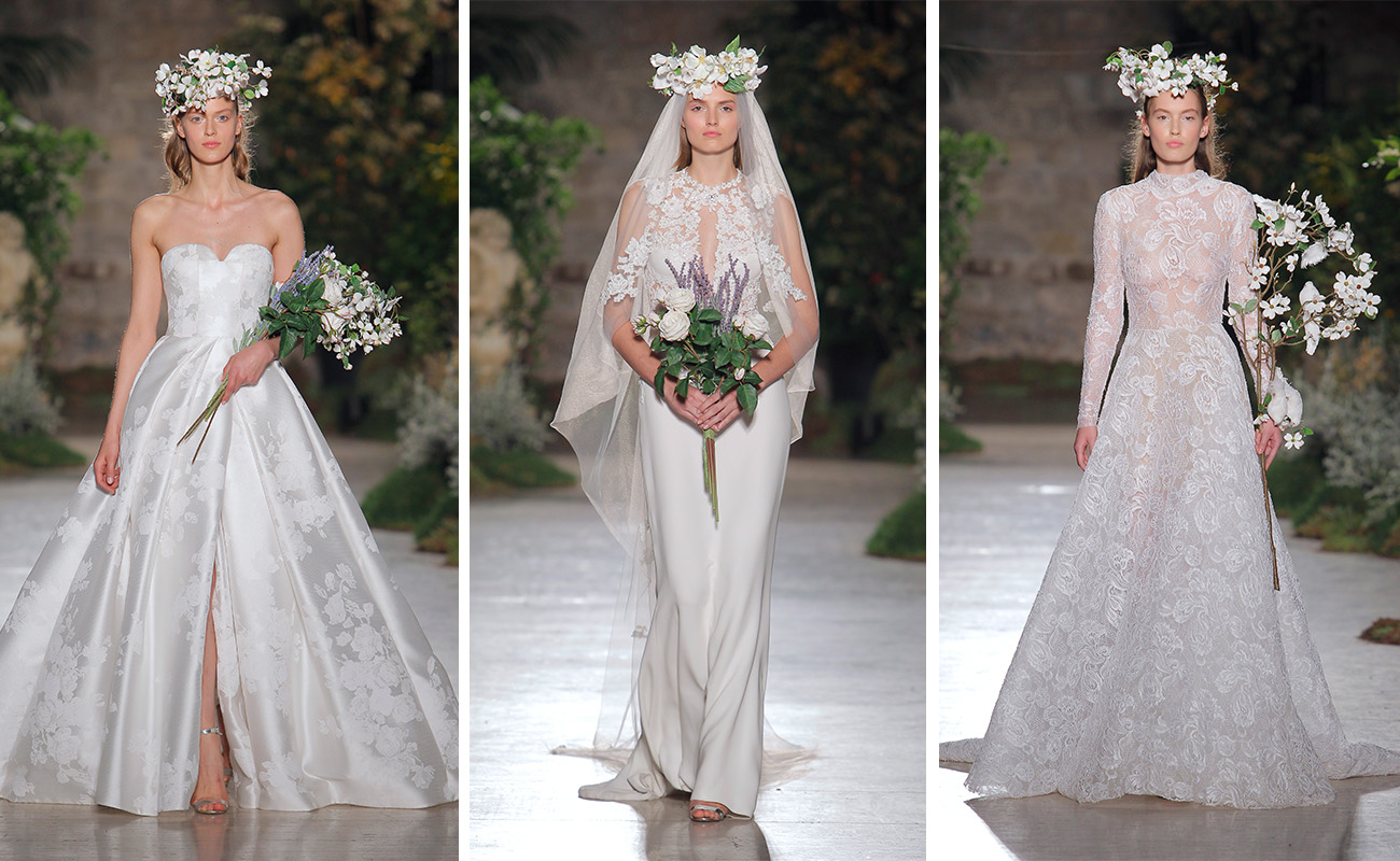 Diseños sofisticados y femeninos aparecen majestuosos entre cientos de espectadores de todas partes del mundo. Vestidos muy trabajados, la mayoría de ellos con apliques florales a lo largo y ancho. Escotes ilusión, la clásica silueta en A, favorable para todos los cuerpos, transparencias, bodys con falda sobrepuesta, piezas con corte princesa, grandes velos y capas en tul que recuperan el concepto de novia clásica.