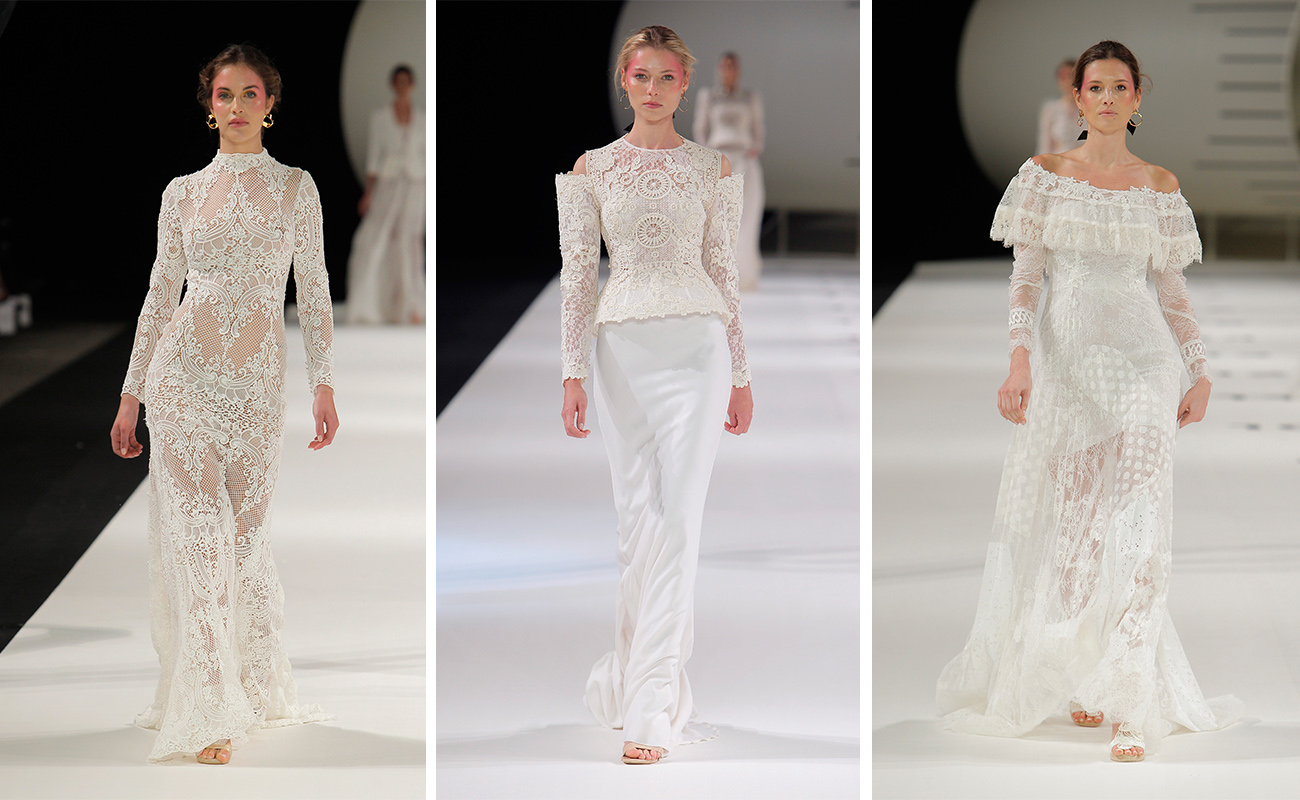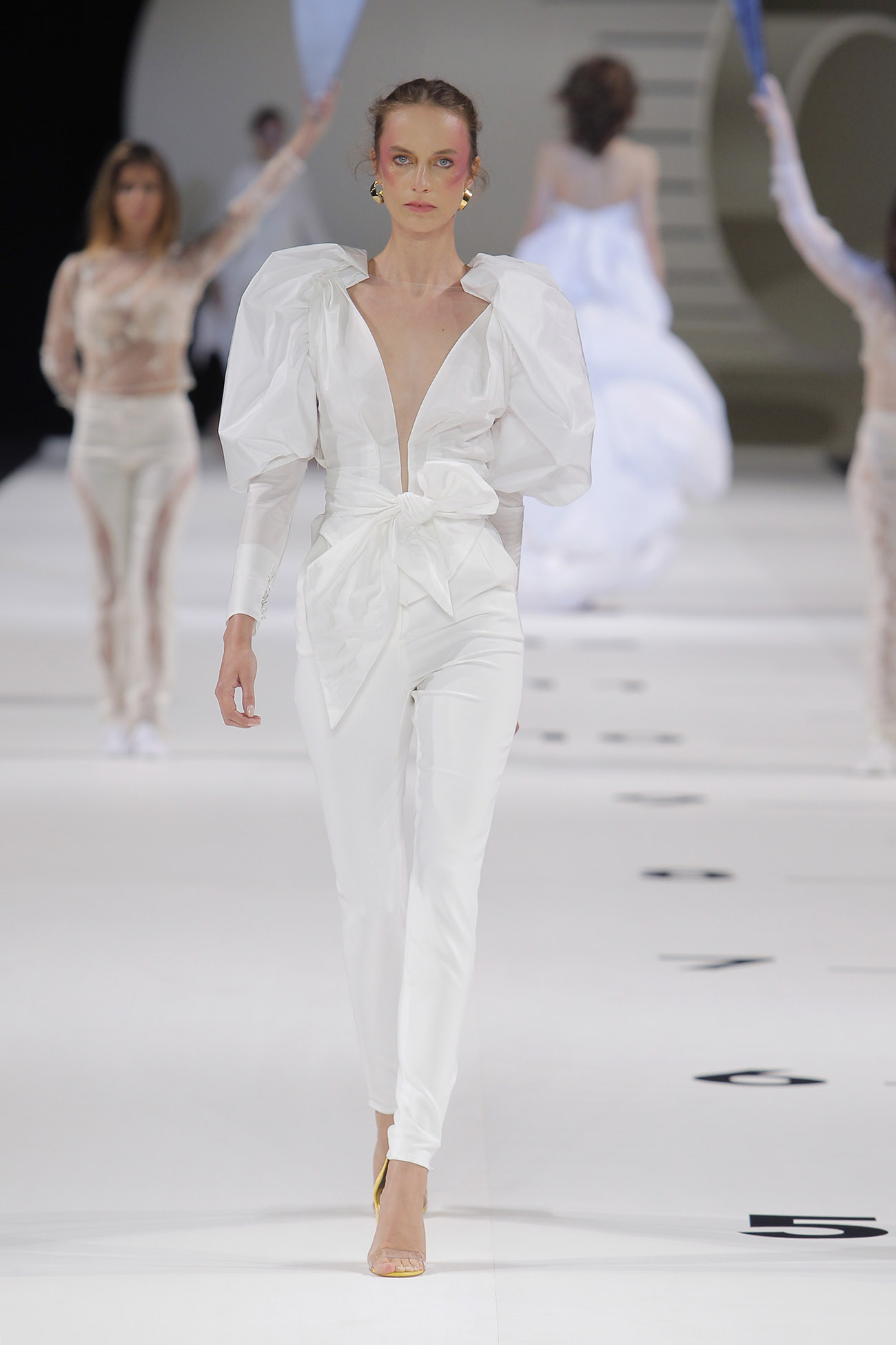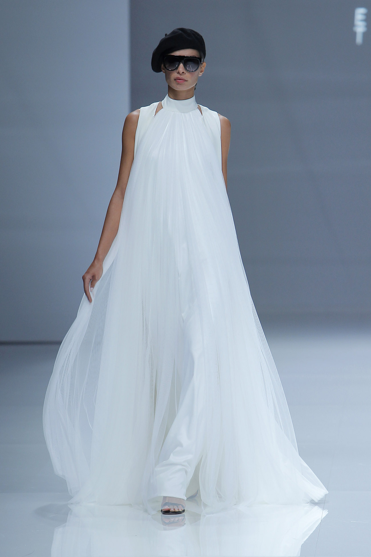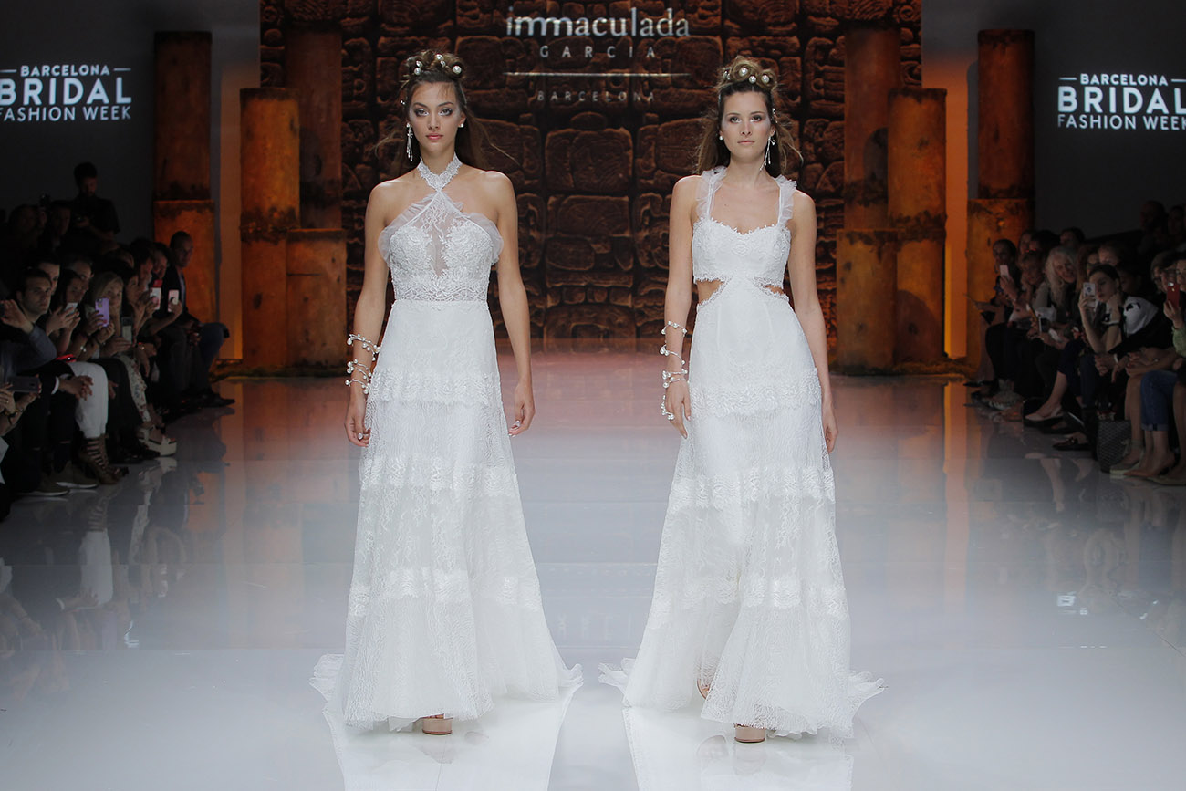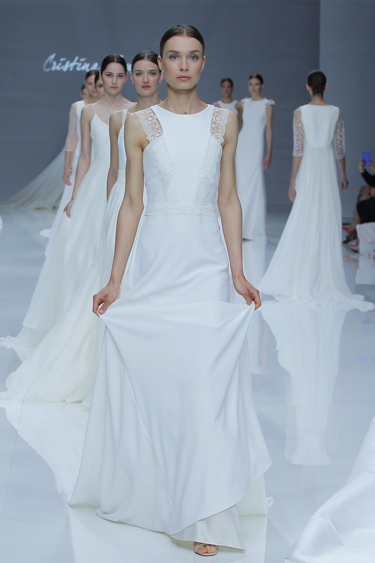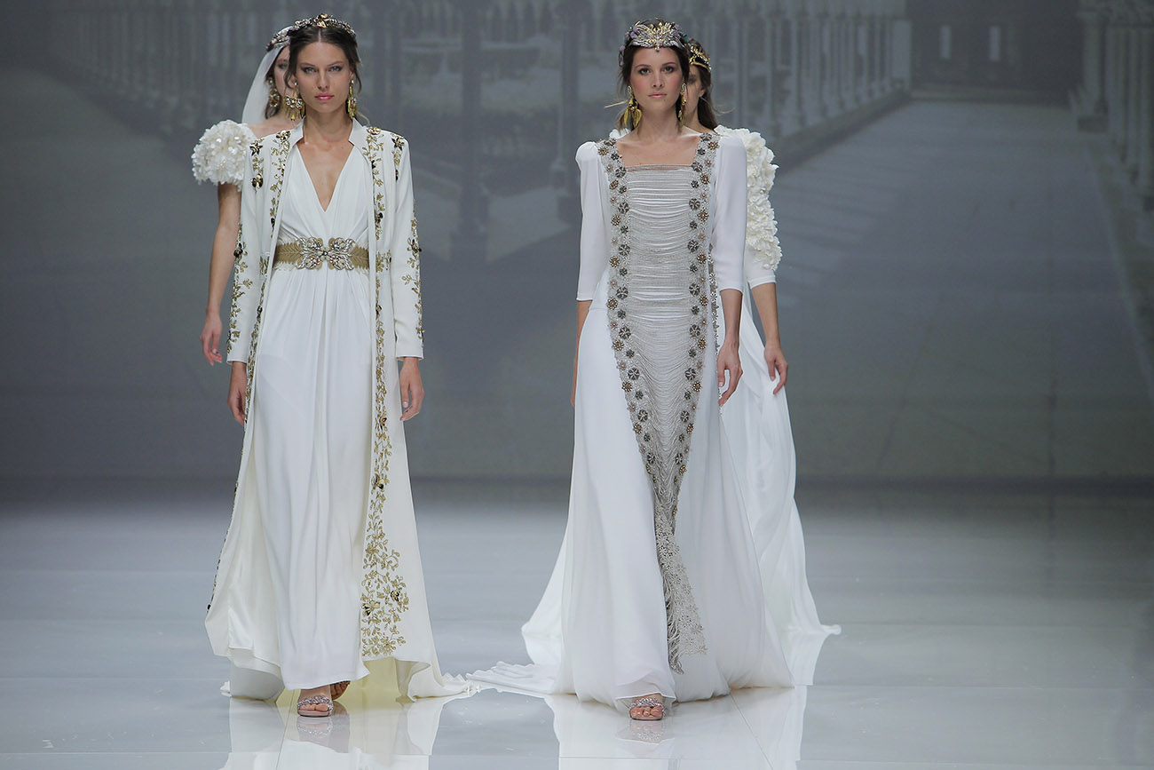 Diseños sofisticados y femeninos aparecen majestuosos entre cientos de espectadores de todas partes del mundo. Vestidos muy trabajados, la mayoría de ellos con apliques florales a lo largo y ancho. Escotes ilusión, la clásica silueta en A, favorable para todos los cuerpos, transparencias, bodys con falda sobrepuesta, piezas con corte princesa, grandes velos y capas en tul que recuperan el concepto de novia clásica.