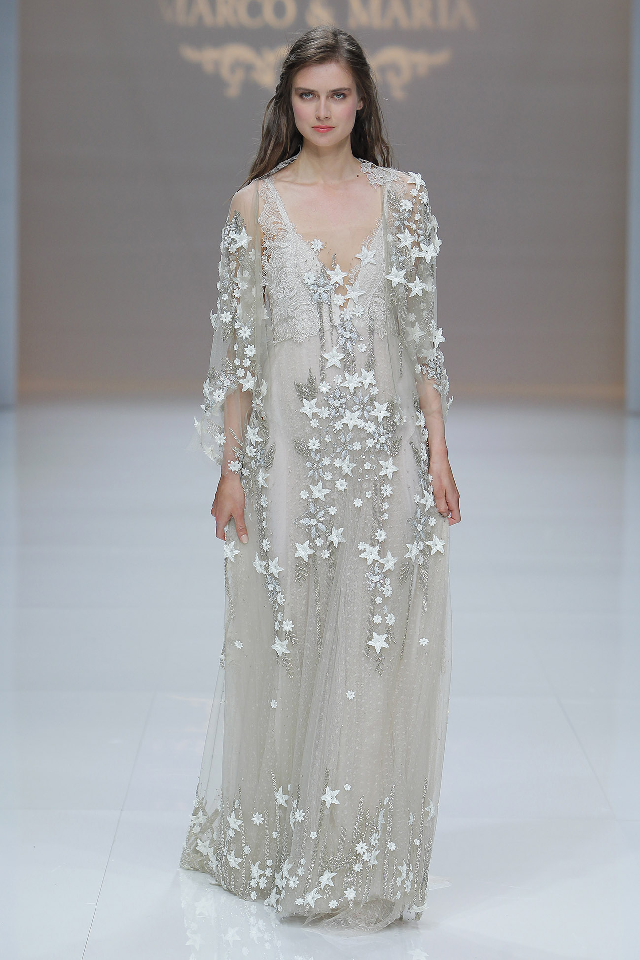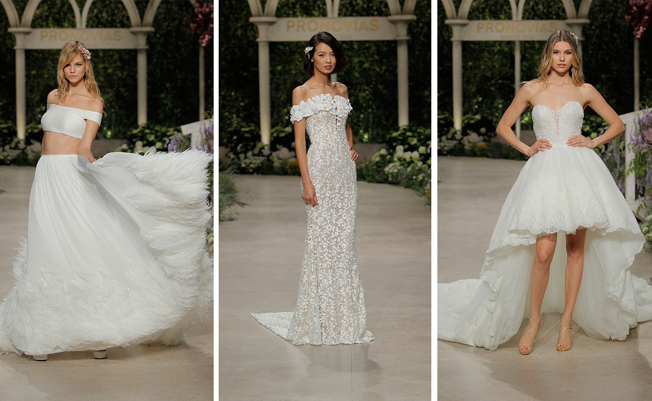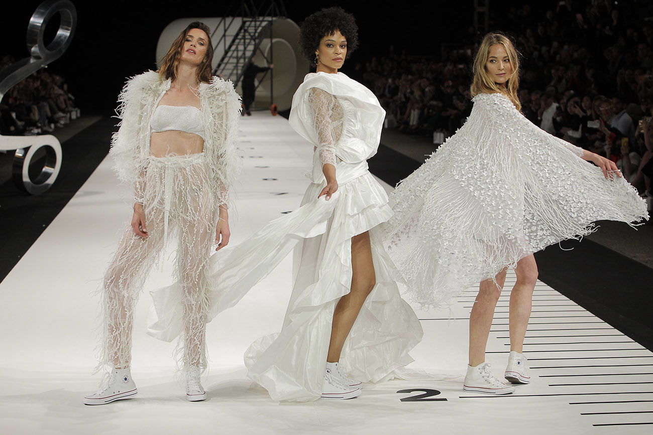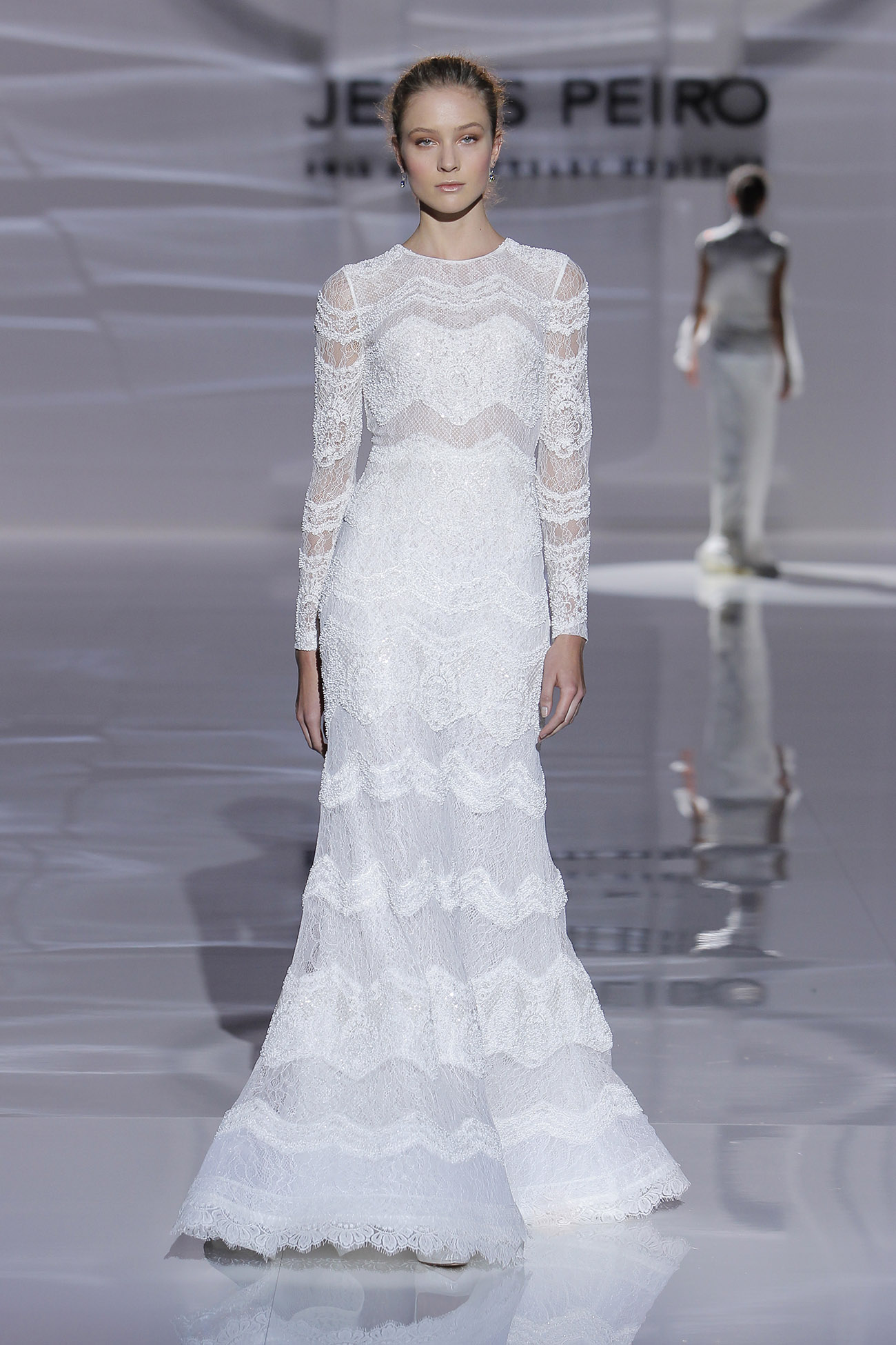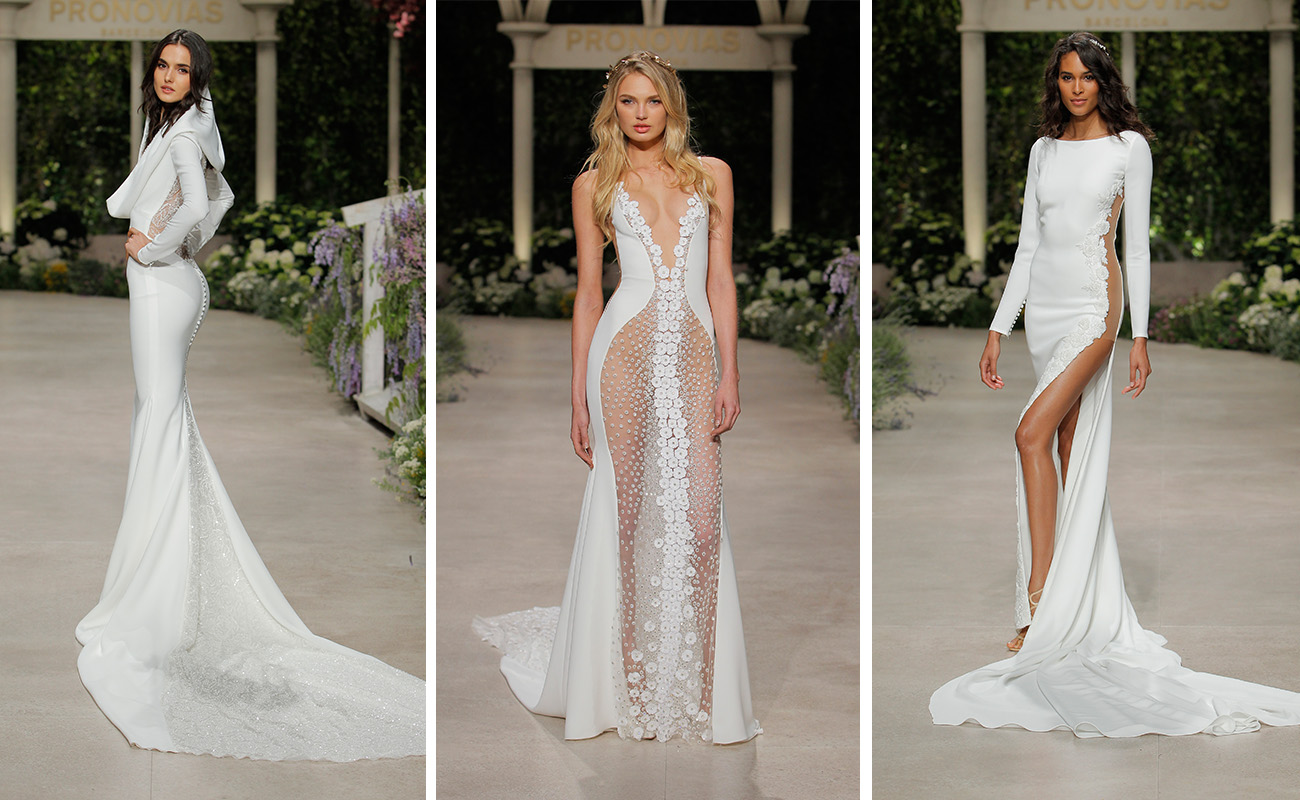 Diseños sofisticados y femeninos aparecen majestuosos entre cientos de espectadores de todas partes del mundo. Vestidos muy trabajados, la mayoría de ellos con apliques florales a lo largo y ancho. Escotes ilusión, la clásica silueta en A, favorable para todos los cuerpos, transparencias, bodys con falda sobrepuesta, piezas con corte princesa, grandes velos y capas en tul que recuperan el concepto de novia clásica.