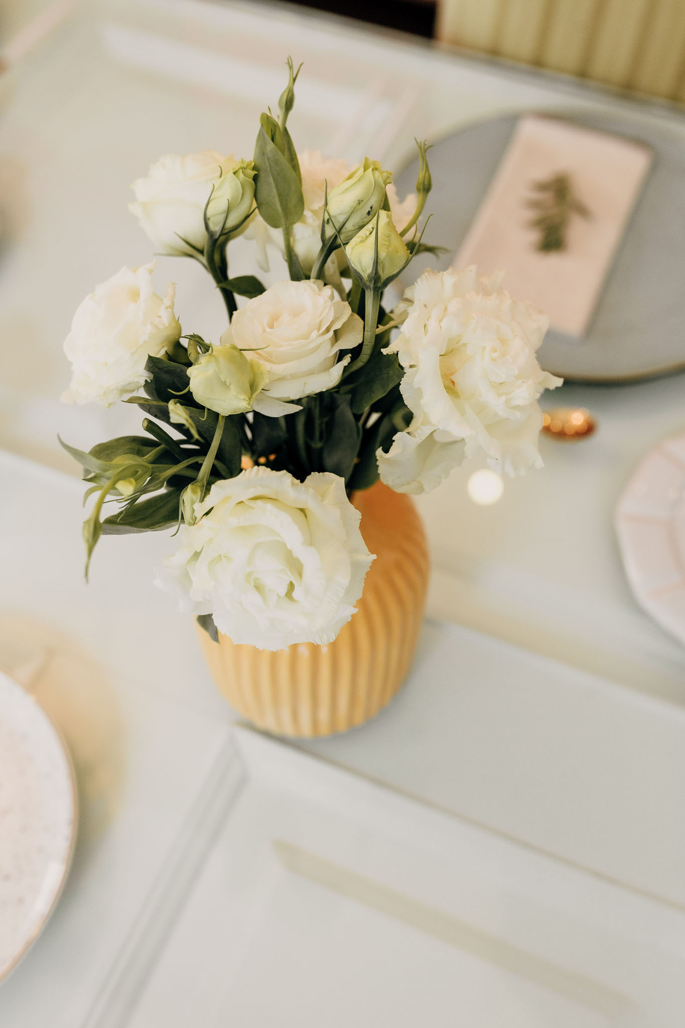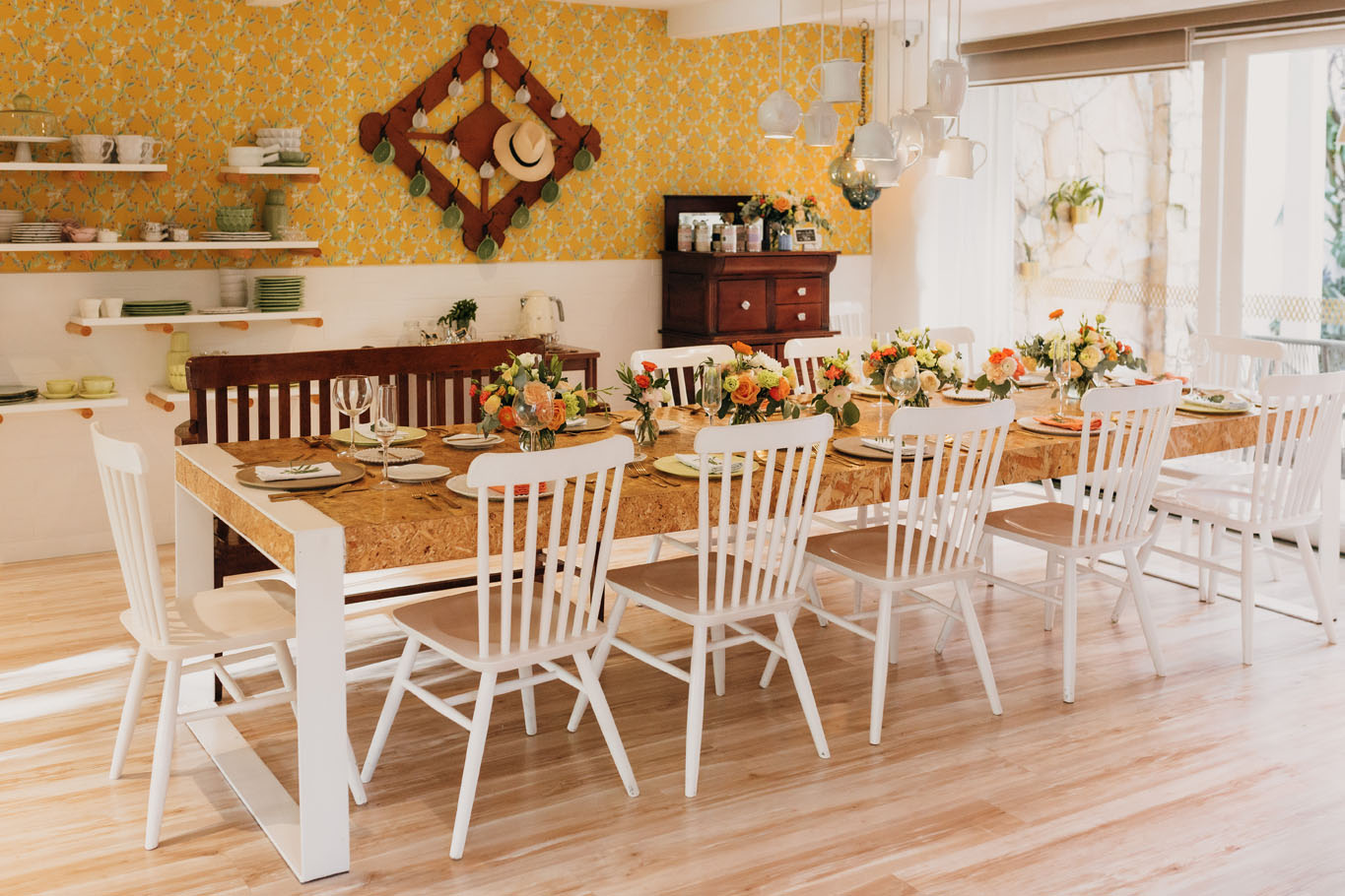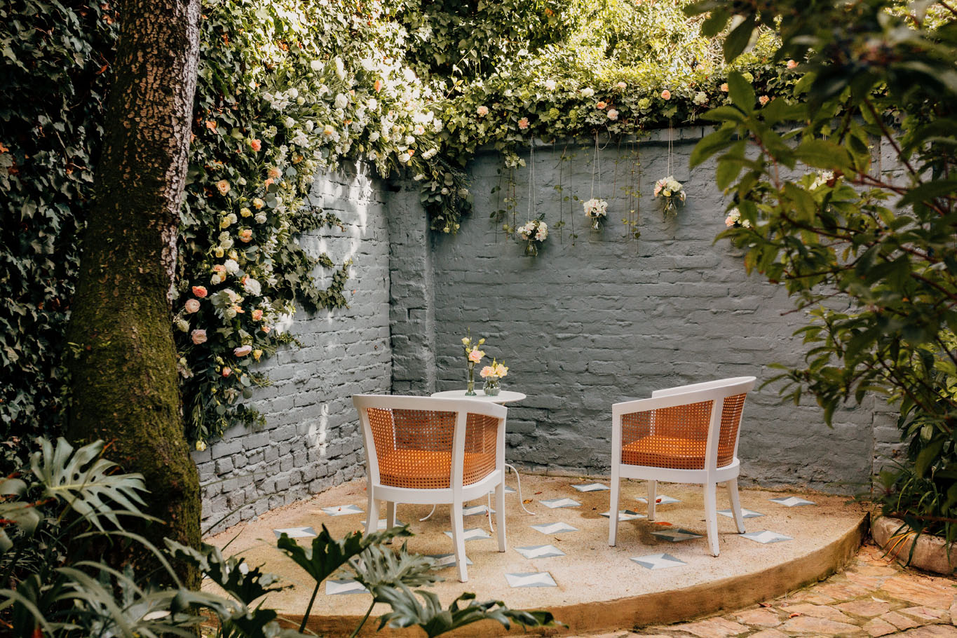 La cuarentena, como a muchos, les propuso ponerse cómodos y prender el televisor. La posibilidad de estar al día con todas esas series y películas para las que nunca había tiempo, la oportunidad de detenerse en los detalles. Pausa. Mira este referente tan bonito. Play. La inspiración, que está en todas partes, ellos la encontraron en This is Us, Dark, Modern Love, A Single Men. Se dejaron conquistar por el estilo Mid Century y empezaron a encontrarlo perfecto para la nueva normalidad que nos deja la pandemia. La propuesta: una novia minimal en casa. La casa como verdadero lujo, refugio, territorio inexplorado y potencial para una celebración íntima.