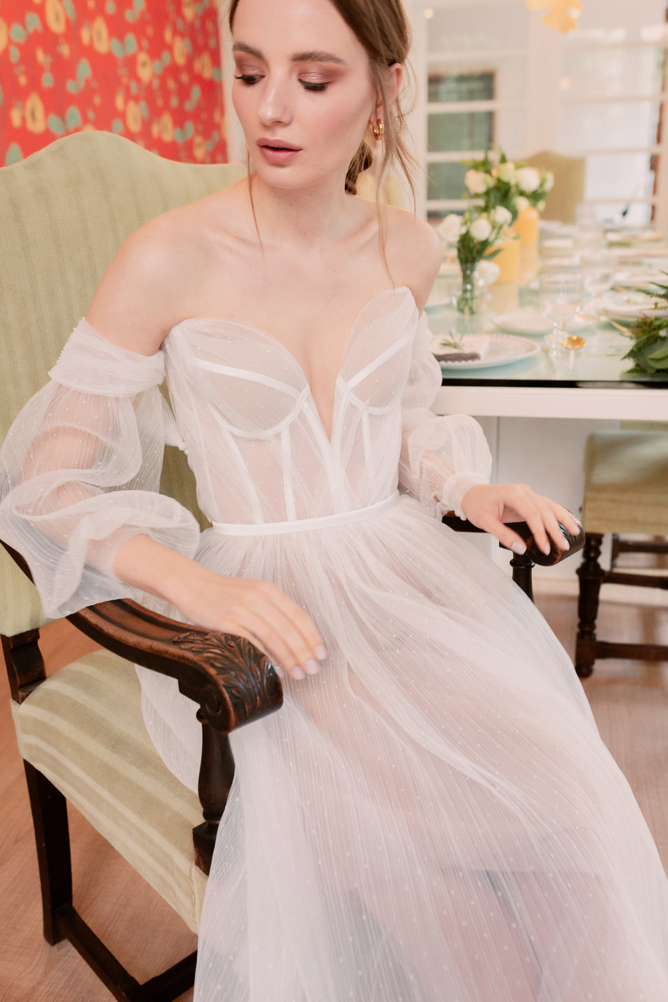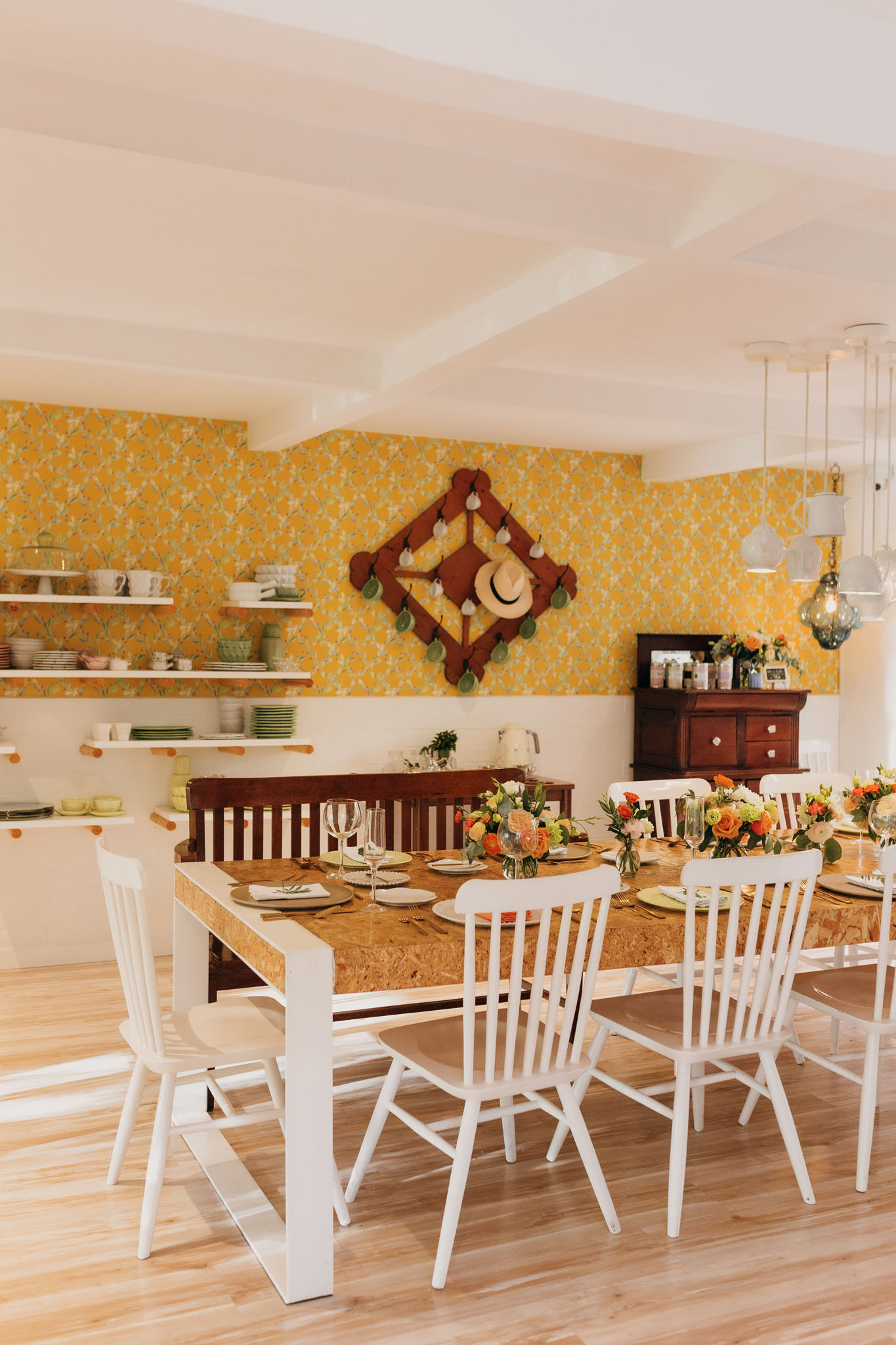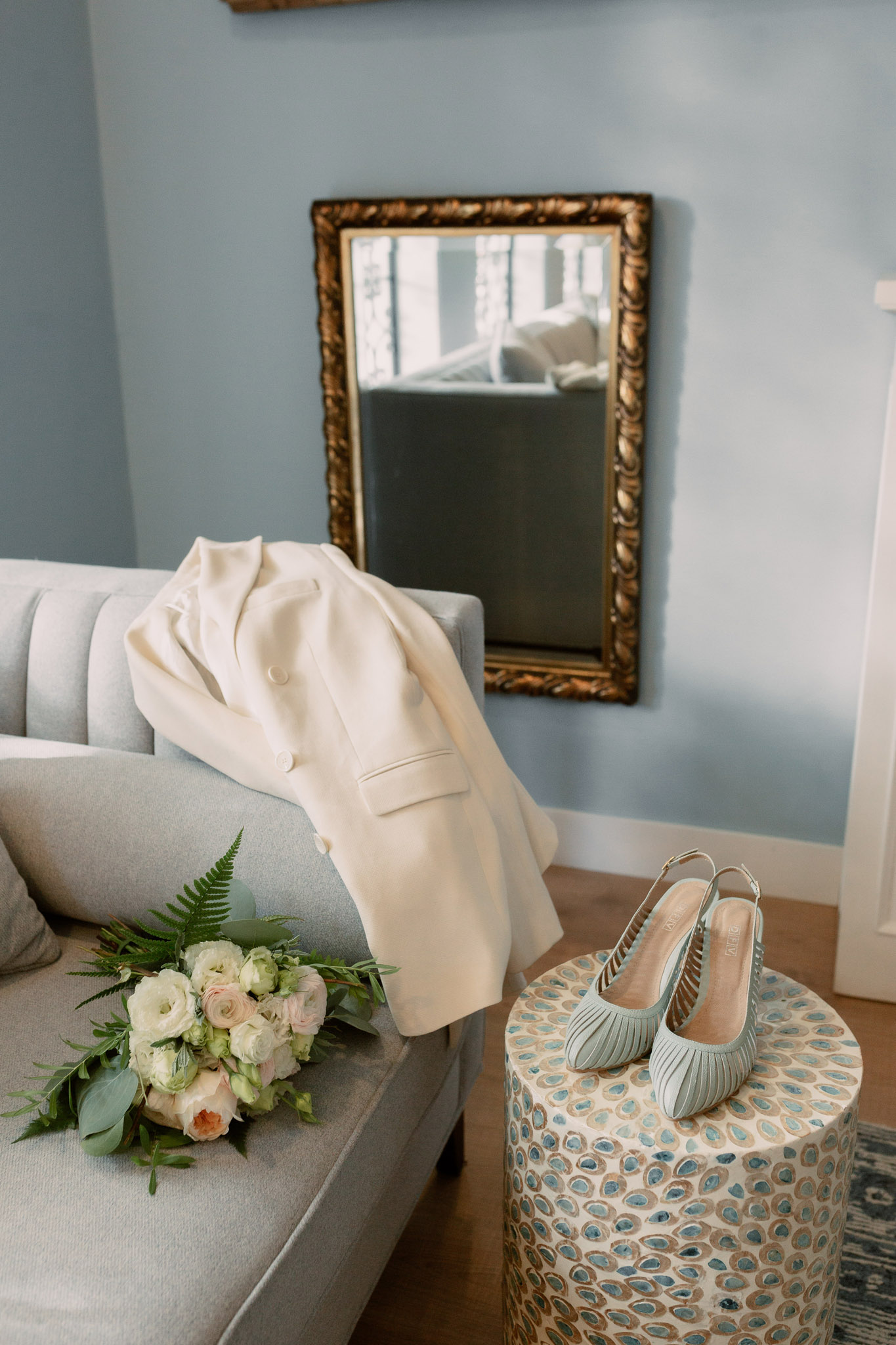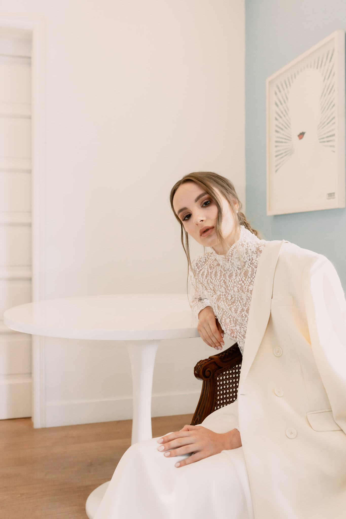 “La realidad es que muchas bodas se harán dentro de la ciudad. Estamos en una época transitoria de la humanidad que quedará en la historia. La moda, los espacios, los formatos, las necesidades han cambiado y evolucionado (moda entendida como todo lo que visualmente adaptamos a nuestro estilo). Hoy la prenda más buscada son las sudaderas para estar en casa, por eso creemos que el poder de la simplicidad ha tomado fuerza. Nos ha cuestionado, no ha hecho repensar en el valor de lo esencial, en eso que de verdad importa, nos gusta, nos identifica, nos refleja. Casa Legado, una joya preciosa en medio de Bogotá, llegó a nosotros con sus salones amplios, llenos de diseño, detalles y piezas icónicas. Con su clásica "tulip table" y su piso de mosaicos, tan de esa época. Resultó ser el lugar perfecto para la editorial que nos soñábamos”.