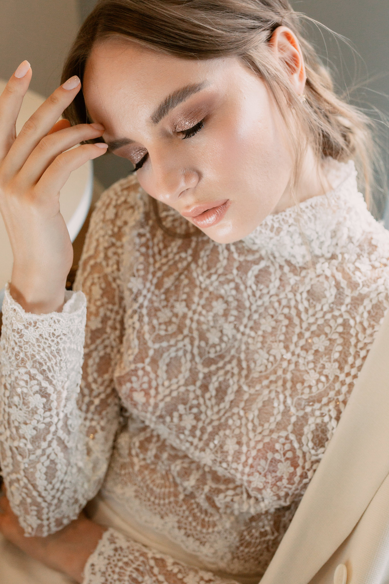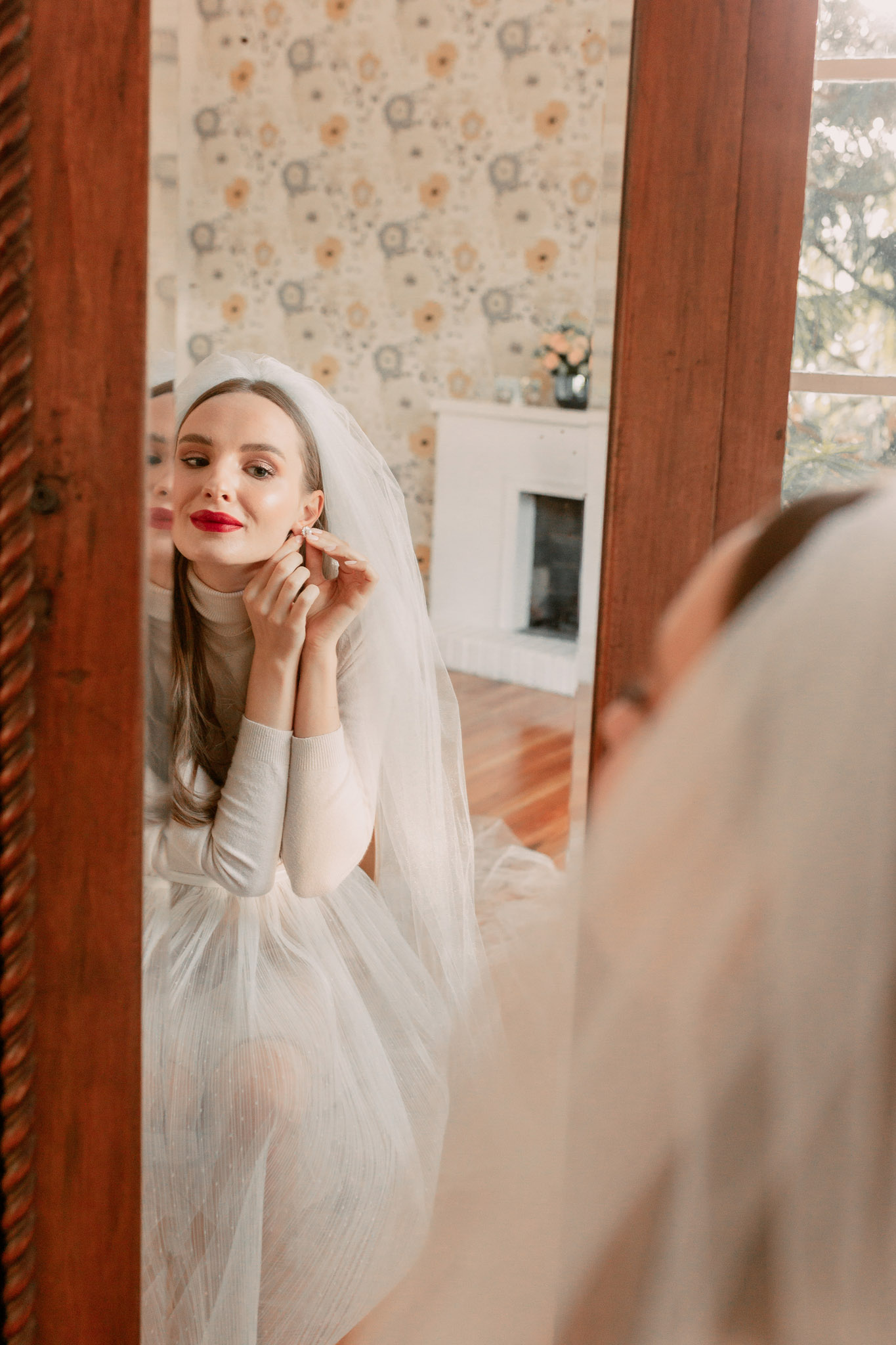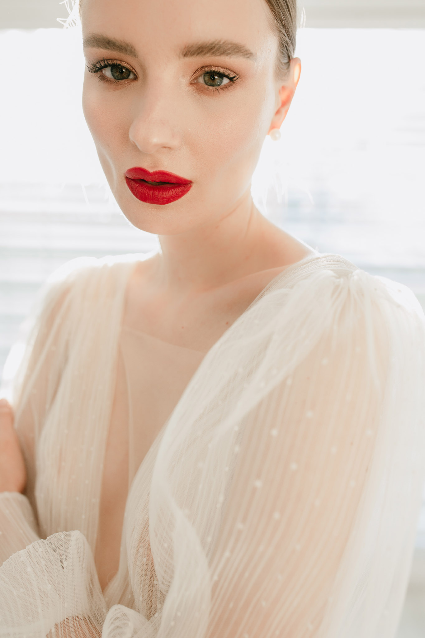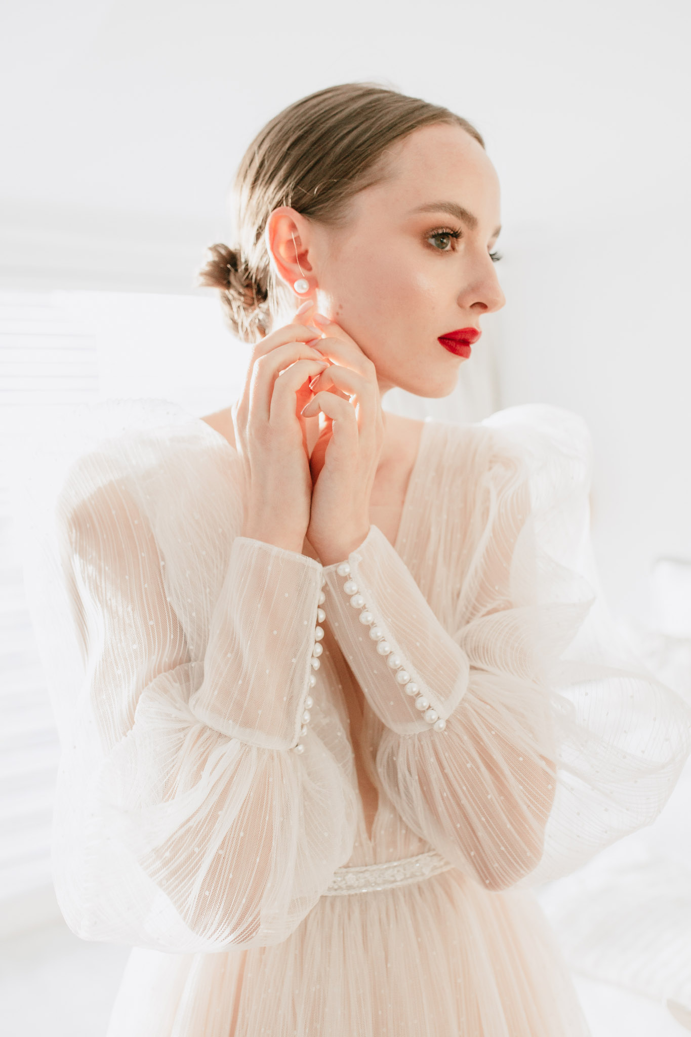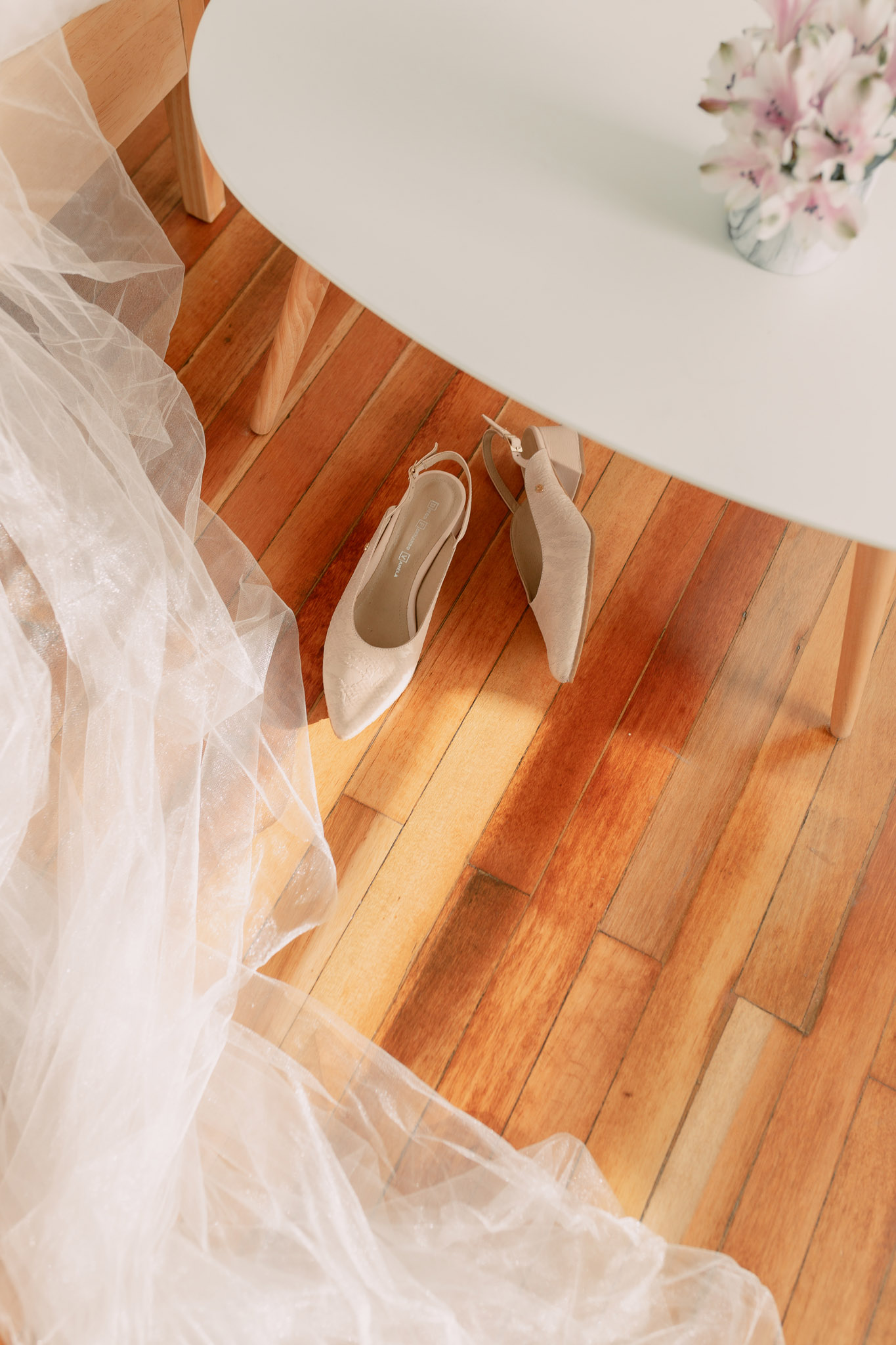 Una novia minimal elige una pieza de atención, zapatos o labios o complementos, conservando su esencia