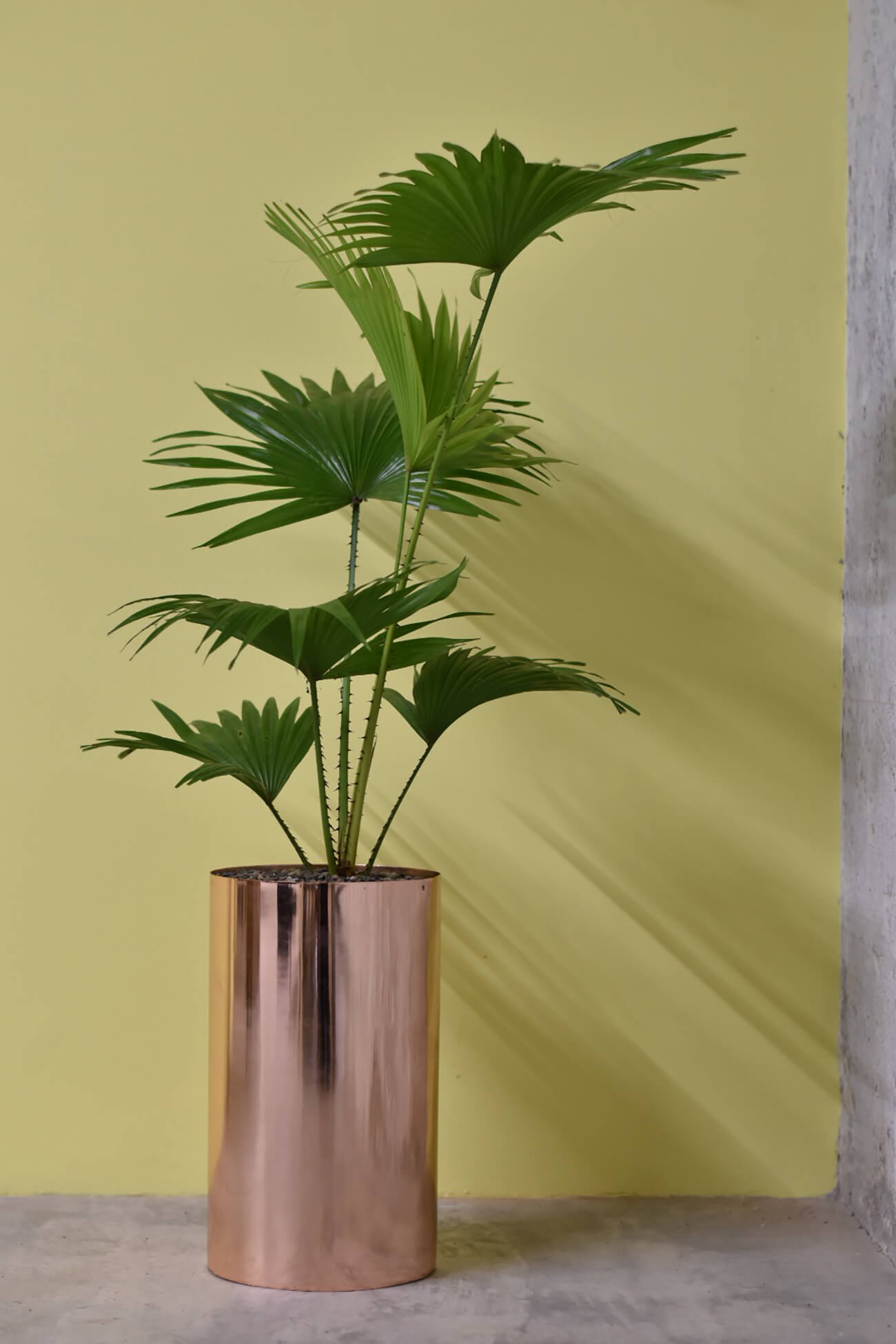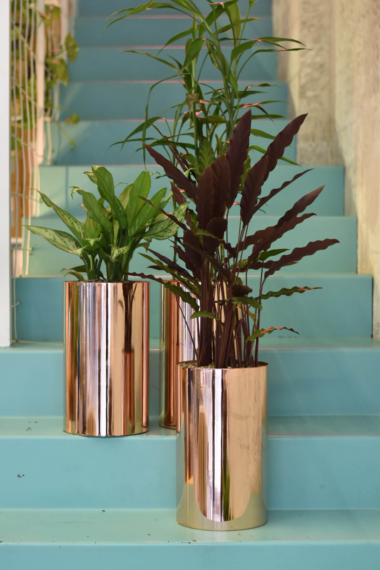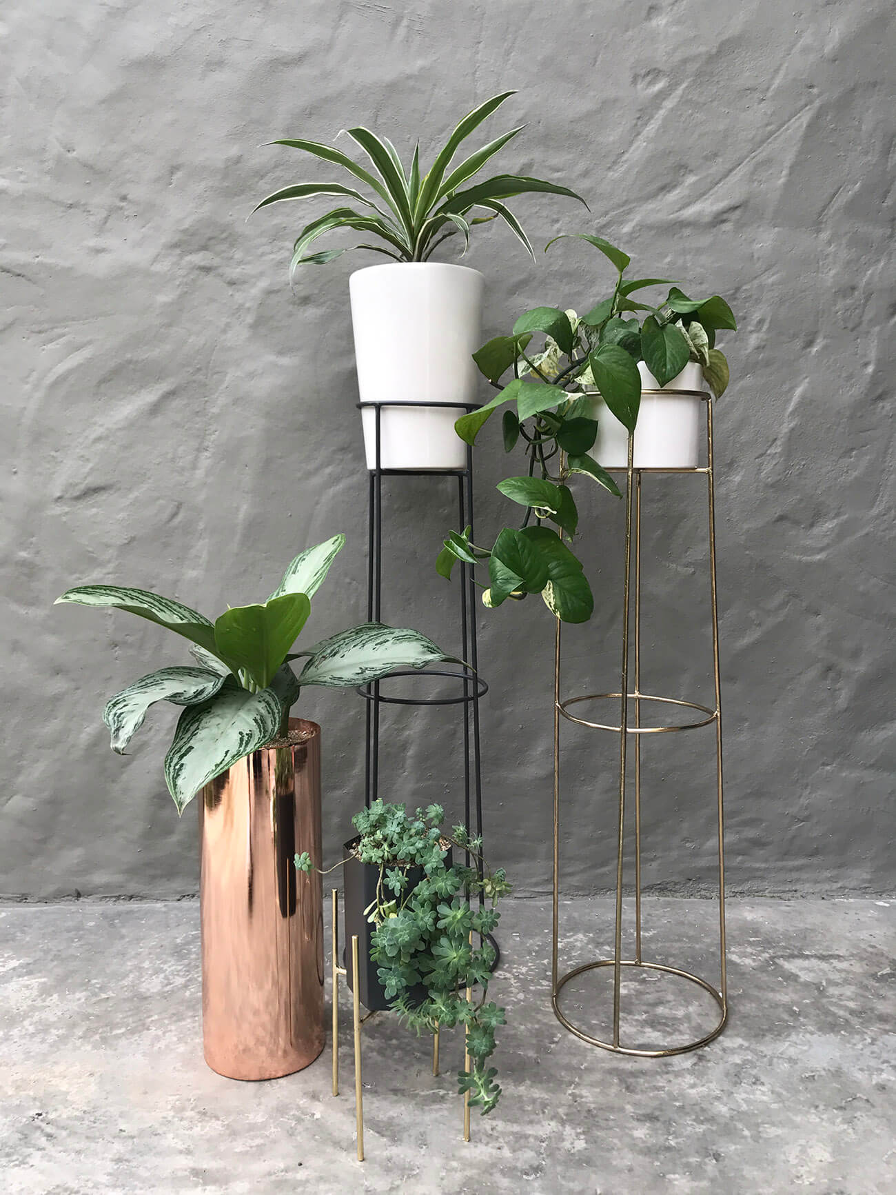 Mucho, mucho verde para la casa de los recién casados. La línea deco botánica de Jabalinas propone un espacio lleno de naturaleza con materas geométricas en distintos acabados y colores. Piezas en hierro con baños industriales en cobre, latón dorado, plateado, negro mate, blanco y gris. Todo esto, mezclado con materas en cerámica en arcillas finas esmaltadas. Tanto las bases como las materas pueden personalizarse en acabados y colores. Se puede consultar la carta de opciones con Jabalinas.