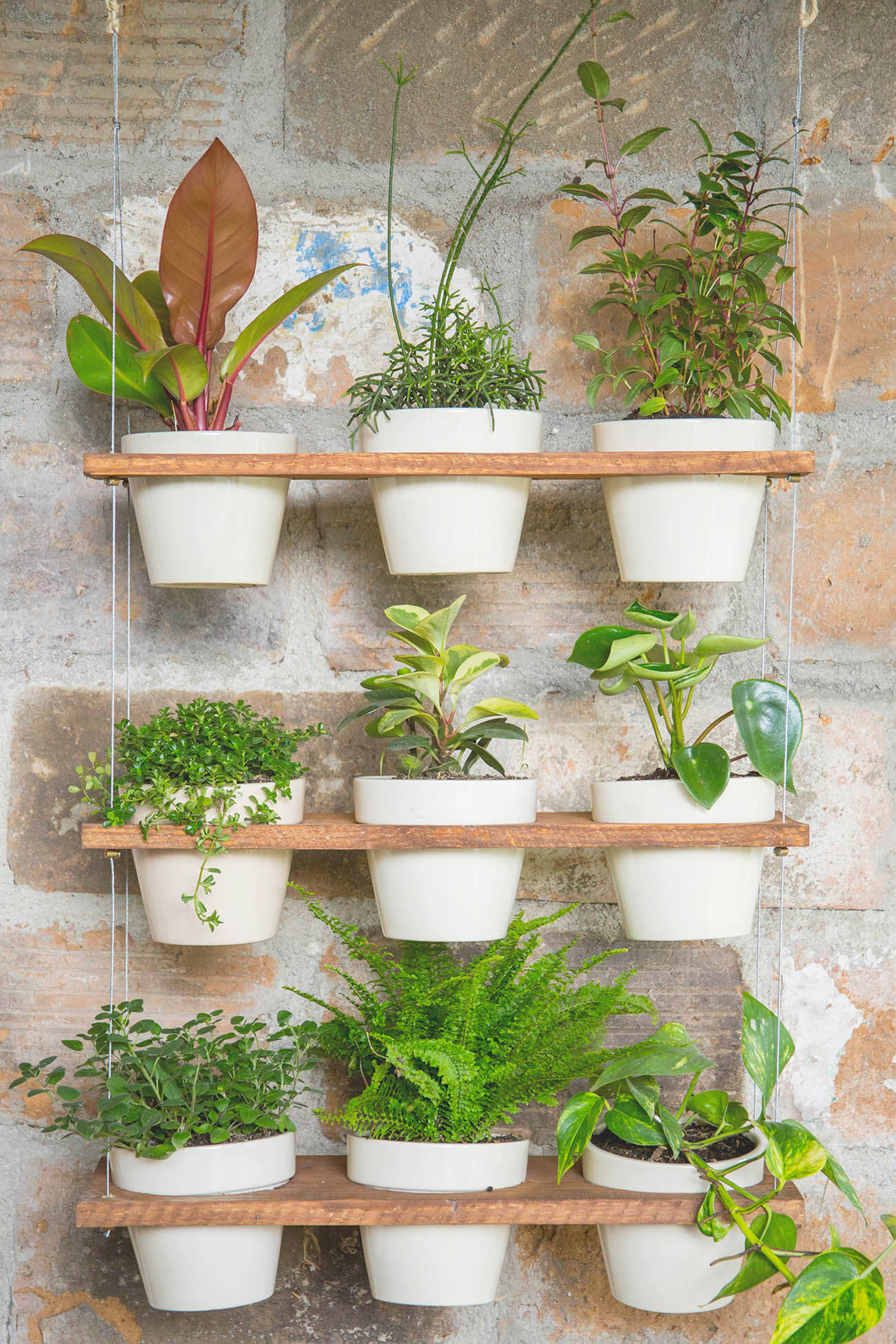 Jardín vertical. En madera con materas en cerámica. Ideal para llenar cualquier espacio en casa, se puede hacer a medida y con plantas ornamentales o aromáticas.