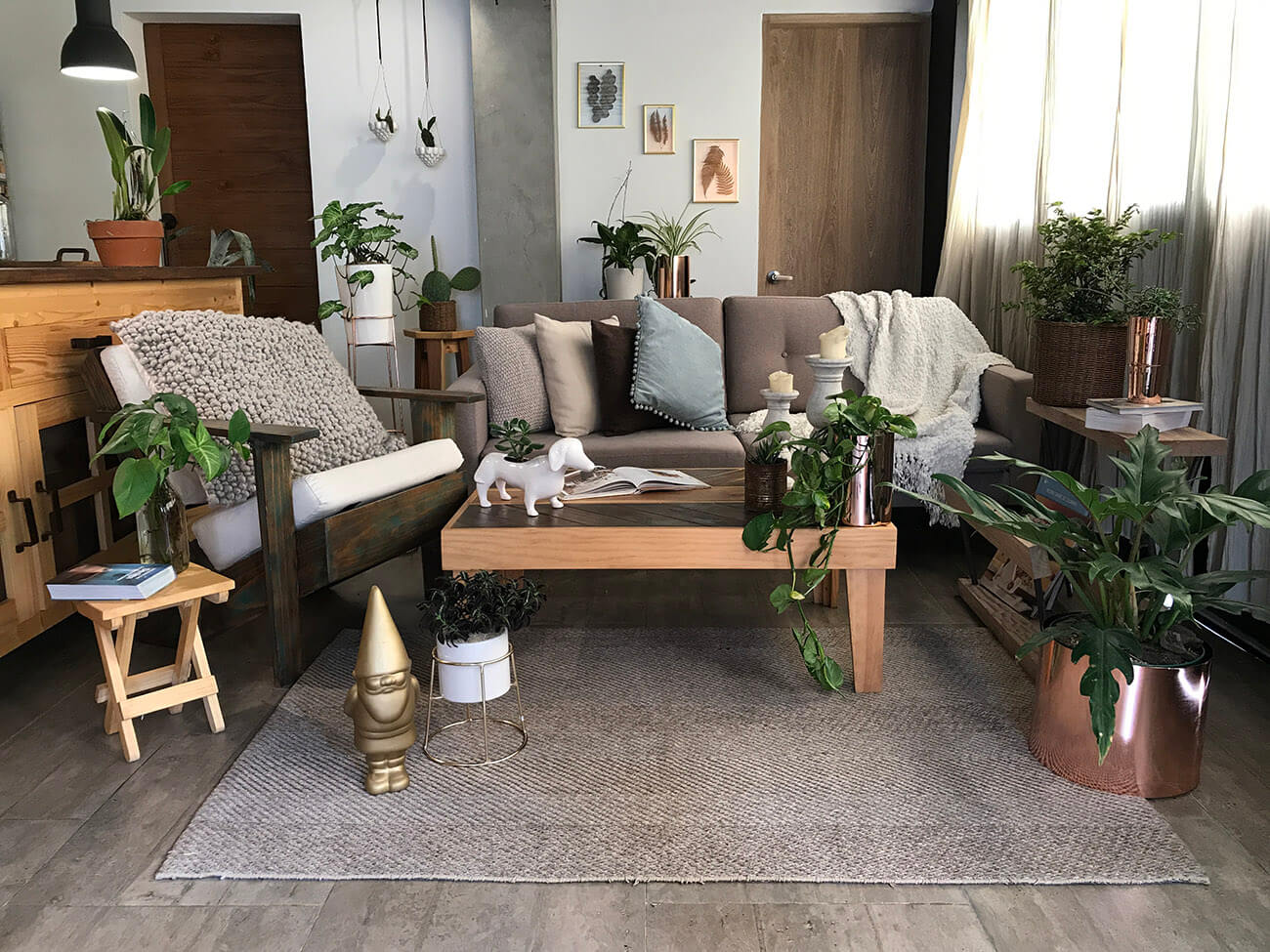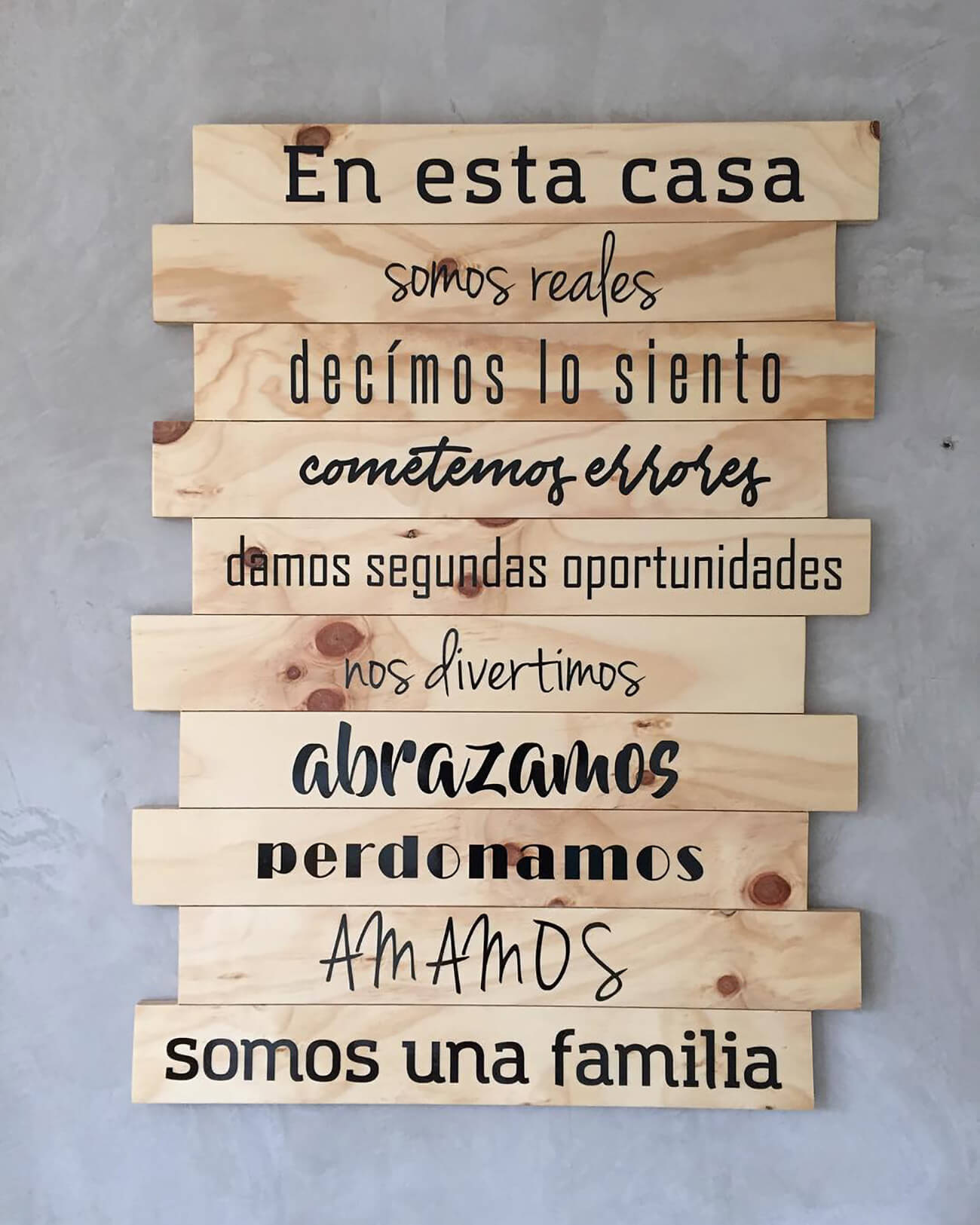 Una declaración, un manifiesto de cómo somos (o vamos a ser) en nuestra casa. En madera, valor $150.000. Materas cobrizadas $190.000 c/u.