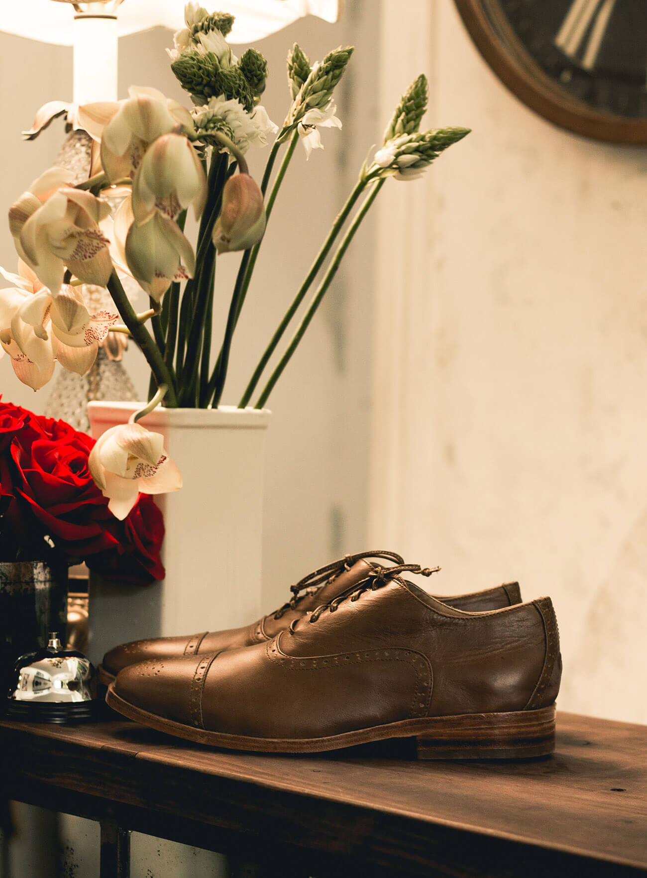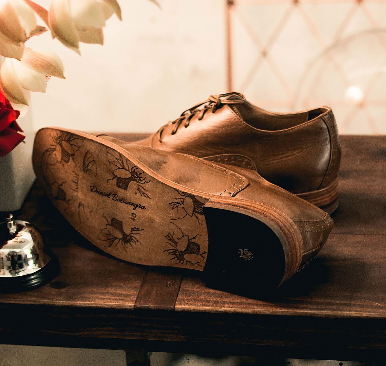 Zapatos: elaborados 100 por ciento en cuero, incluyendo la suelta para un acabado más lujoso y personalizados con el nombre y apellido. Ideales para bodas y continuar usándolos en el día a día con jeans o pantalones casuales ($450.000).