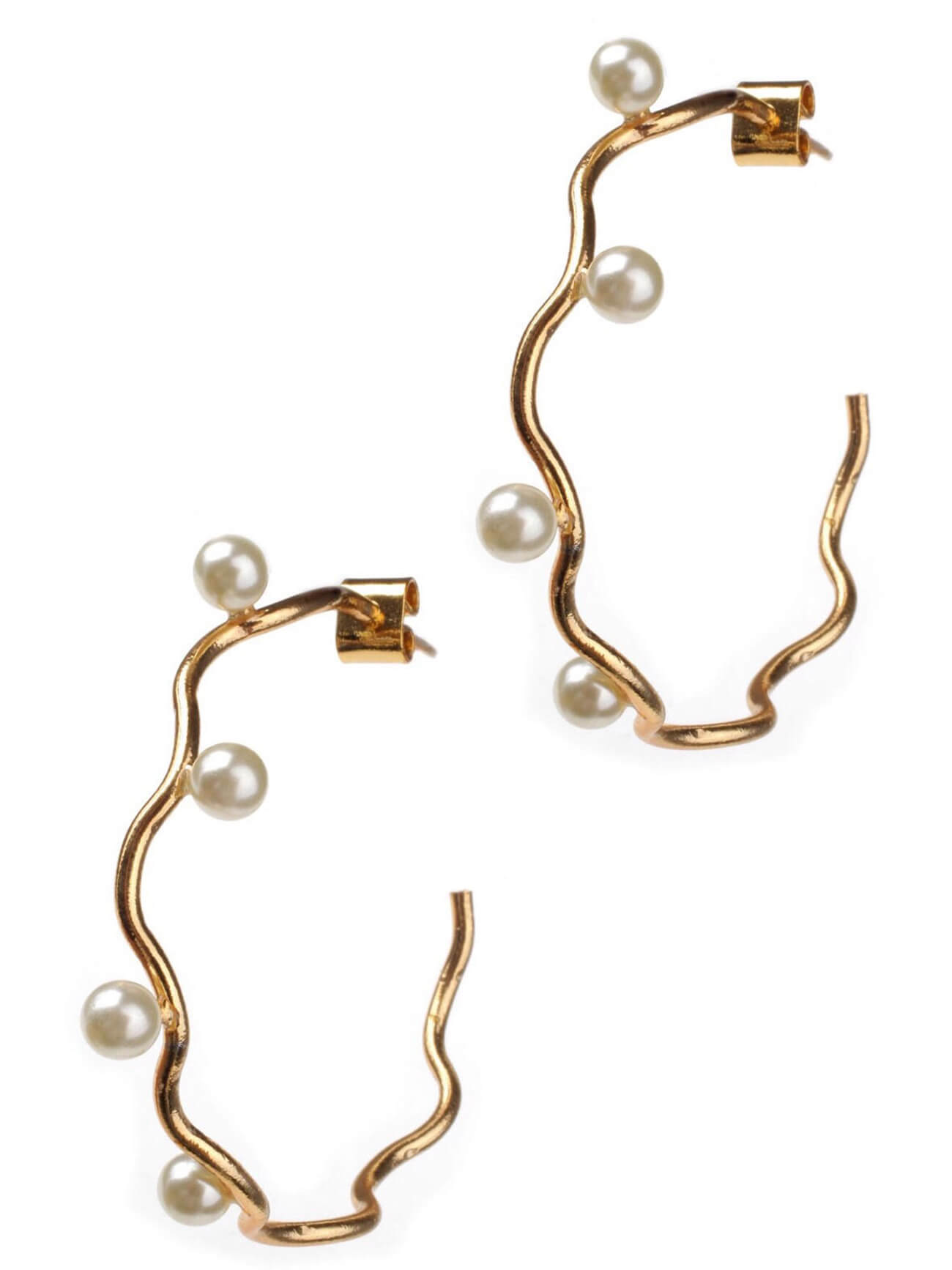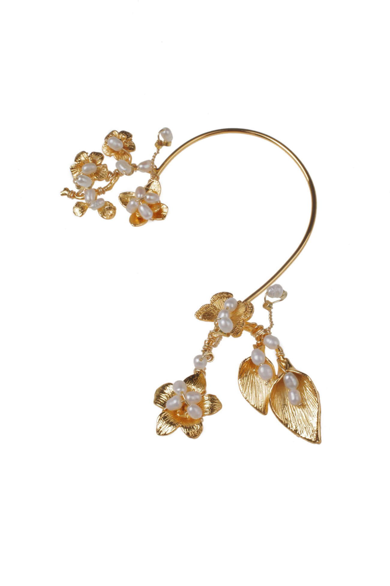 Candongas + perlas, un must de la temporada, $124.900. Son en bronce enchapado en oro o Plata. Y para las más arriesgadas, orejera Ada, $164.900. Hojas, mariposas y perlas cristal.