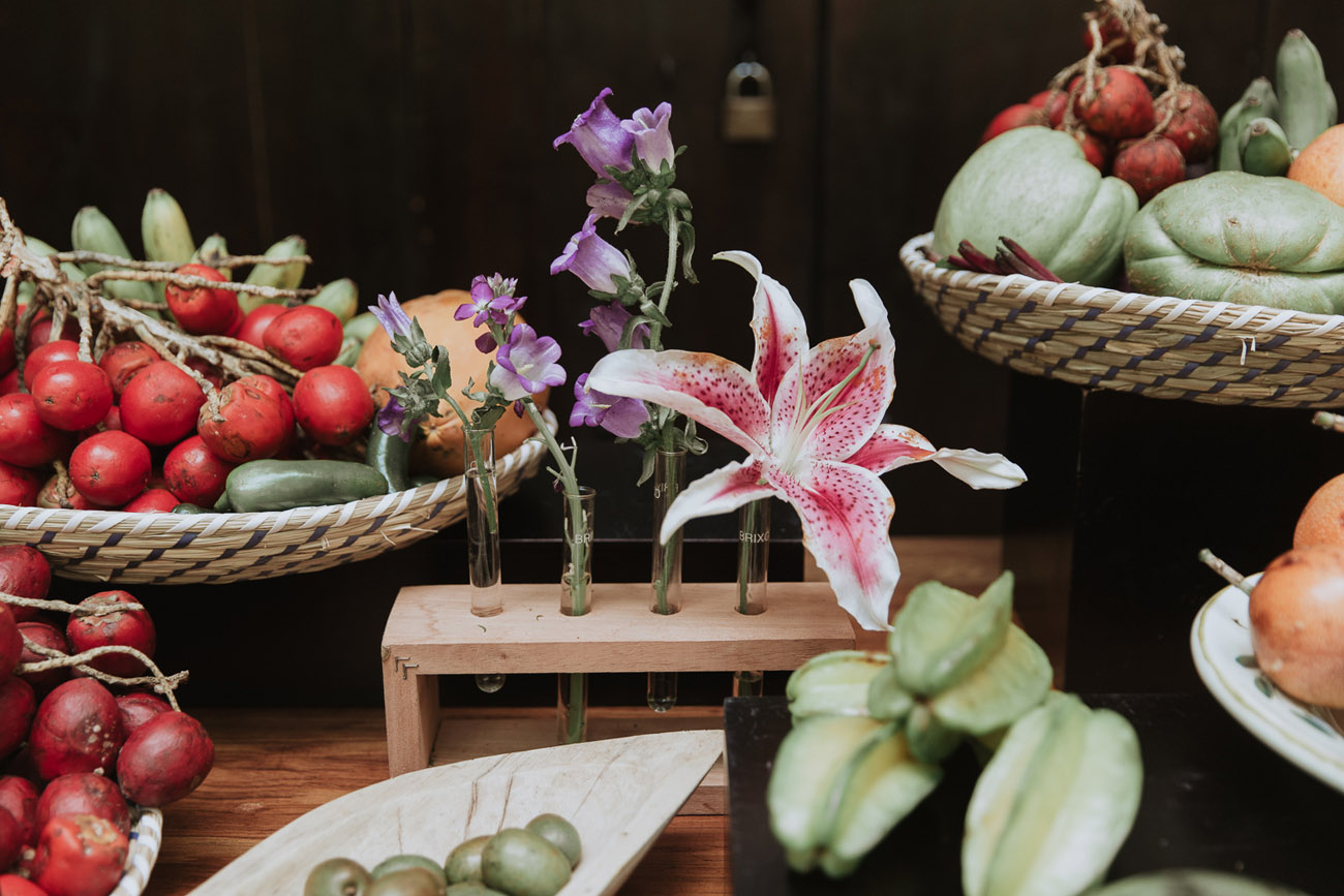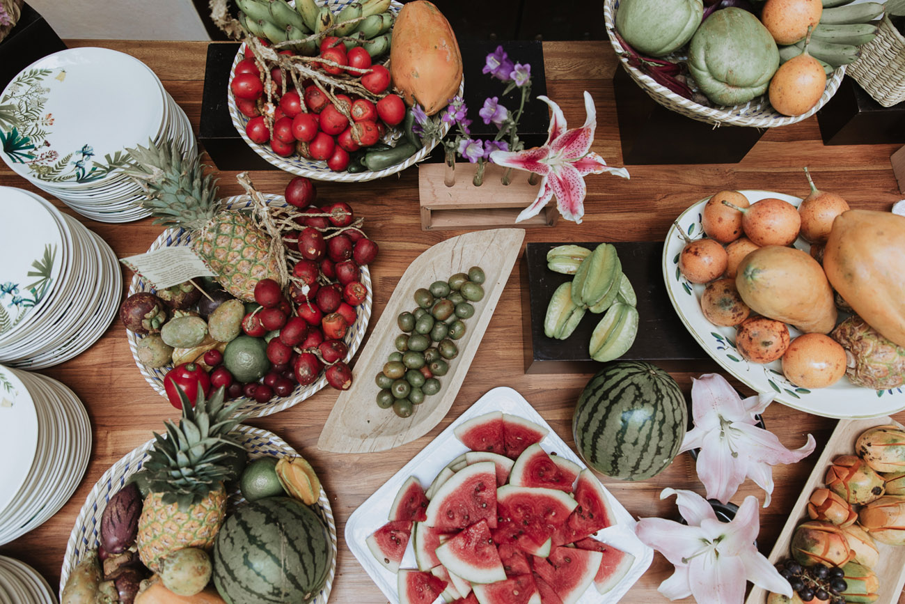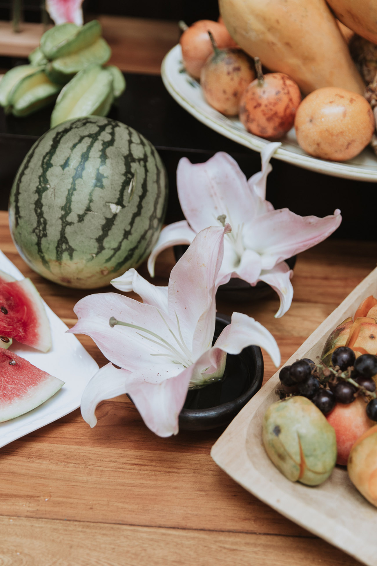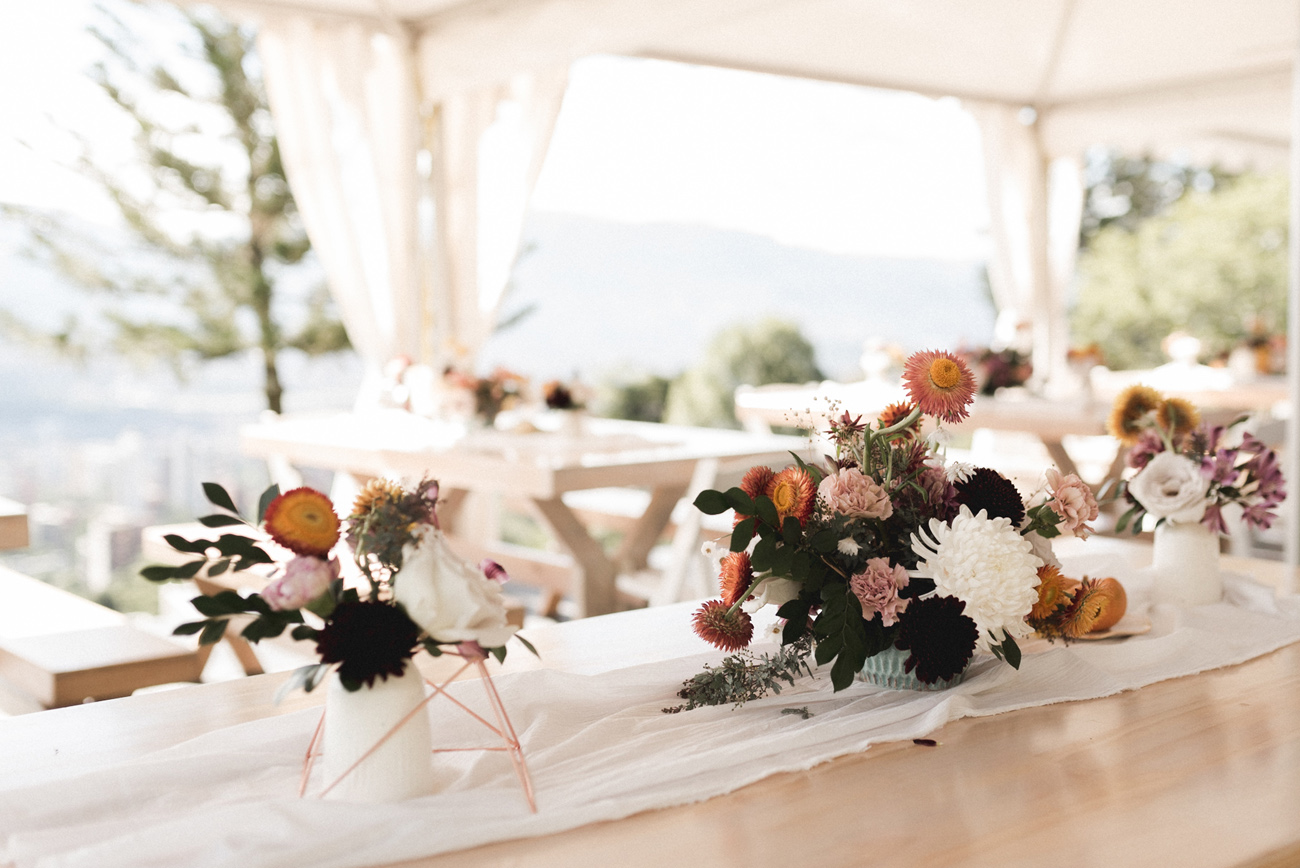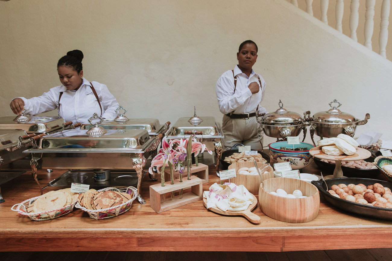 Casarse de día, a las 10 de la mañana, y celebrar con un brunch, fue otra apuesta salida del libreto. “Siempre quise casarme con un brunch. No soy de fiestas ni de hora loca. Lo que más disfruto del día es el desayuno, incluso es mi parte preferida de viajar, el desayuno del hotel. Afortunadamente, David piensa igual”. Esta decisión, cuenta Julián Posada, permitió servir frutas, helados, huevos y muchas otras cosas que usualmente no se elaboran para un menú nocturno.