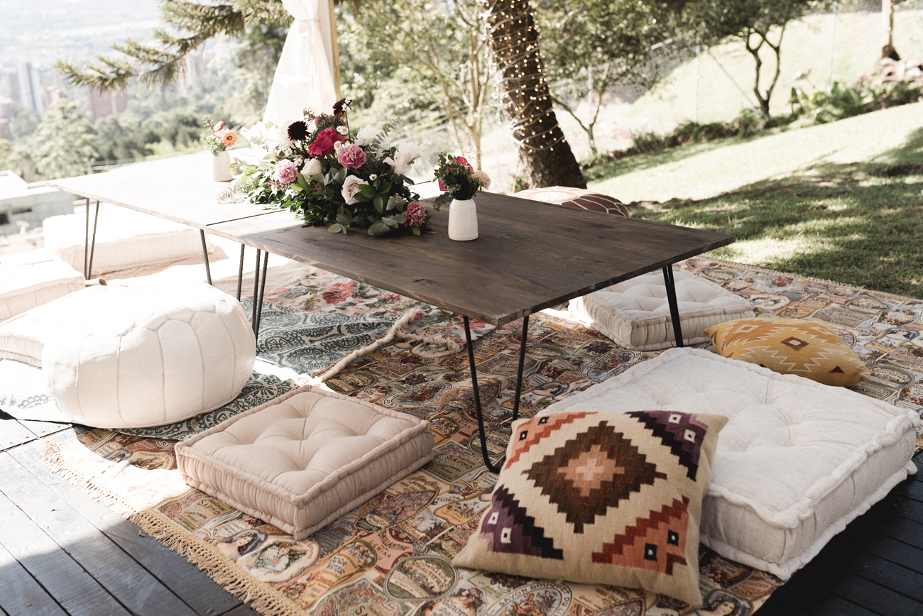 La locación. La bendita locación. Una de las decisiones más arduas, ¿cierto? Bueno, empecemos por la recomendación que nos dio Julián Posada, que nos parece sabia: el clima. Tan voluble y tan cambiante. Sol radiante y al segundo, lluvia torrencial. Por eso, independientemente de lo que elijan, aunque estén en la mitad del monte: piso y cubierta.