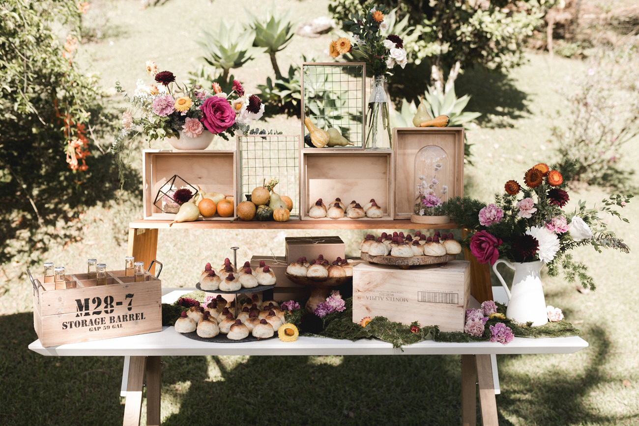 Esta es la mejor parte. La decoración, casi siempre, es el mismo brunch. Sí: la comida servida por estaciones, las mesas de charcutería, las mermeladas, granolas, panes, jarras de mimosas; todo al mismo tiempo, pasan a ser elementos visualmente atractivos y entonces, parte de la decoración. Follaje y flores, también, que no falten.