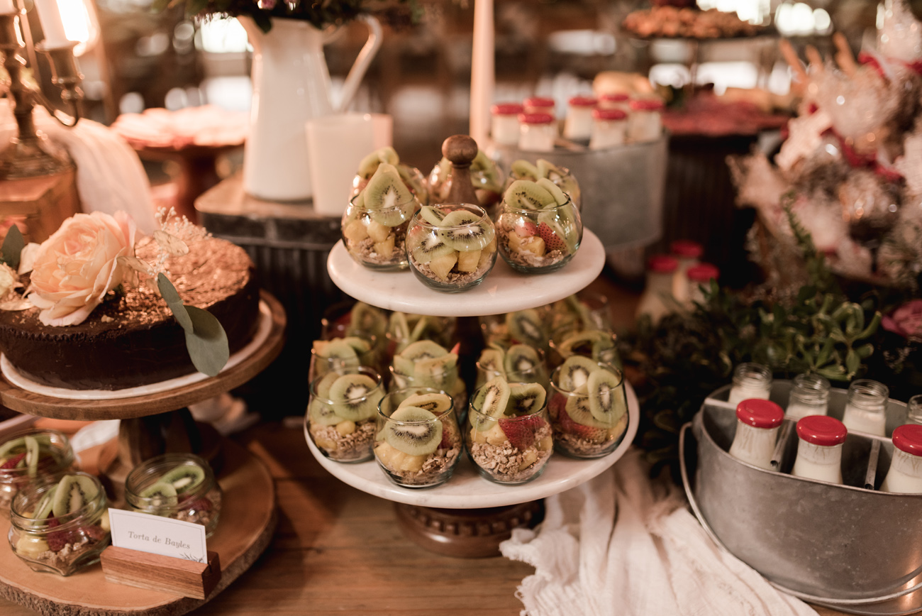 A estas delicias que nos hicieron agua la boca, agreguémosle las bebidas: variedad, mucha variedad de jugos naturales y aguas saborizadas. Para cerrar con sonrisa definitiva: una estación con postres pequeños, café y té. ¿O se imaginan un helado?