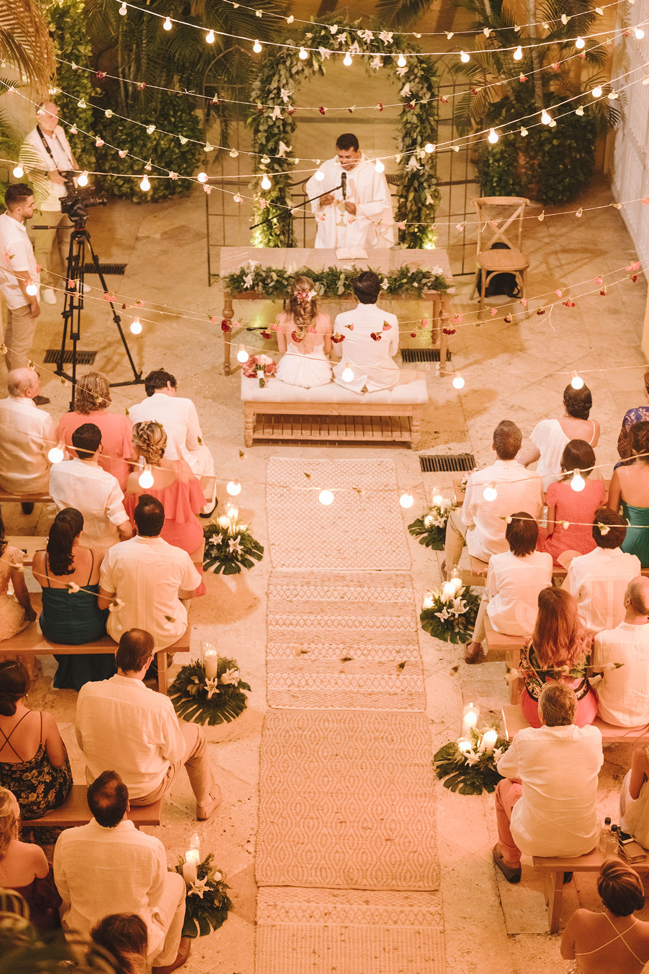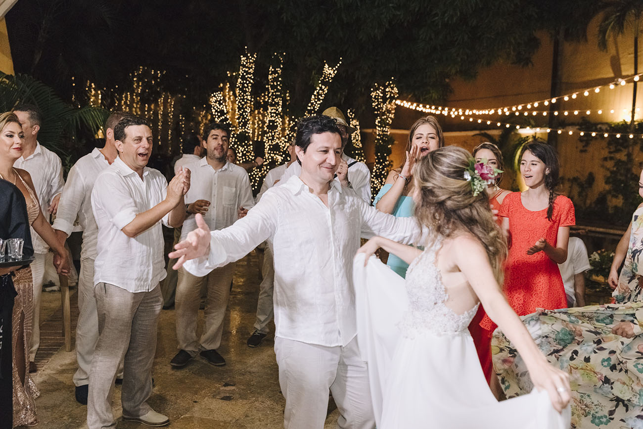 Sin duda para Isa, que se enfrentaba a su primer matrimonio en Cartagena, esta también se cuenta como una historia de sumas. De sumar meses de organización, de sumar aprendizajes, de sumar talentos, de sumar amigos a su equipo de trabajo, esos que le brindaran la tranquilidad y la confianza de que todo iba a salir bien. Por eso, a excepción de los hoteles, la locación y servicio de catering, todos los proveedores que la acompañaron (¡muchos hacen parte de esta Libreta morada!) eran de Medellín: Beat Banda, Agustín Bedoya Fotografía, Biviana Suárez (peinado), La Pec (maquillaje), Mesa y Bar (servilletas y platos base), Andrés Pajón (vestido de la novia); Carolina Roldán, como dupla de wedding planner; y Flores de Abril, con el trasteo más grande: todo el mobiliario y la decoración.