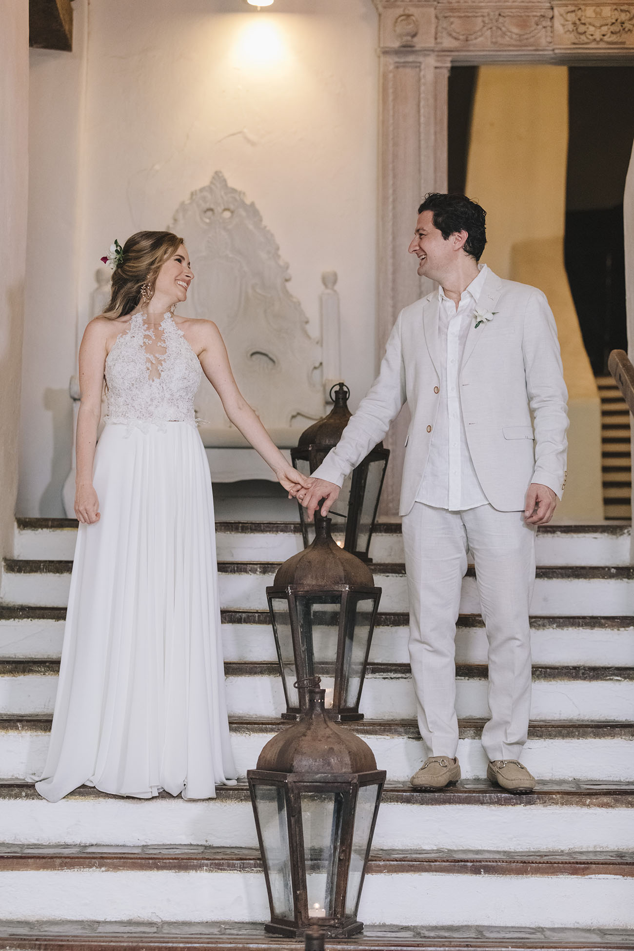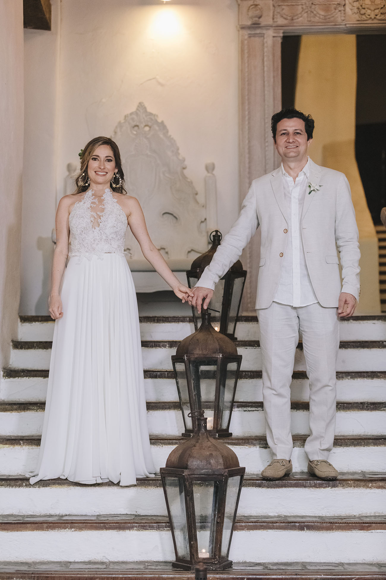 Algunas ideas iniciales desviaron su rumbo, sin alejarse mucho del camino original. Juan quería, por ejemplo, casarse en la playa, descalzo, pero después de evaluarlo, y pensando en tantos invitados que venían de afuera, que además no conocían Colombia, eligieron a la mágica y turística Cartagena para que el evento se sintiera como un pretexto de vacaciones. El gran reto de los novios y de Isa: ¿cómo lograr que esta reunión de “desconocidos” se viviera verdaderamente como un encuentro de amigos? Además de crear un chat en Whatsapp con todos los asistentes, diseñaron un completo plan de actividades para cuatro días. Día uno: coctel de bienvenida en el Hotel Las Américas. Día dos: botes, una playa privada, sol, mar… Día tres: el de la ceremonia de renovación de votos. Día cuatro: un brunch de despedida, en el patio de El Marqués Hotel Boutique.