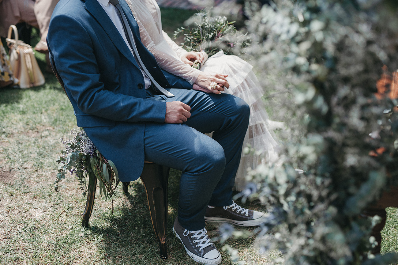 Con Raschid, el cuento fue más fácil: una semana antes del matrimonio, fueron juntos a Zara. Él sabía que quería un traje azul y allá lo encontró. Sin enredos, sin trabas, como es él: tranquilo. La corbata la compró con el papá y los zapatos también los había traído de Los Ángeles: unos Converse grises.