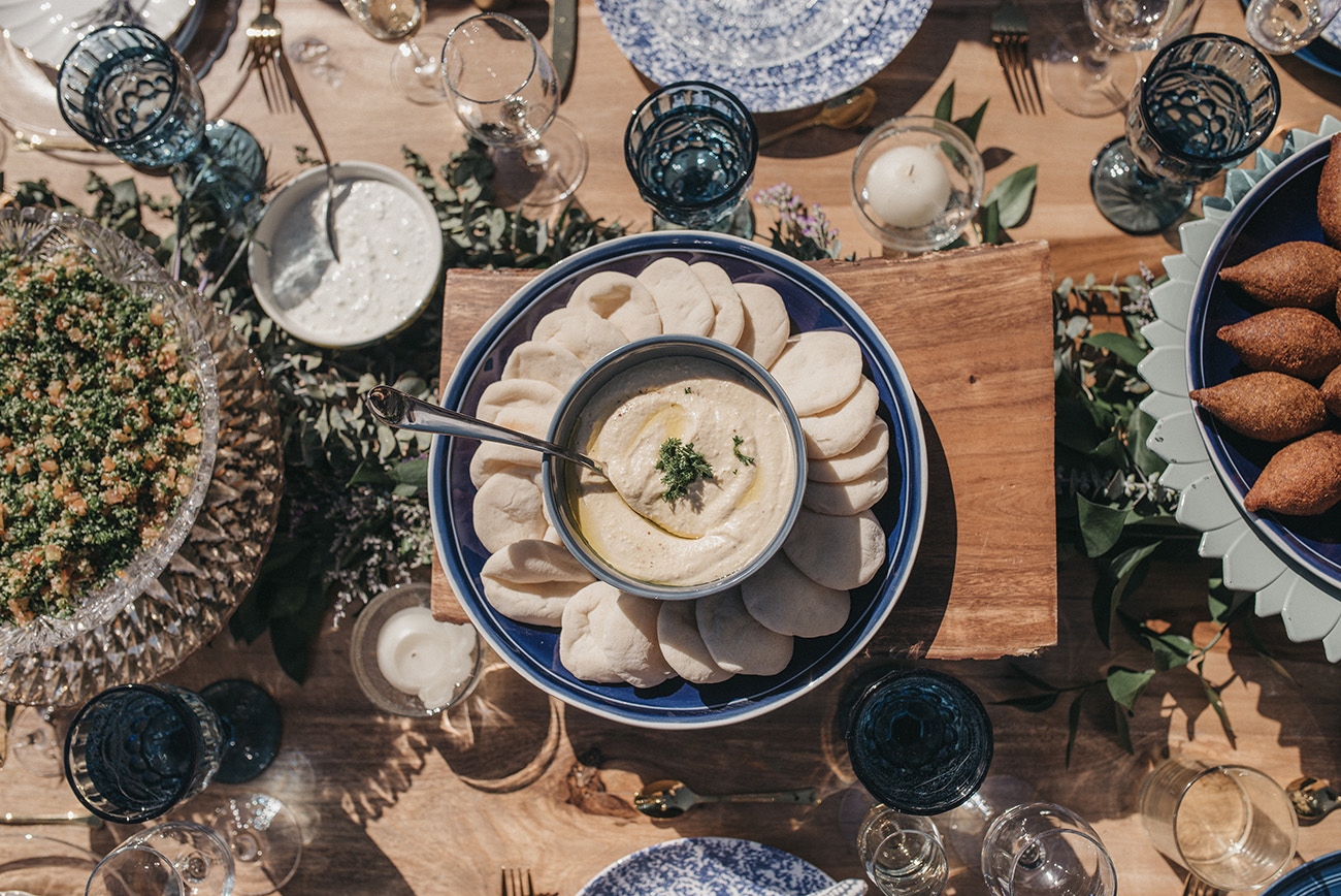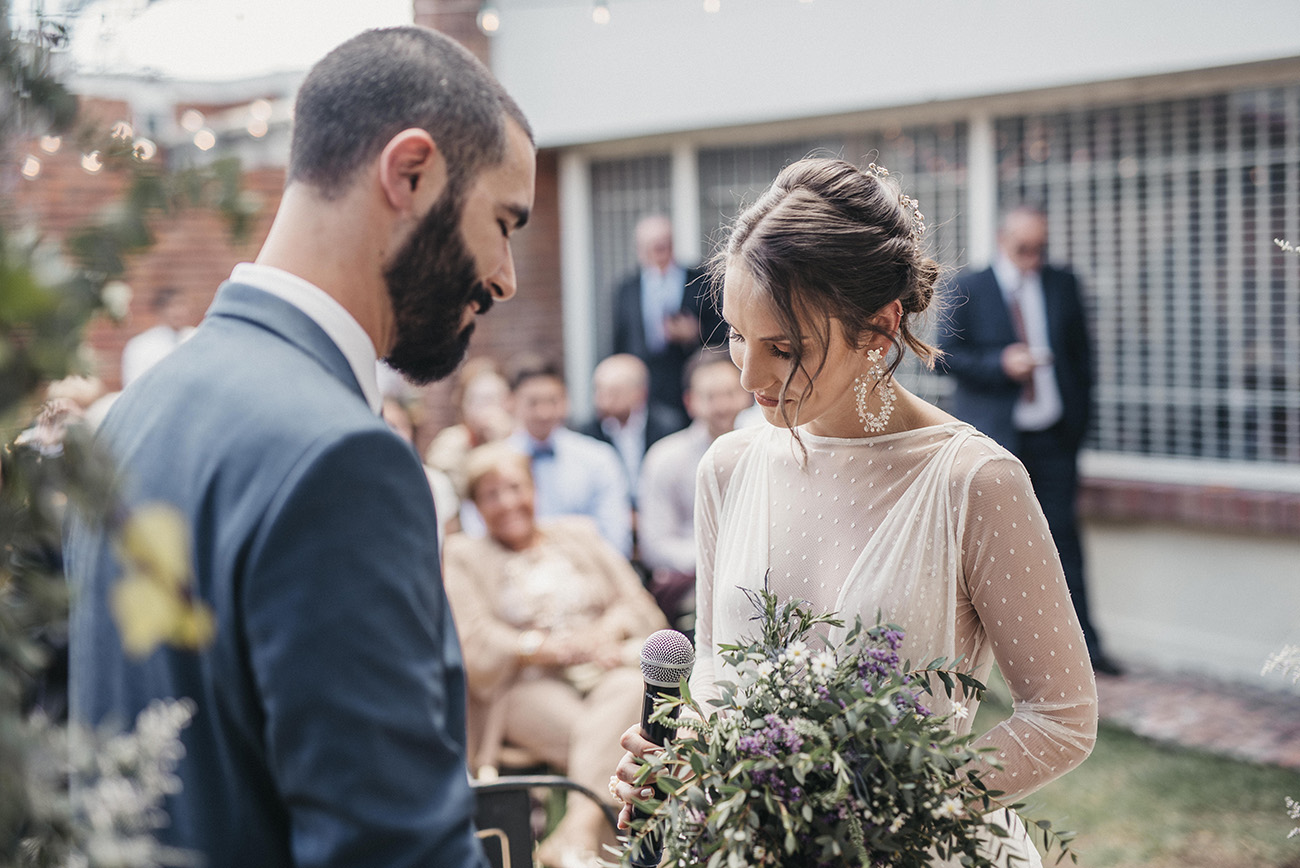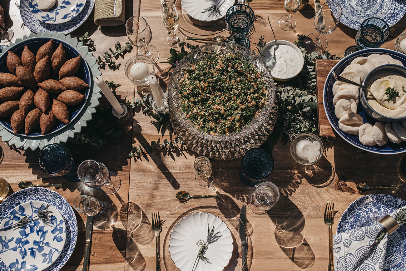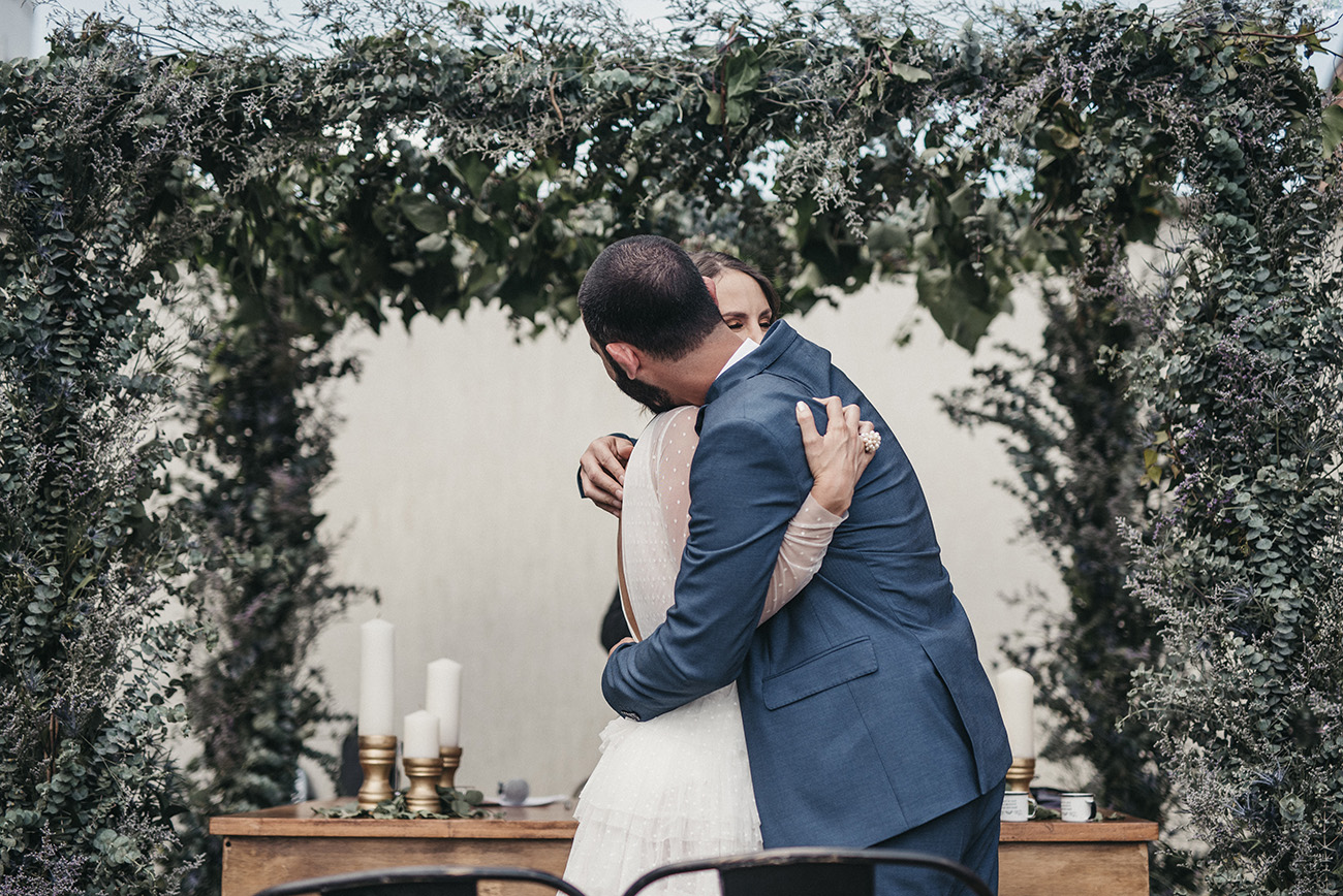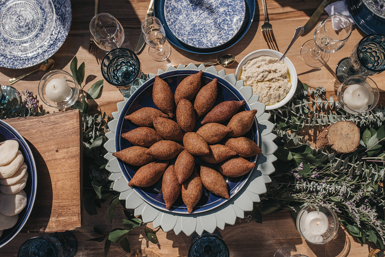 Fue un almuerzo en una mesa larga, al estilo de las familias italianas, donde todos comparten, todos conversan, todos comparten alrededor de la buena comida. En el mismo jardín que ocurrió la ceremonia. Con las mismas sillas. Con los mismos invitados. Una vajilla de tonos azulosos, troncos de madera, velas, luces y mucho follaje verde. Comida árabe, para recordar las raíces de la familia de él. Postre árabe, hecho por el papá de Raschid. También cheesecake, para darle gusto a ella, que estudió hace un tiempo pastelería en el Instituto Mariano Moreno y es muy exigente cuando se trata de sabores. Fue una velada de recarga para el alma. Fue una conversación de todos con todos. Fue un recordatorio de que la familia es la manifestación del amor.