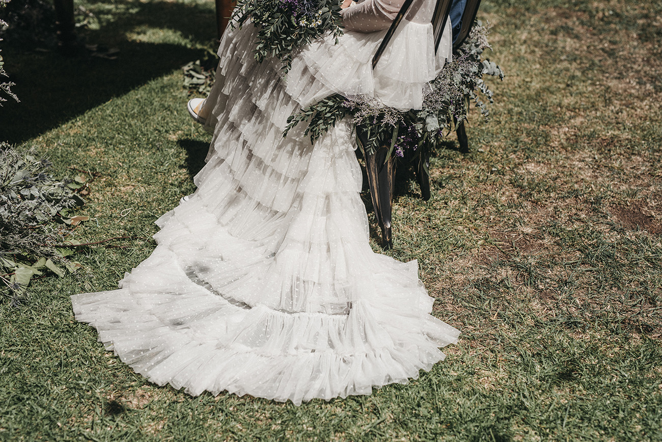 Después de la ceremonia vinieron las fotos de los dos, mientras los invitados salieron a otro jardín para que Anita, la wedding planner, organizara aquel almuerzo tan lleno de cariño.