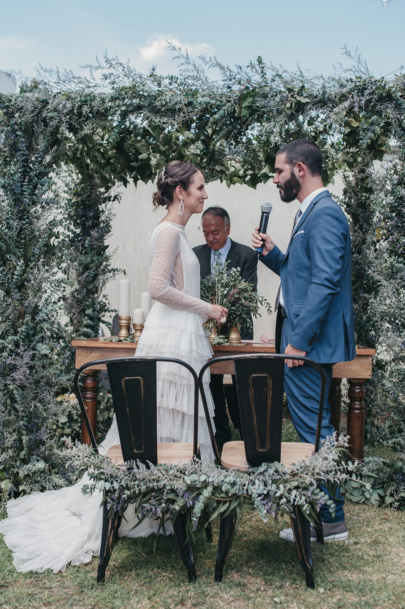 Esta fiesta, esta celebración, este amor que colecciona detalles, sabe que en lo simple está su fuerza; en lo sencillo están los dos. Por eso, las invitaciones —como no querían gastar papel— las hicieron online, en www.withjoy.com; no solo era un “Save the date”, eran Alejandra y Raschid contándoles (por medio de las letras que escribió él) por qué no estaban invitados a la ceremonia, por qué querían un momento íntimo con sus familias, por qué sí estaban invitados a la fiesta y lo mucho que querían compartir con ellos esa felicidad que estaban descubriendo. A las familias les enviaron una invitación impresa muy sencilla.