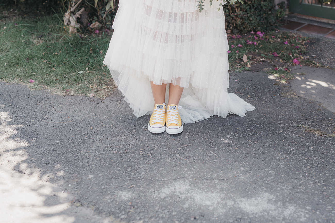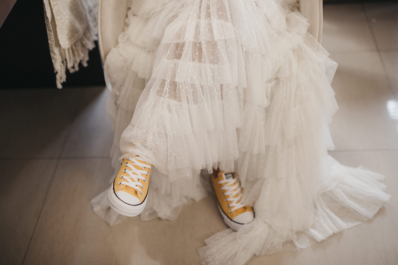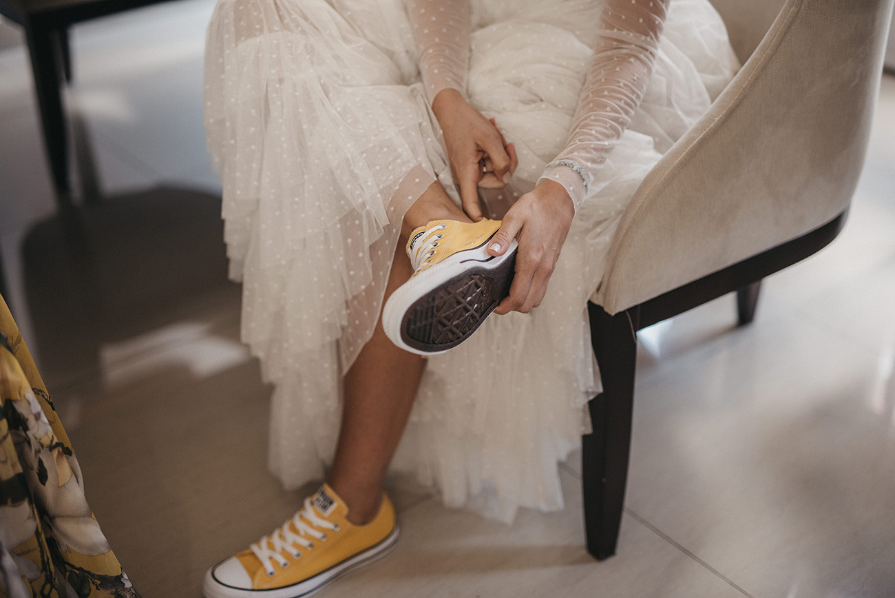 Sabía que no quería tacones, quería bailar toda la noche sin cambiarse los zapatos. Otra vez Pinterest le mostró una idea: Converse amarillos