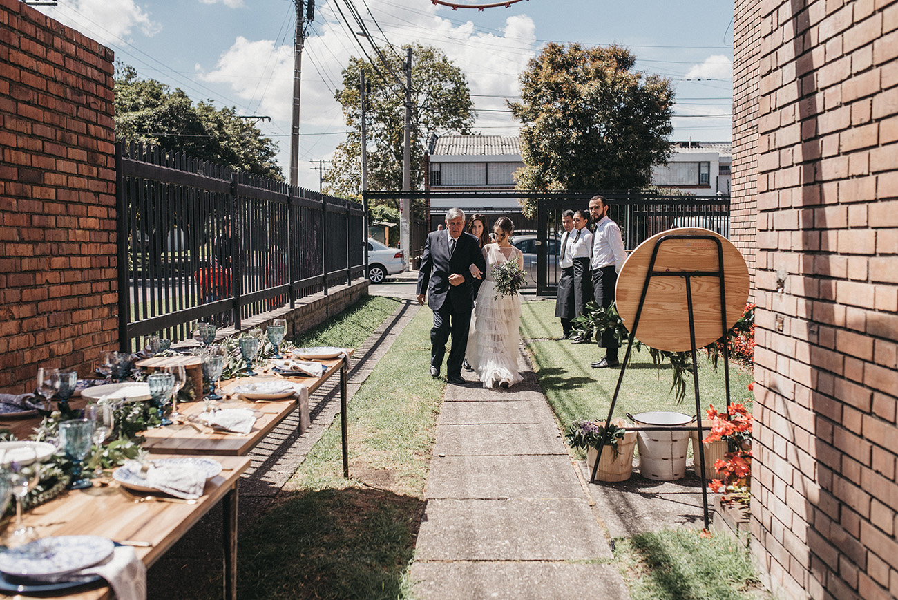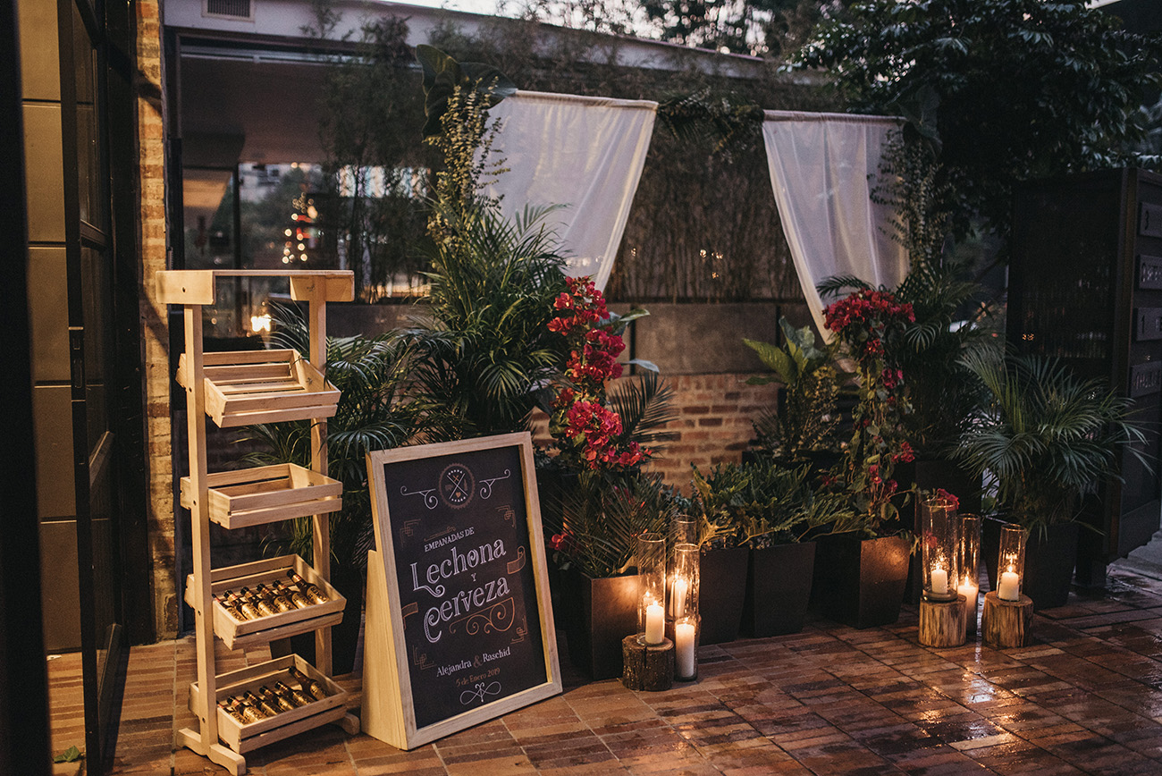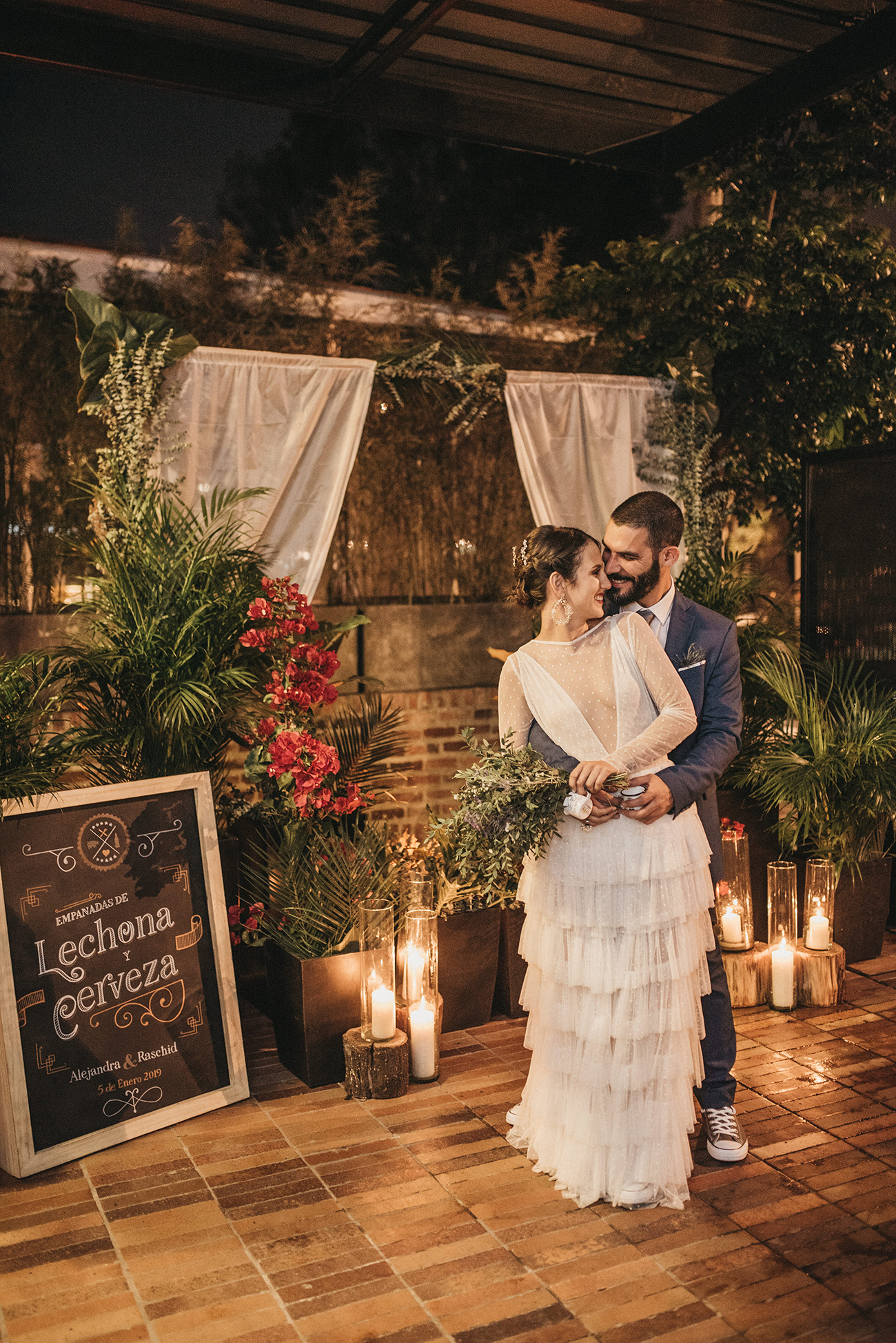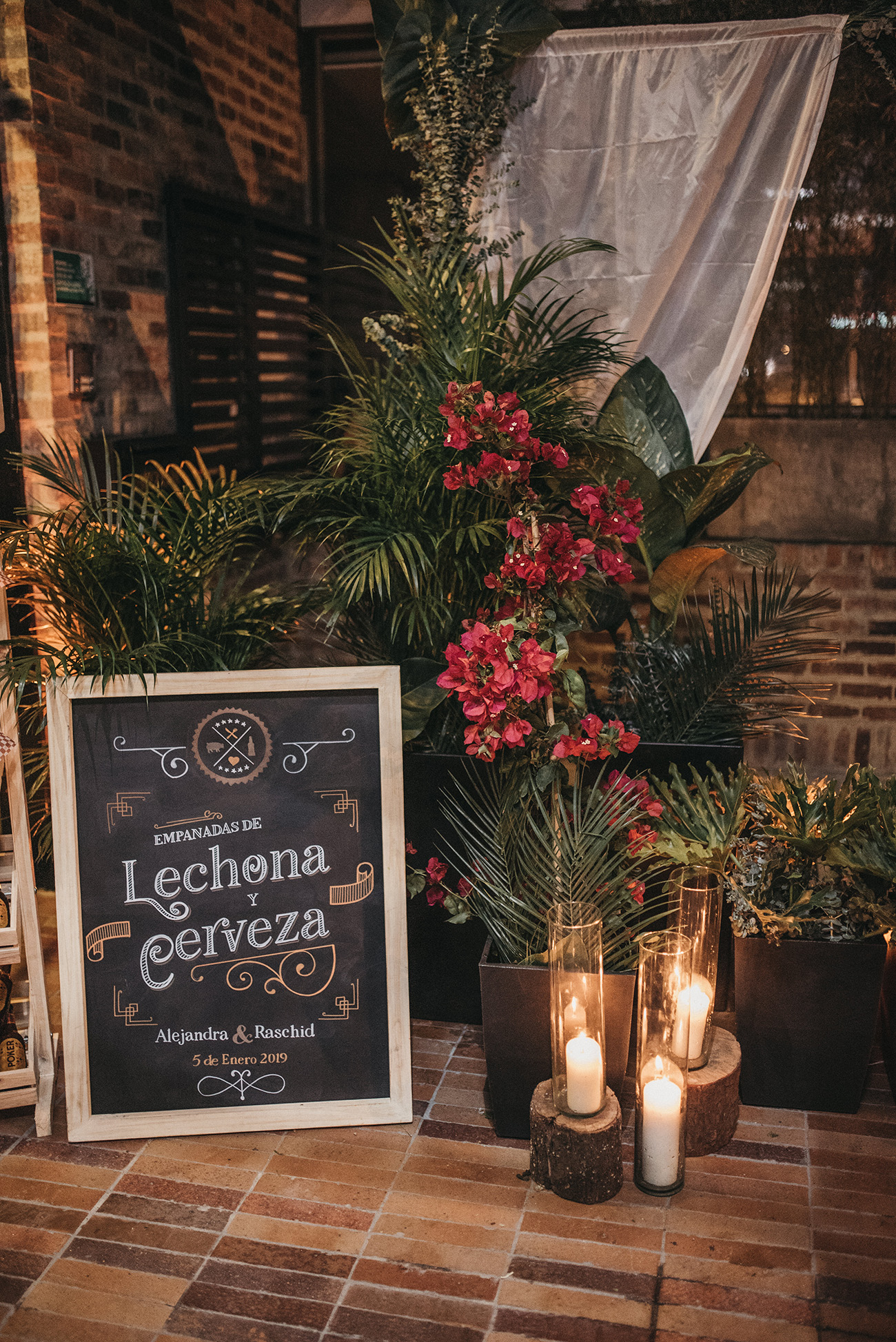 Empezaron por donde empiezan las historias que tienen sentido: hablando entre los dos sobre lo que querían, lo que eran —y son—, lo que disfrutaban y no lo que pretendían. Porque el amor no pretende, es. Porque los amigos no pretenden, son. Porque la familia no pretende, es. Porque todo aquello que es real, no pretende ser algo que no es, sino que es, naturalmente. Ella quería algo pequeño, sin protocolos. Él quería una rumba, de las buenas, con todos sus amigos. Con música, tan importante a la hora de narrar sus vidas. Con muchos brindis, tan bienvenidos en esta historia. Con buena, buenísima comida, que le hace tanta venia a este amor. Por supuesto, dos médicos / estudiantes de especialización —él en ortopedia y ella en medicina familiar— no tenían mucho tiempo. Alejandra, tan metódica para cada cosa. Raschid, tan espontáneo para las otras. Ella, que necesita planear. Él, que se va yendo con el río. Los dos supieron confiar en Anita, la wedding planner de NoMeOlvides, que los guió, que los sorprendió.