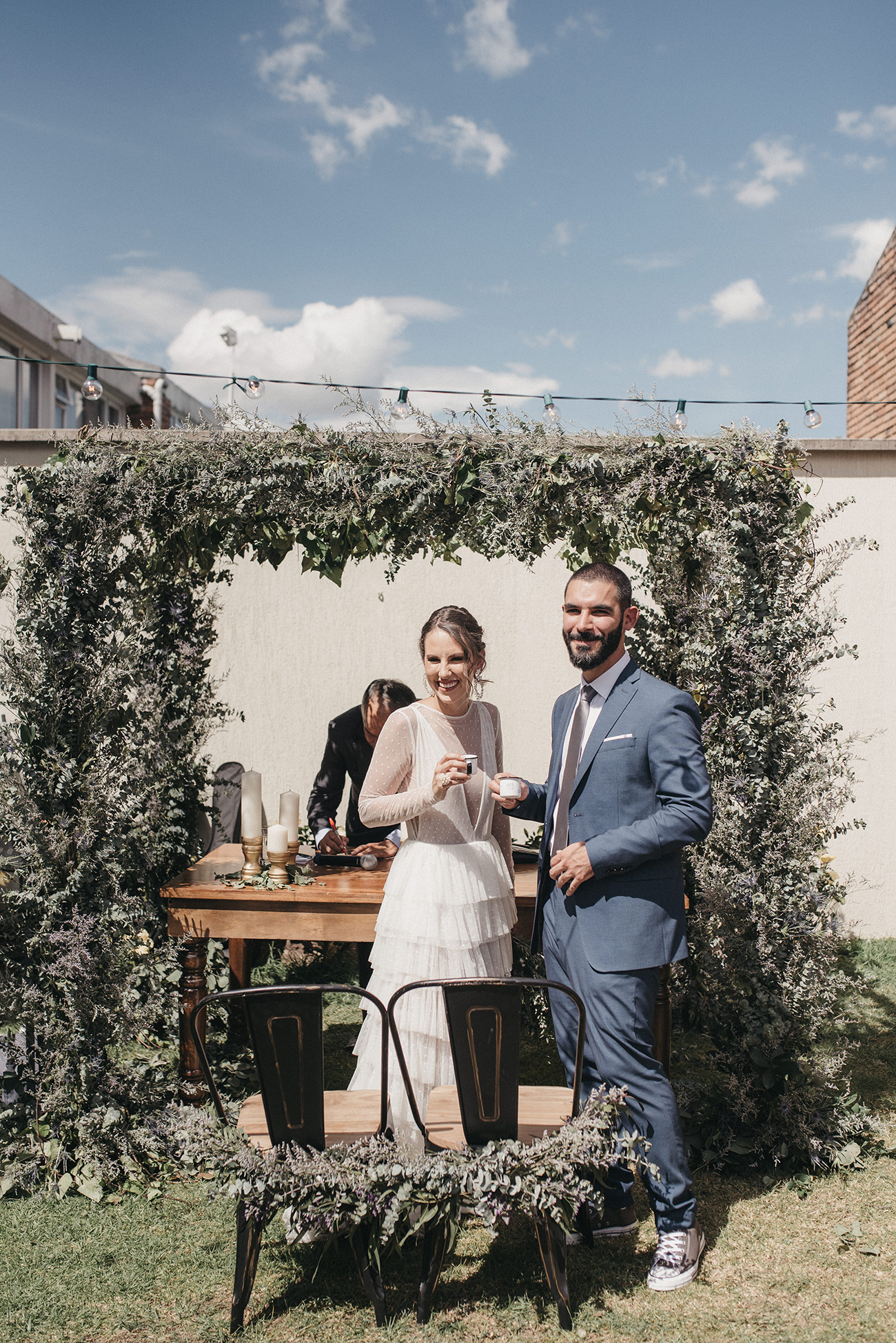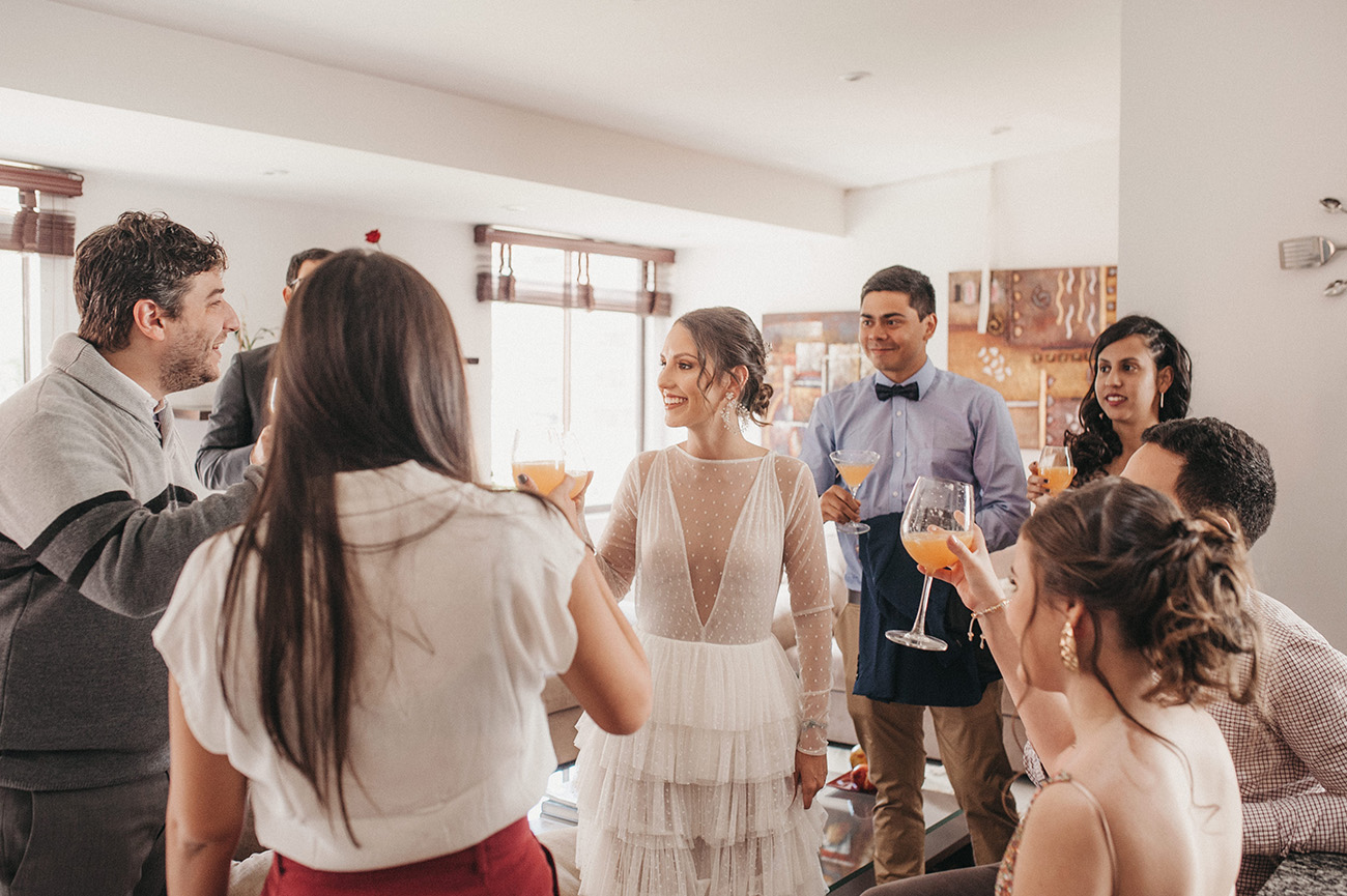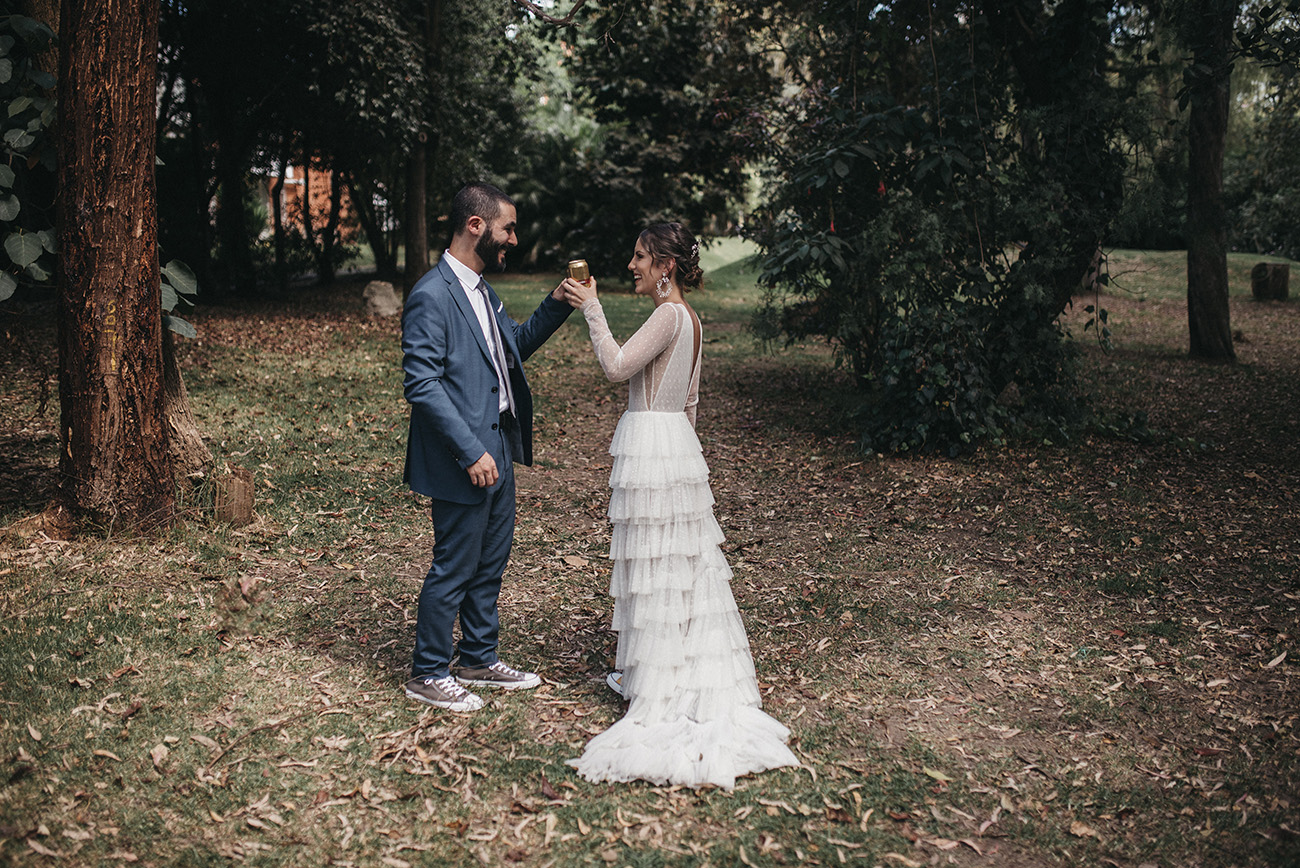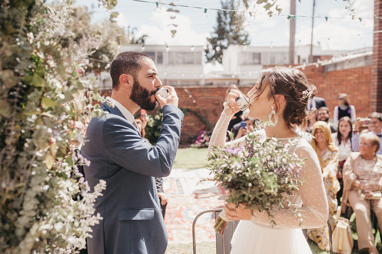 Empezaron por donde empiezan las historias que tienen sentido: hablando entre los dos sobre lo que querían, lo que eran —y son—, lo que disfrutaban y no lo que pretendían. Porque el amor no pretende, es. Porque los amigos no pretenden, son. Porque la familia no pretende, es. Porque todo aquello que es real, no pretende ser algo que no es, sino que es, naturalmente. Ella quería algo pequeño, sin protocolos. Él quería una rumba, de las buenas, con todos sus amigos. Con música, tan importante a la hora de narrar sus vidas. Con muchos brindis, tan bienvenidos en esta historia. Con buena, buenísima comida, que le hace tanta venia a este amor. Por supuesto, dos médicos / estudiantes de especialización —él en ortopedia y ella en medicina familiar— no tenían mucho tiempo. Alejandra, tan metódica para cada cosa. Raschid, tan espontáneo para las otras. Ella, que necesita planear. Él, que se va yendo con el río. Los dos supieron confiar en Anita, la wedding planner de NoMeOlvides, que los guió, que los sorprendió.