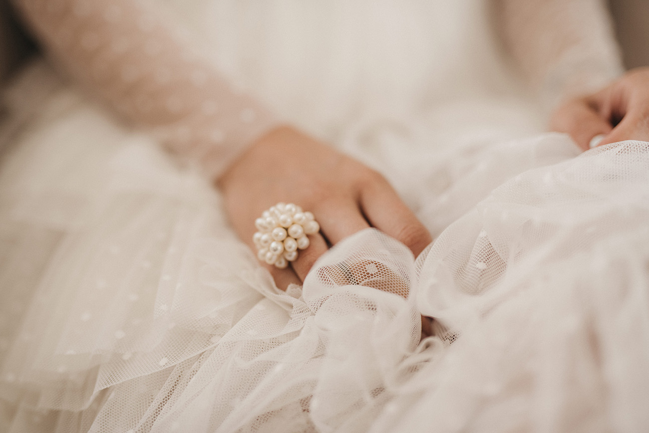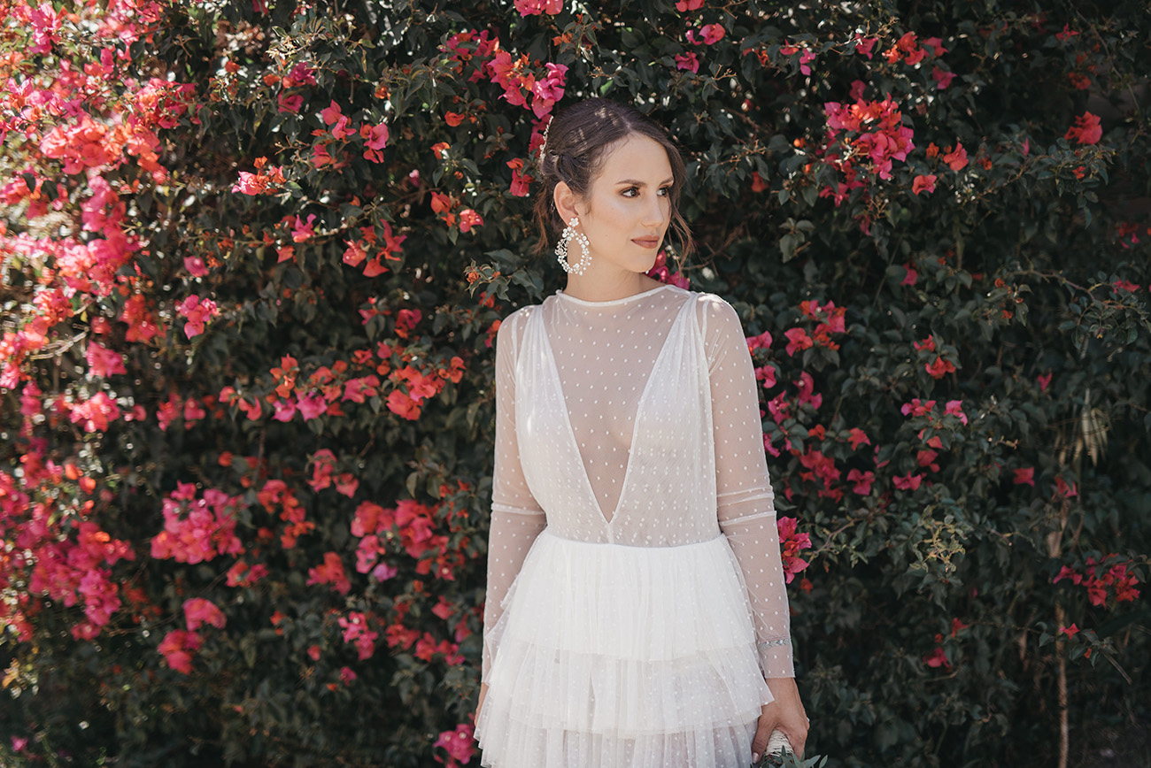 En Pinterest tenía varios vestidos para saber qué novia sería, pero todos eran tan diferentes que podía ser muchas al tiempo. Había algo en común en todos: el tul. Entonces se enteró de que De Novia a Novia tendría su primera edición en Bogotá y las cosas se aclararon más. Uno de Andrés Pajón, con mucho tul, manga larga, de espalda descubierta, de capas sobre capas. Cómodo, como lo quería; original, como le pertenecía a su esencia. Sabía que no quería tacones, quería bailar toda la noche sin cambiarse los zapatos. Otra vez Pinterest le mostró una idea: Converse amarillos. Los buscó una y otra vez, pero ese color no llega a Colombia. Aprovechó que Raschid viajó a Los Ángeles y se los encargó: tampoco fue fácil. Desbarató varias tiendas “porque su novia quiere casarse con Converse amarillos y se los tengo que conseguir”. Al final: Alejandra de Converse amarillos y estrenando sonrisa.