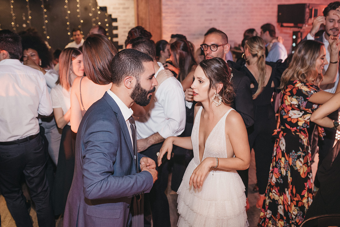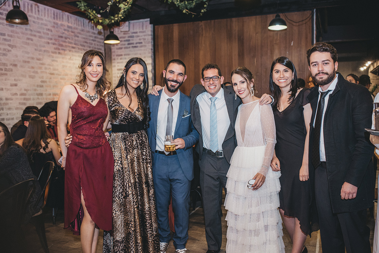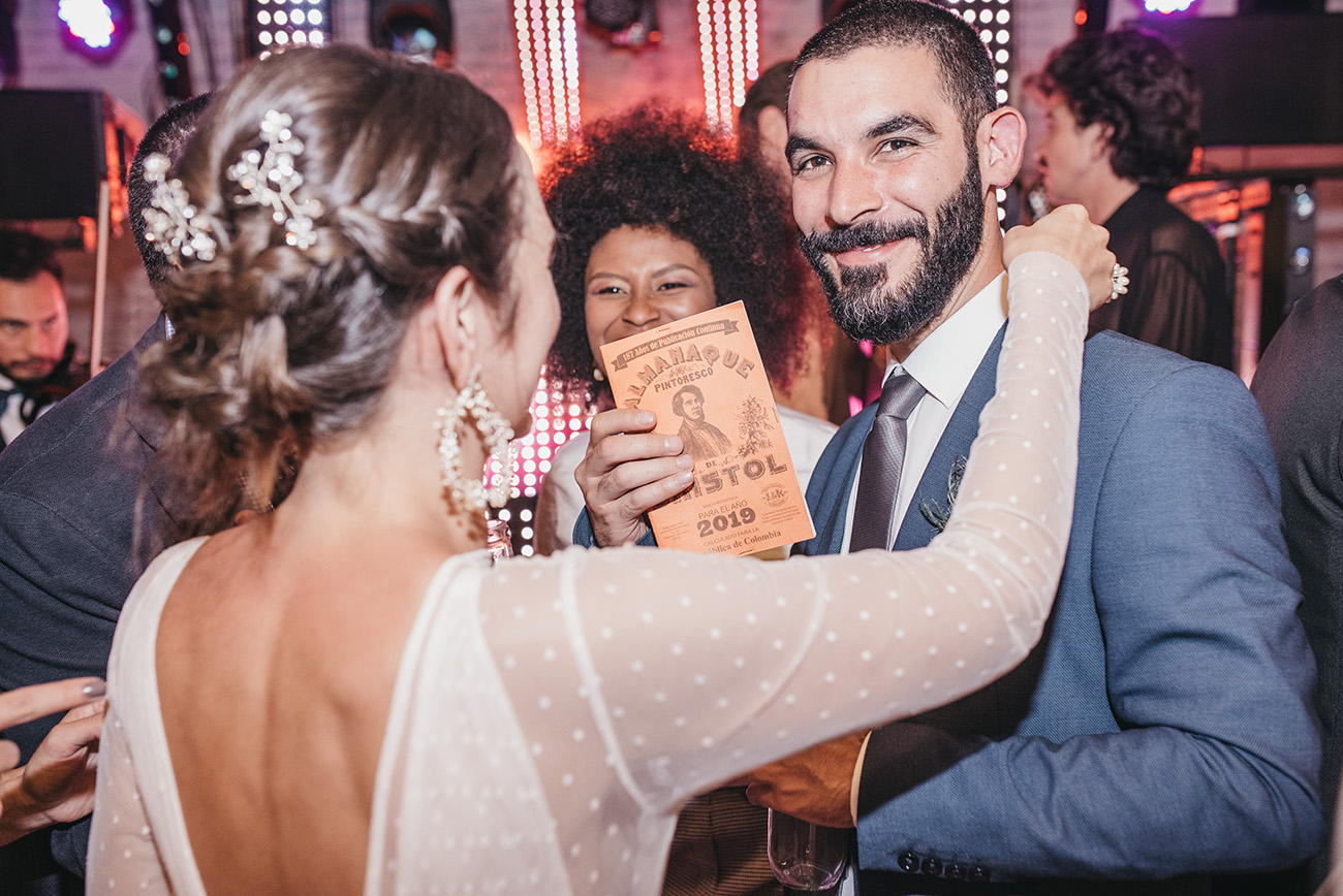 Para la fiesta, los amigos. Para los amigos, la fiesta. Después de la ceremonia y del almuerzo, ¡la rumba! Fue en una bodega (Fabulae) en la zona G de Bogotá. Es un lugar de arte y ferias, pero la mirada de este par siempre encuentra otra perspectiva.