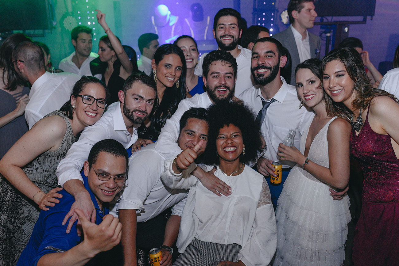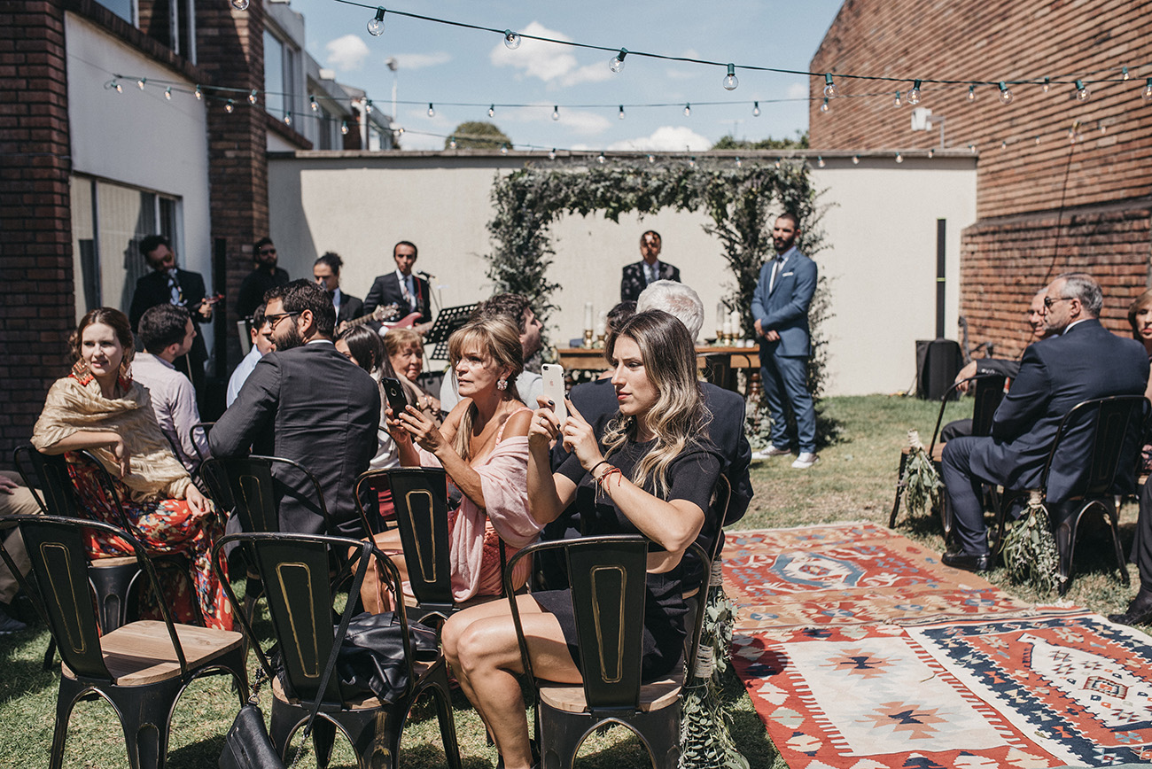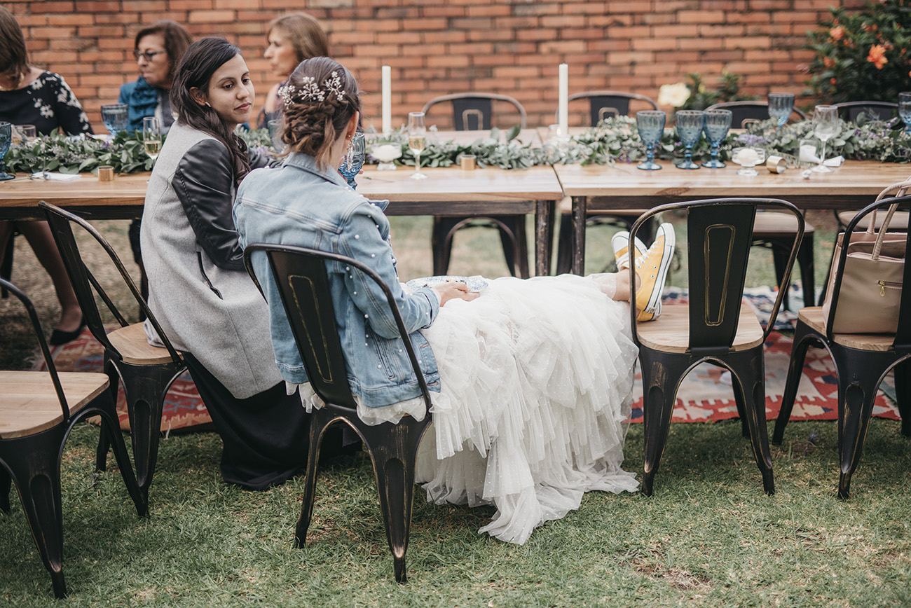 Para la fiesta, los amigos. Para los amigos, la fiesta. Después de la ceremonia y del almuerzo, ¡la rumba! Fue en una bodega (Fabulae) en la zona G de Bogotá. Es un lugar de arte y ferias, pero la mirada de este par siempre encuentra otra perspectiva.