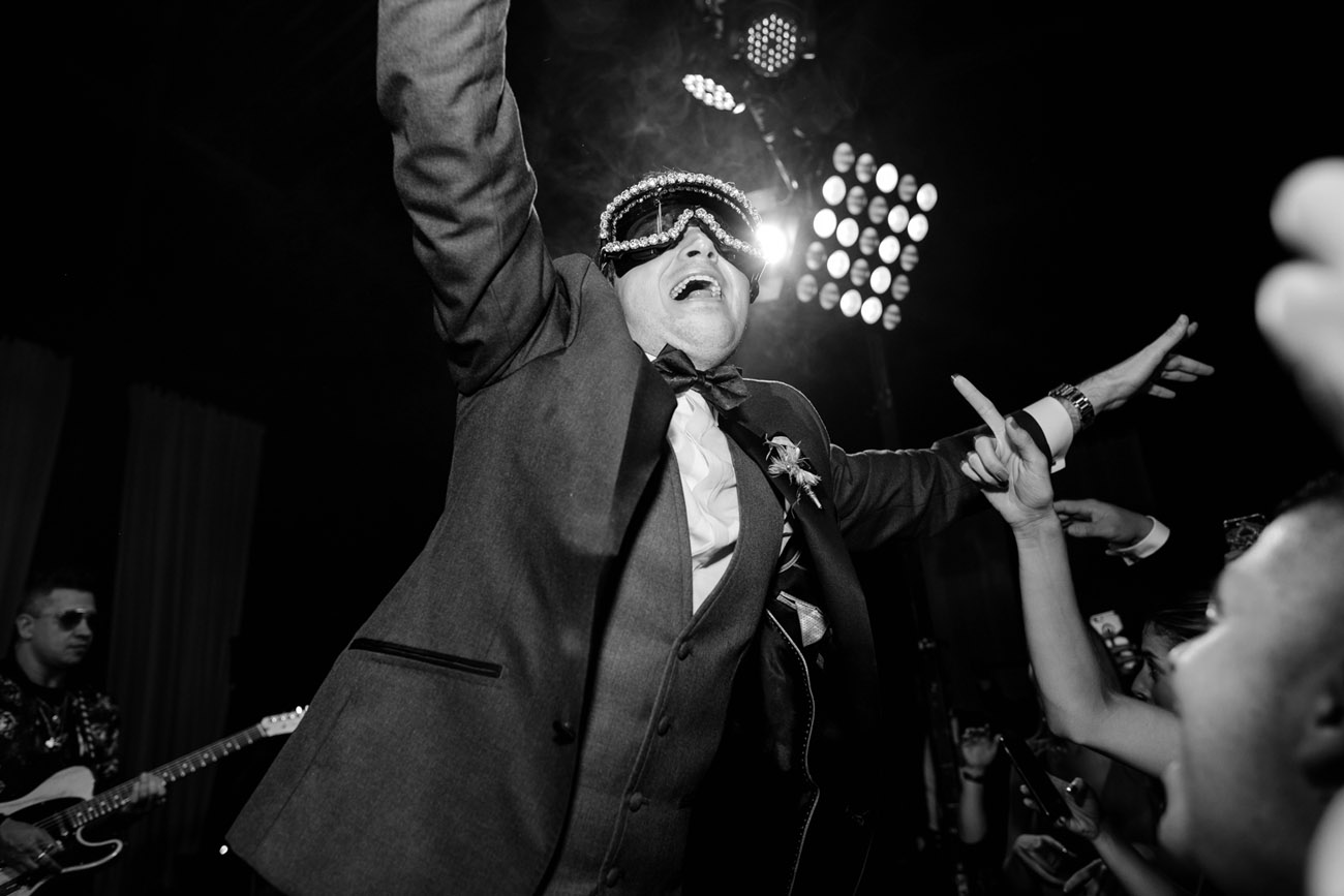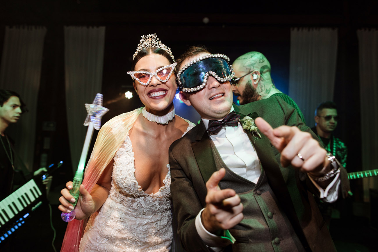 Sonó Carlos Vives con El Amor de mi Tierra y Andrea y Alejandro se bailaron ese amor, se miraron riéndose, se dieron cuenta de la fiesta que eran ellos juntos. La rumba estuvo a cargo de Dj Juanjo que supo sortear todos los gustos: desde merengue, salsa y vallenato hasta reguetón y sus clásicos. Para la hora loca, días antes se fueron los dos para El Hueco a comprar viseras, varitas de estrellas, gafas (tipo motocross). Ella usó una capa de colores tornasol y él unas gafas con muchos brillantes: a los dos les fascina el reguetón. Para que quedara muy claro, el artista invitado de la noche fue Golpe a Golpe. Más allá de un concepto urbano, querían recordar épocas y que los demás lo hicieran, traer a la pista de baile un poco de nostalgia que tantas veces resulta ser felicidad, bailar, bailar y bailar y abrir los ojos al día siguiente para darse cuenta de que todo eso lo habían vivido.