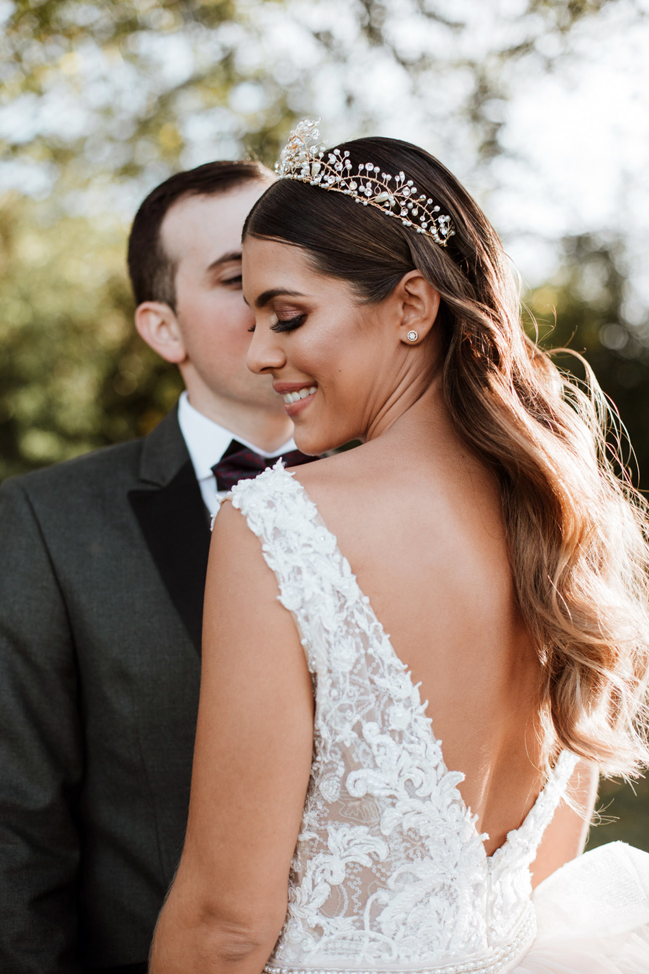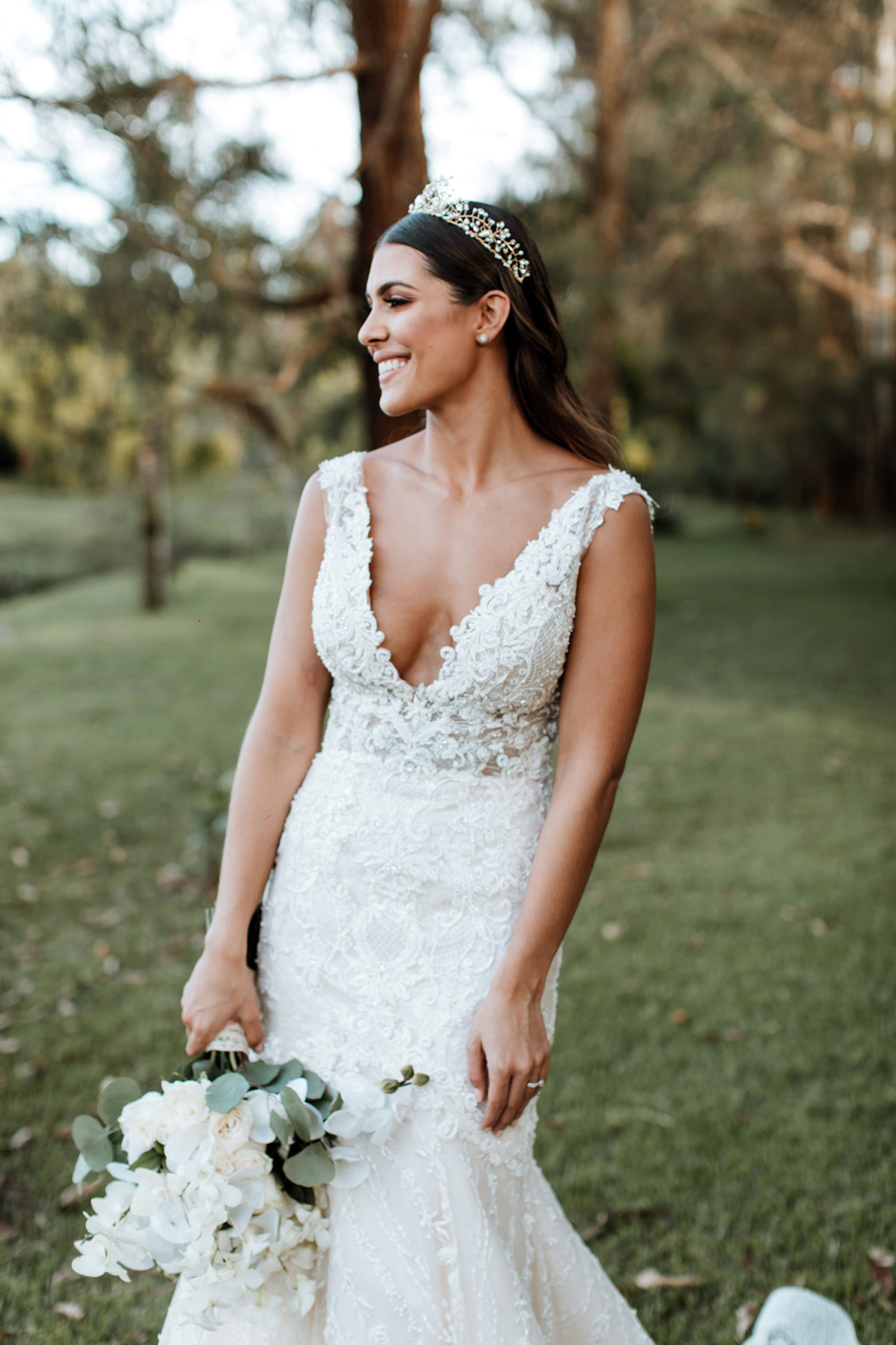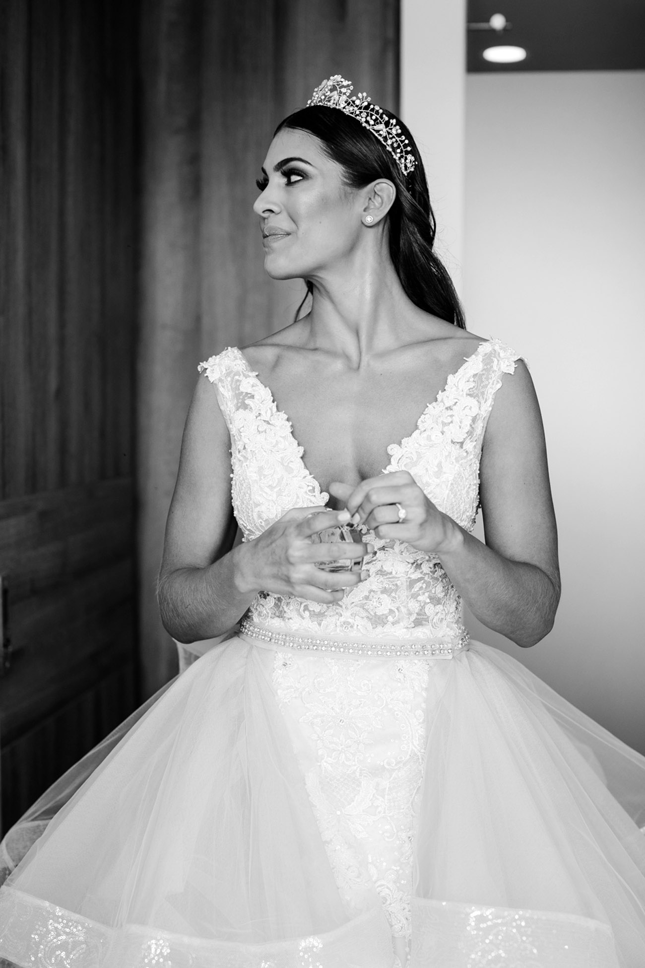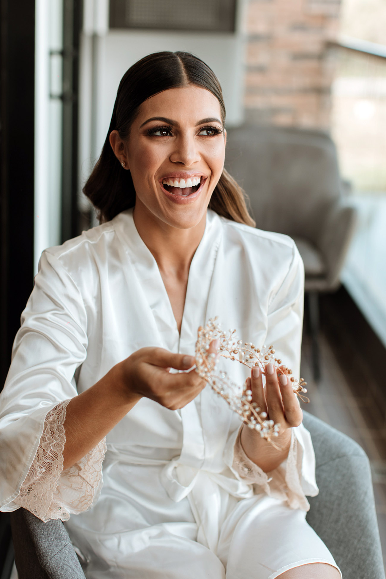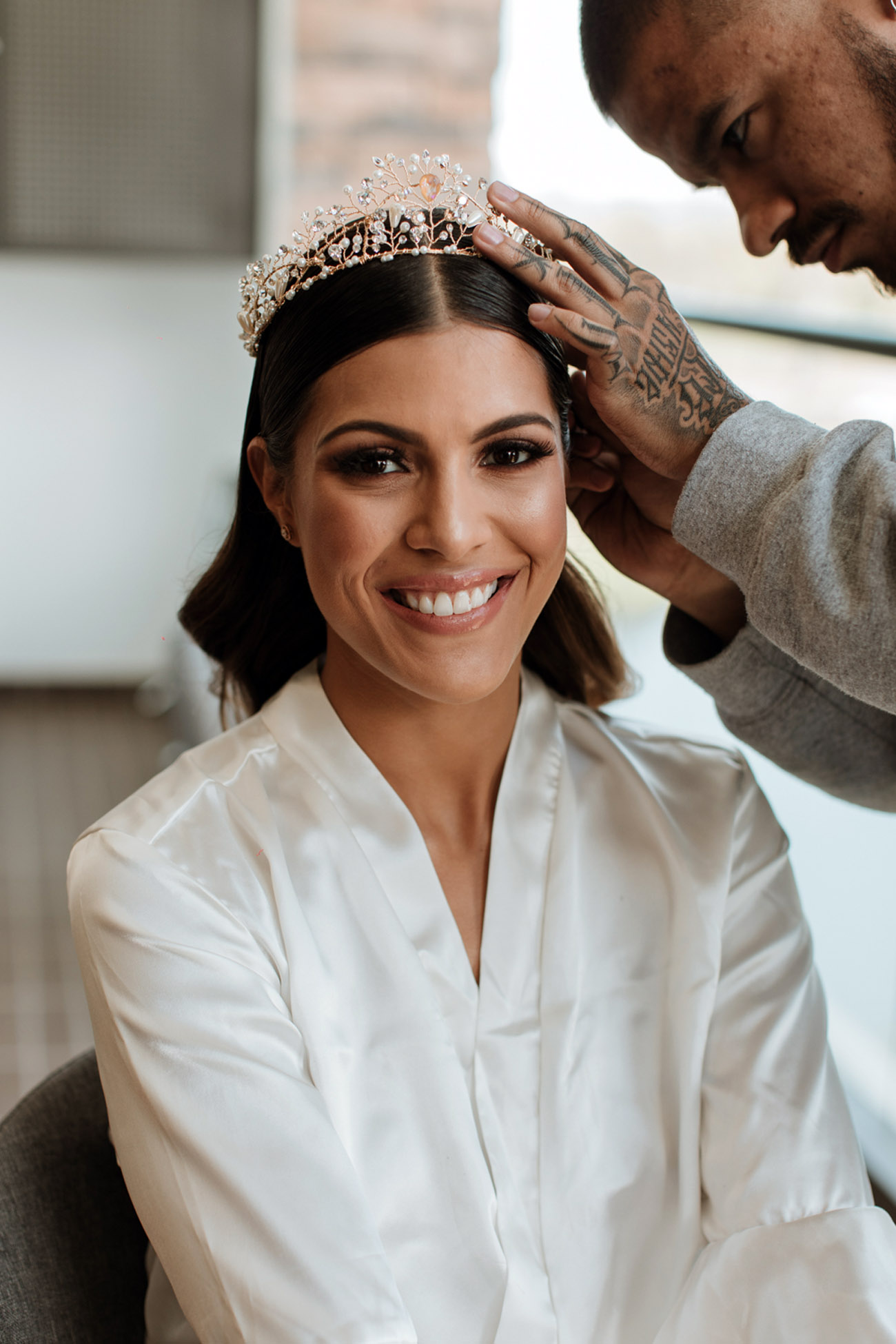 A Andrea le gusta la moda. Disfruta armar looks, arreglarse para salir. Tiene un estilo definido, que ha ido creando con el tiempo. Quería verse muy princesa. Lo tenía claro. Por eso, antes que tener vestido, tuvo corona. Una tejida a mano, con estructura en bronce y enchapada en oro, con cristales de swarovski dorados, plateados y ópalo, hecha por Zawadzky. Aprovechó un viaje a Bogotá para medirse vestidos. Se midió muchísimos. No lo encontró.