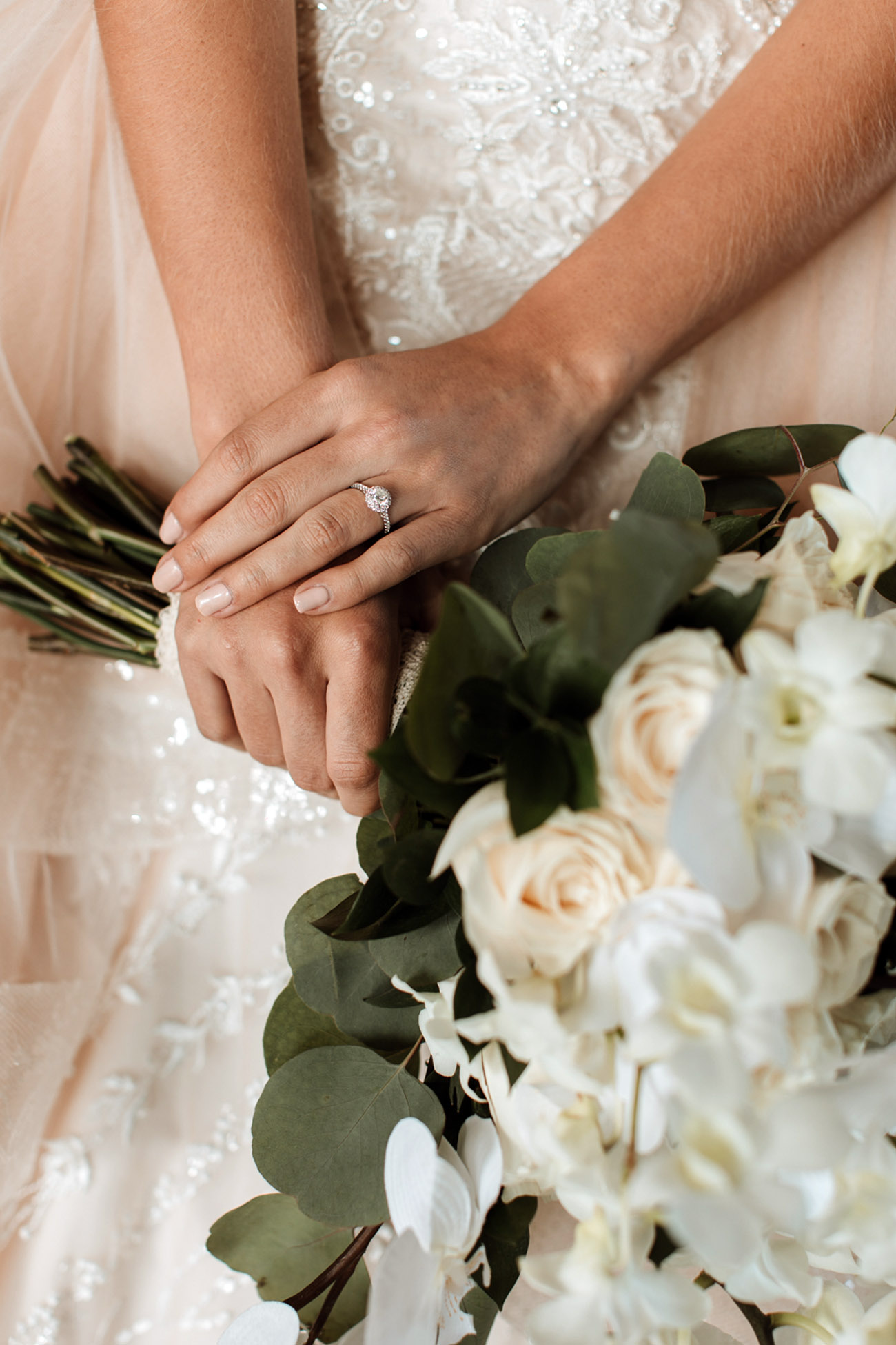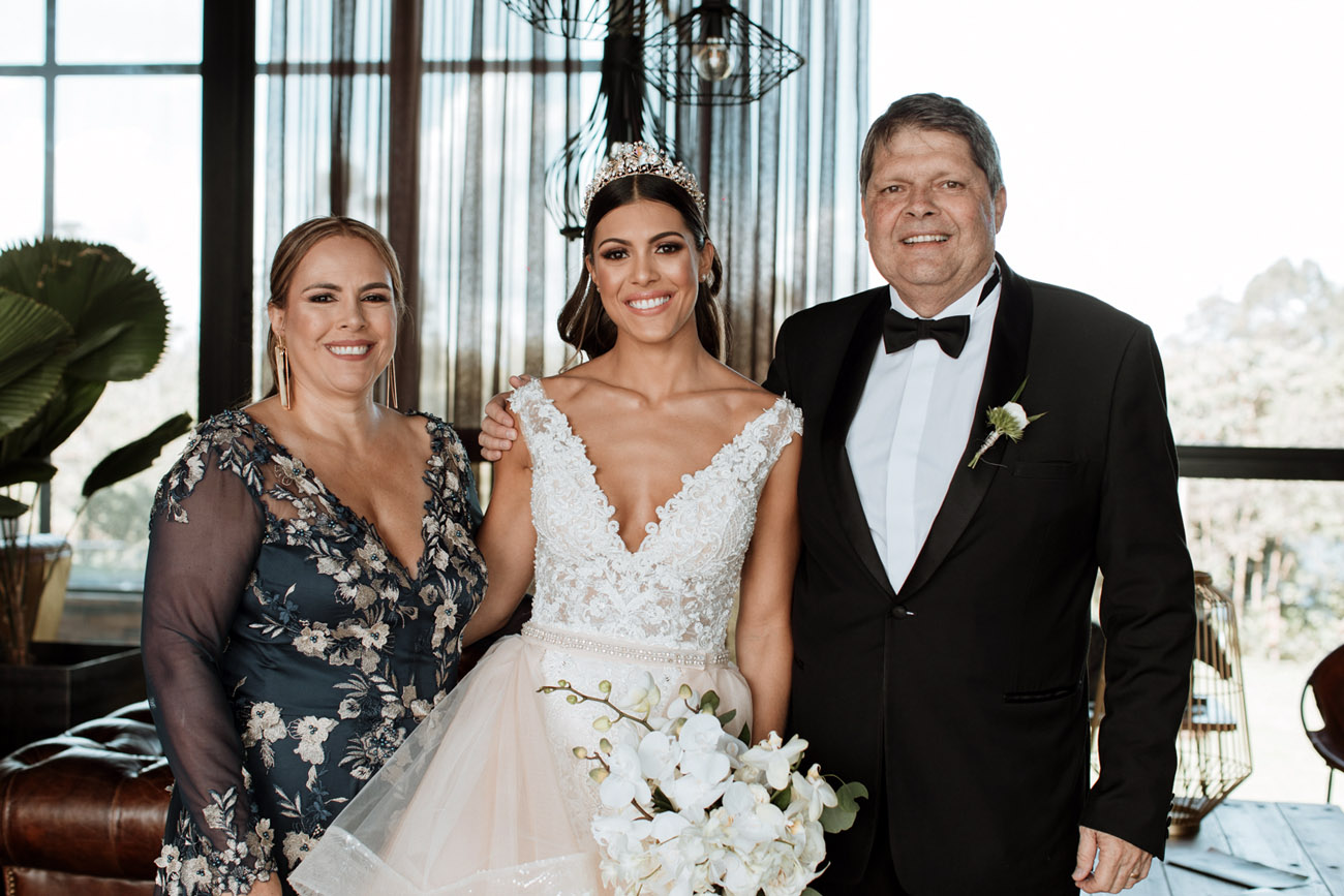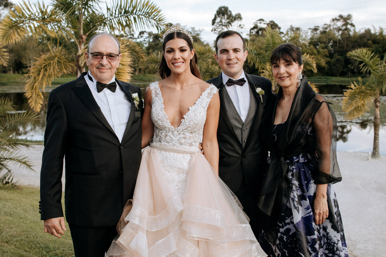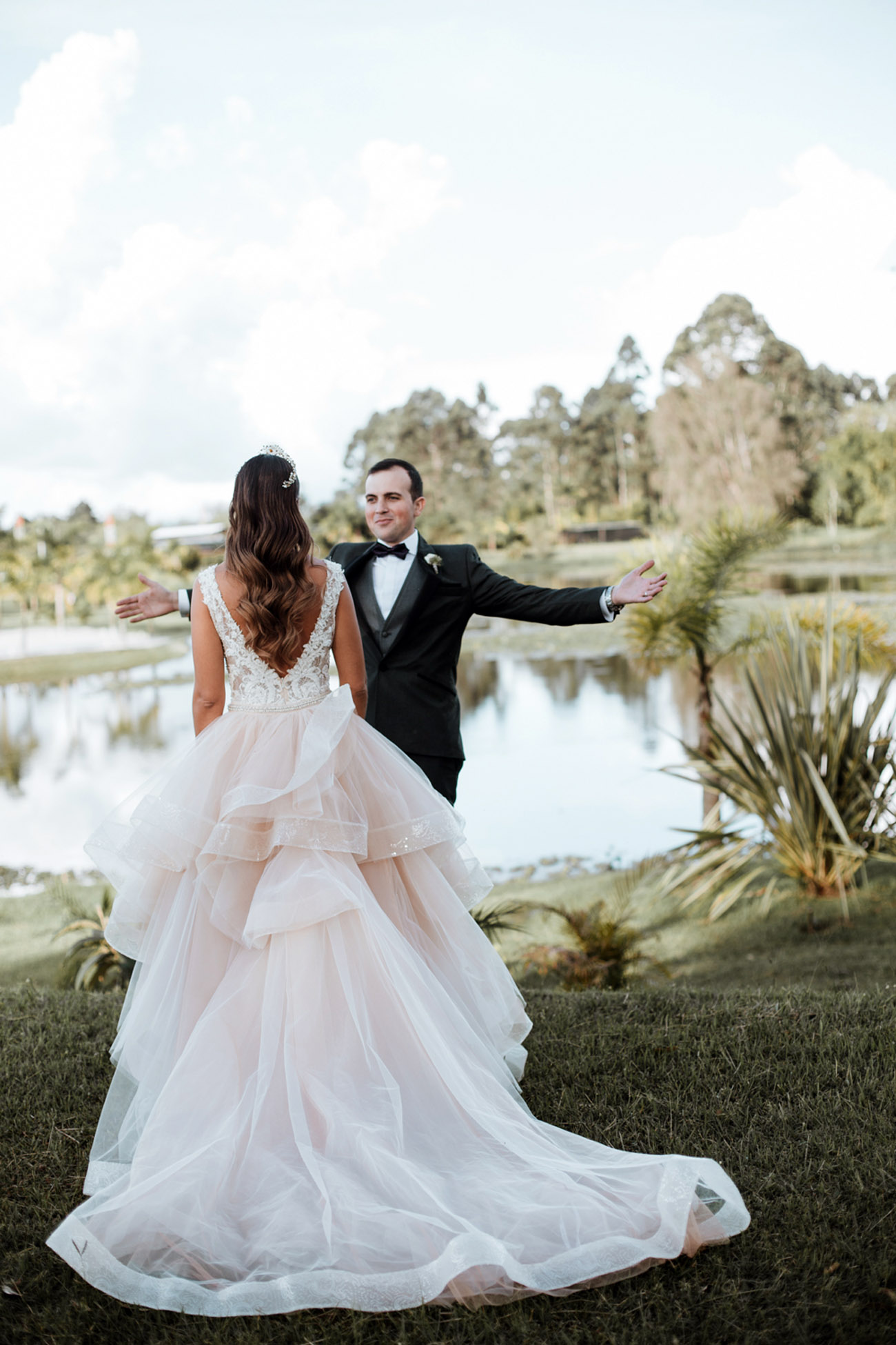 Después, con su hermana y su mamá, fue a La Esposa, en Vizcaya. Cuando Albita, la asesora de imagen, entendió su estilo le mostró un vestido de MillaNova. A Andrea, que tenía en su mente llevar manga larga, no le cuadró mucho. Sin embargo, empezó la función: uno, dos, tres, cuatro, seis vestidos. El último, ese manga sisa, bordado de principio a fin con pedrería, de corte sirena, con escote pronunciado adelante y con unas capas (que se podían quitar) bordadas en las esquinas con brillantes fue el que la cautivó. También a su mamá, a su hermana, a las amigas que llevó después para confirmar que ese vestido lo habían cosido a su gusto.