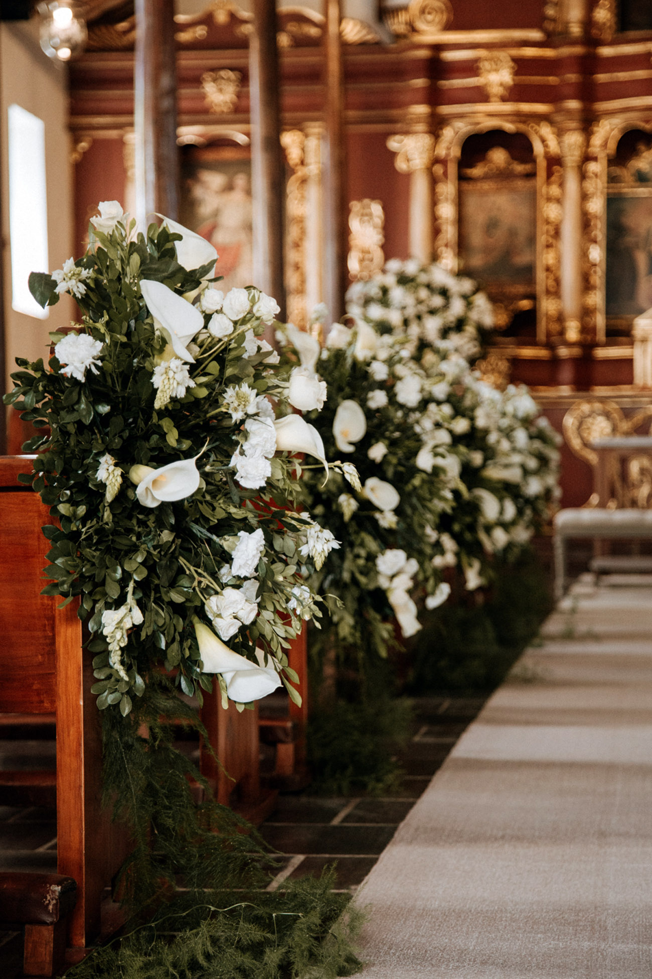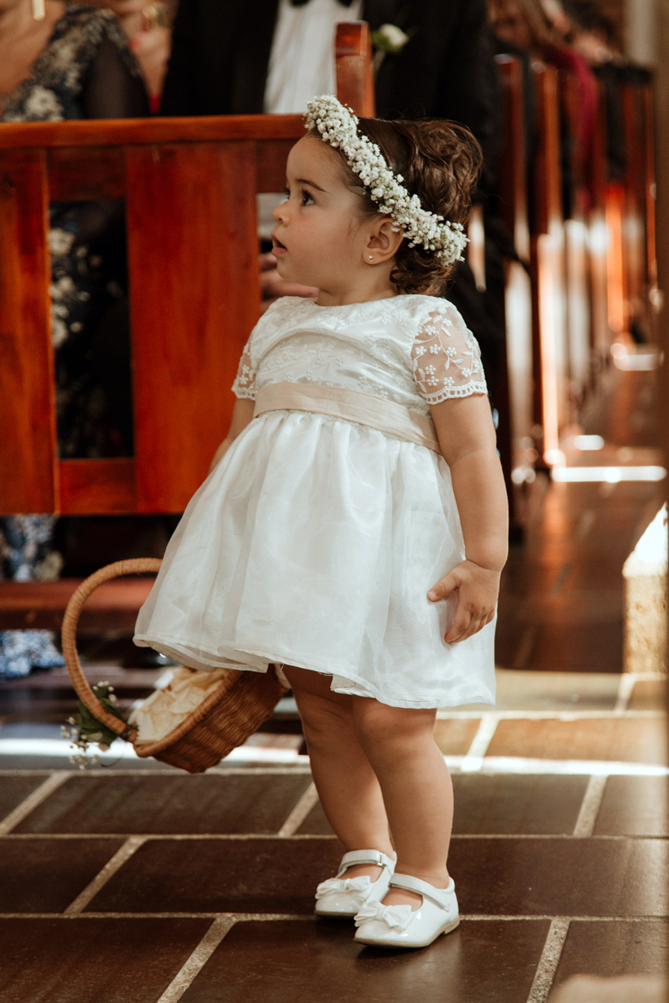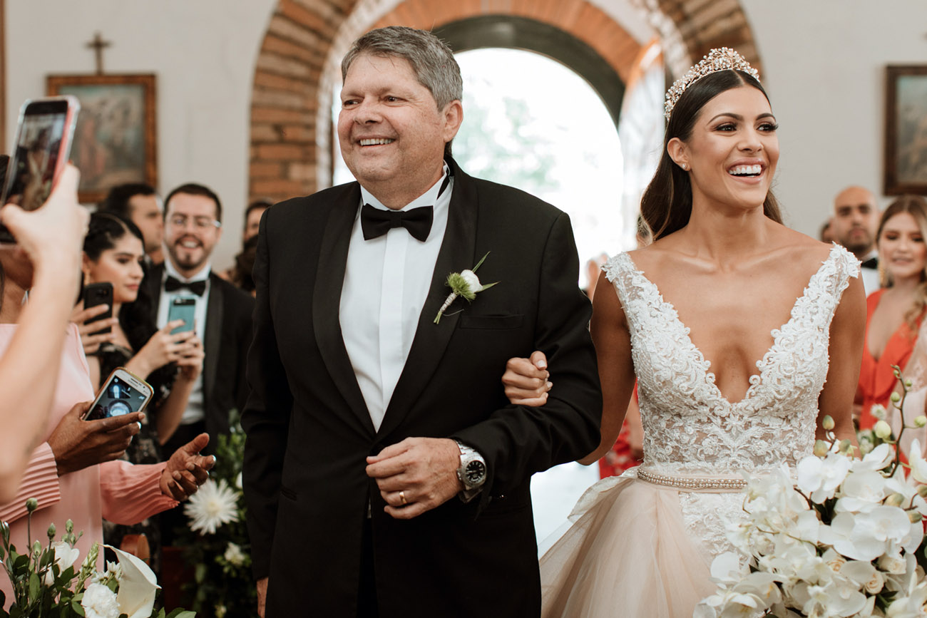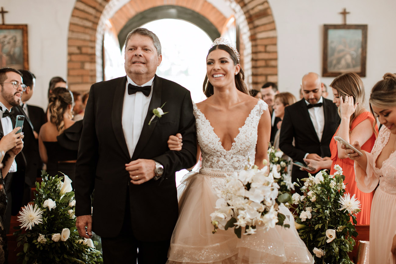 Si le preguntan a ella cuál fue el momento favorito del día, responde, casi sin pensarlo que la entrada a la iglesia. Primero entraron cuatro pajecitos: Pedro y Emma, dos primitos de Alejandro; Elena, una primita de Andrea; y Matilda y Mariana, las hijas de unos amigos. Después, con la marcha nupcial de fondo, ella con su papá.