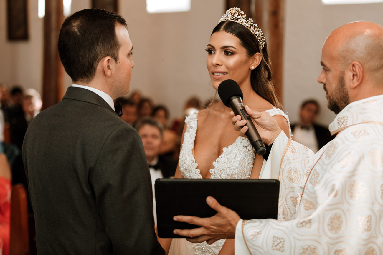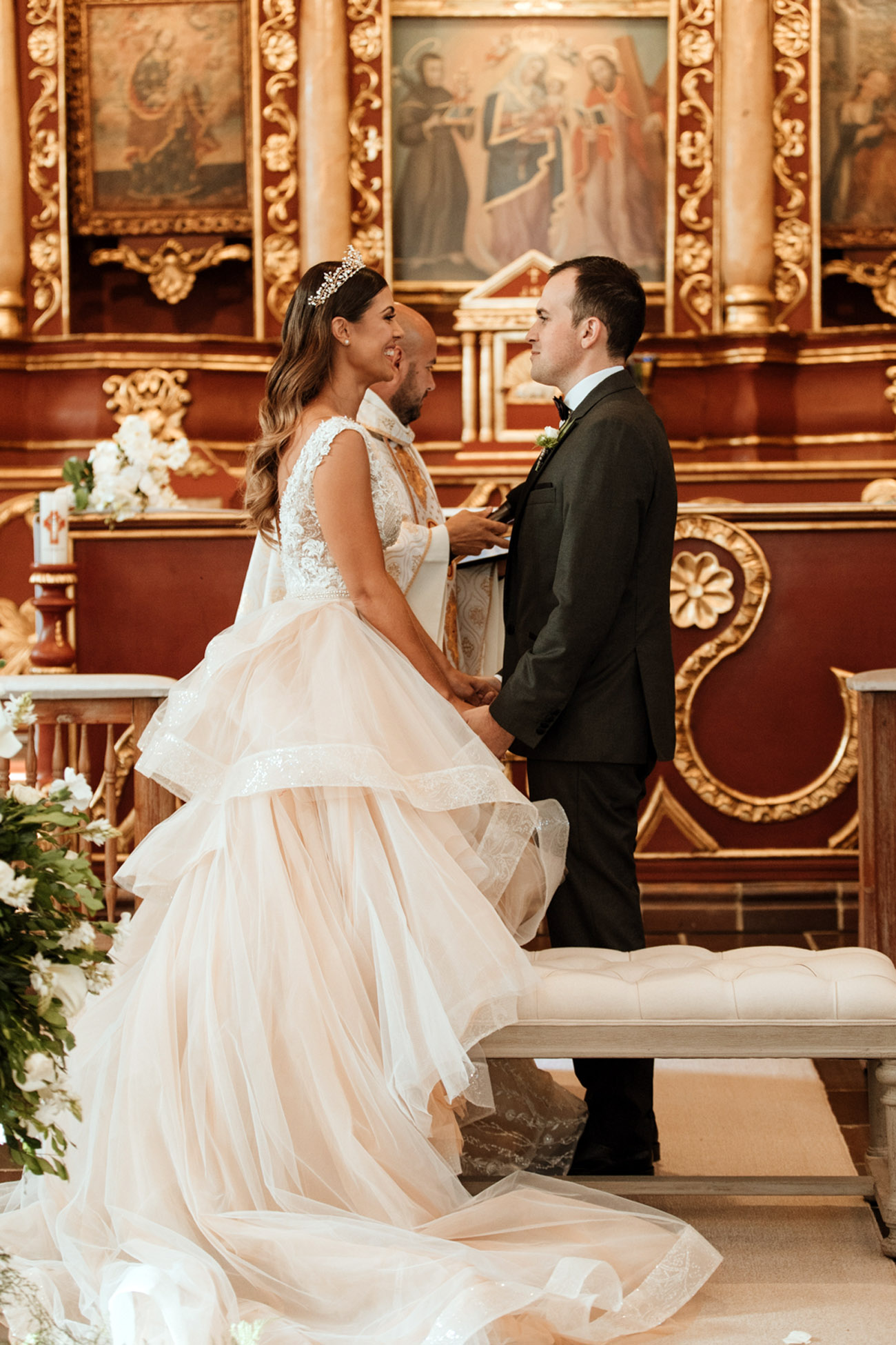 Fue una ceremonia especial, no solo porque los dos creen en Dios y entonces, había una convicción profunda por lo que estaban haciendo; sino porque las canciones que eligieron las cantó Sofía Fernández, gran amiga de ambos; y porque Fredy, el padre que celebró la misa, los conocía de antes. Para ellos era importante eso: alguien cercano, que les hablara desde el cariño y no desde el protocolo, que hiciera parte de la historia. Por eso, meses antes hicieron una comida a la que invitaron al padre para sentirse la familia que eran, que son, que irán formando con los años.