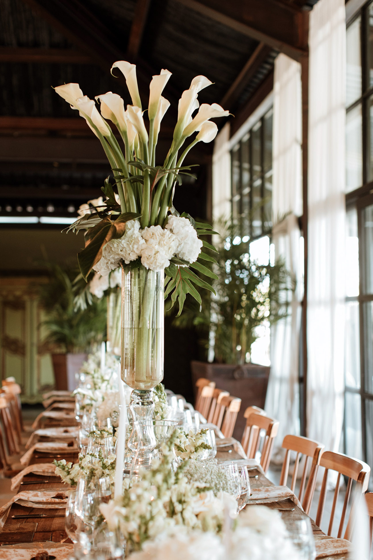 No teníamos idea de nada. Es lo que responde Andrea cuando le preguntamos qué querían hacer. Tenían el comienzo: un matrimonio de muchos invitados. De ahí, el rompecabezas tomó forma. El lugar: Casa Bali, porque el salón era amplio, porque el coctel podía ser afuera, por el ambiente imponente. La fecha: junio o julio, porque qué rico un día de verano, un día de sol y cielo azul. La comida: paella, porque los dos tienen un gusto y una devoción especiales por España. Entonces, poco a poco, el concepto fue surgiendo: un matrimonio elegante, sobrio, clásico; con toques mediterráneos, españoles. Con detalles que no pasaran desapercibidos por puntuales, por bien pensados, por memorables.