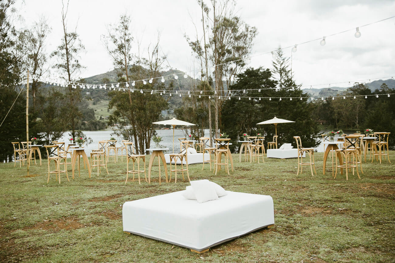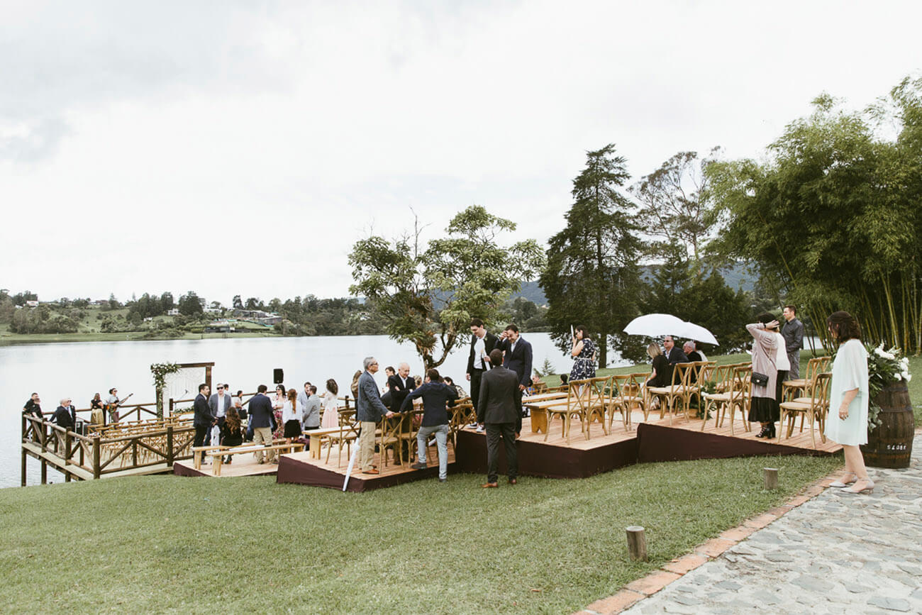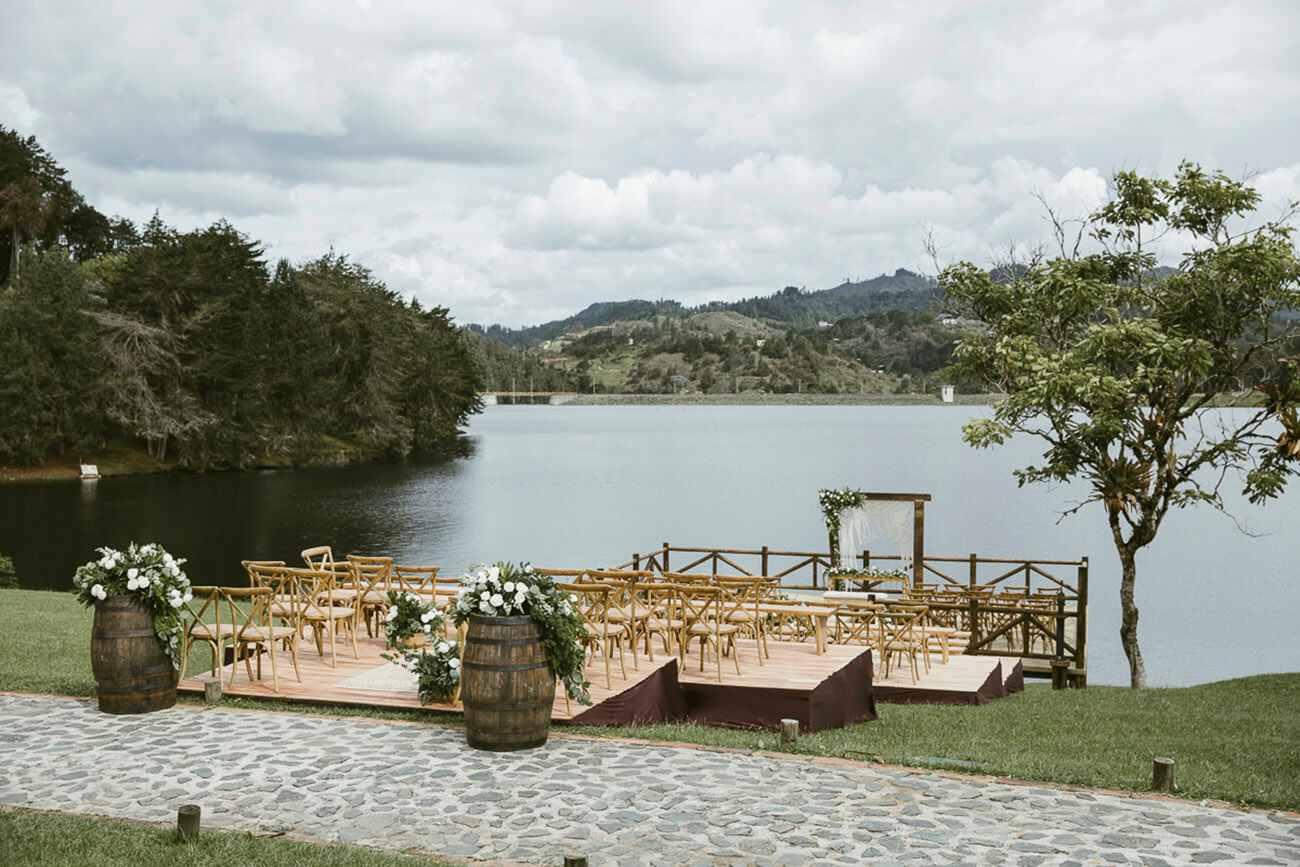 Dos ideas se desdibujaron en el proceso de planeación. La primera, hacer algo sencillo y con pocos invitados. La segunda, realizar la celebración en una finca familiar, porque el sueño –cumplido– era hacer una gran fiesta fuera del país. La lista de invitados creció y la logística del evento en la finca se hizo inviable. Eso sí, otras prioridades siguieron firmes: un matrimonio de día, campestre, con muy buena comida, sin rumba ni hora loca. Por eso cuando Caro, de Flores de Abril, los llevó a conocer Casa Vieja, en El Retiro, se enamoraron desde el primer momento. Del sitio, del paisaje, del lago, del deck en donde se imaginaron la ceremonia.
