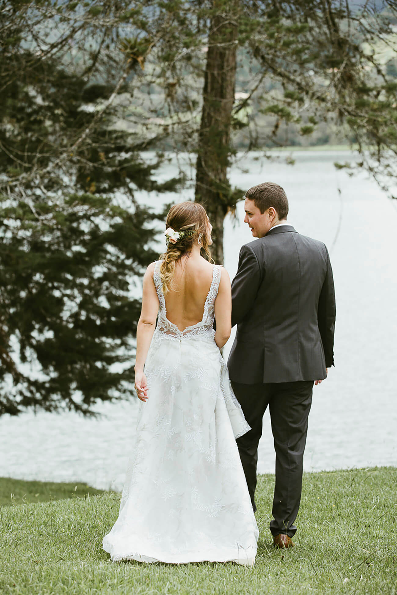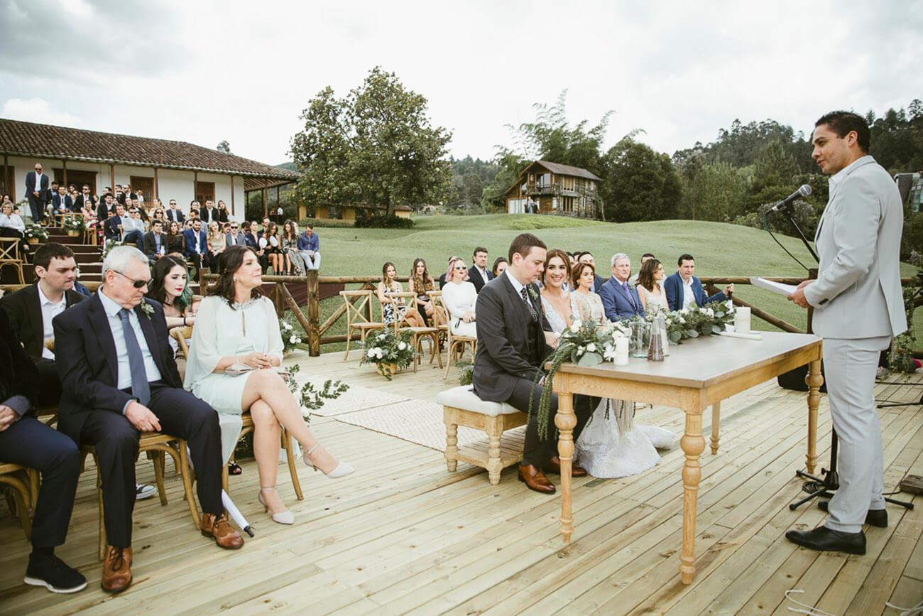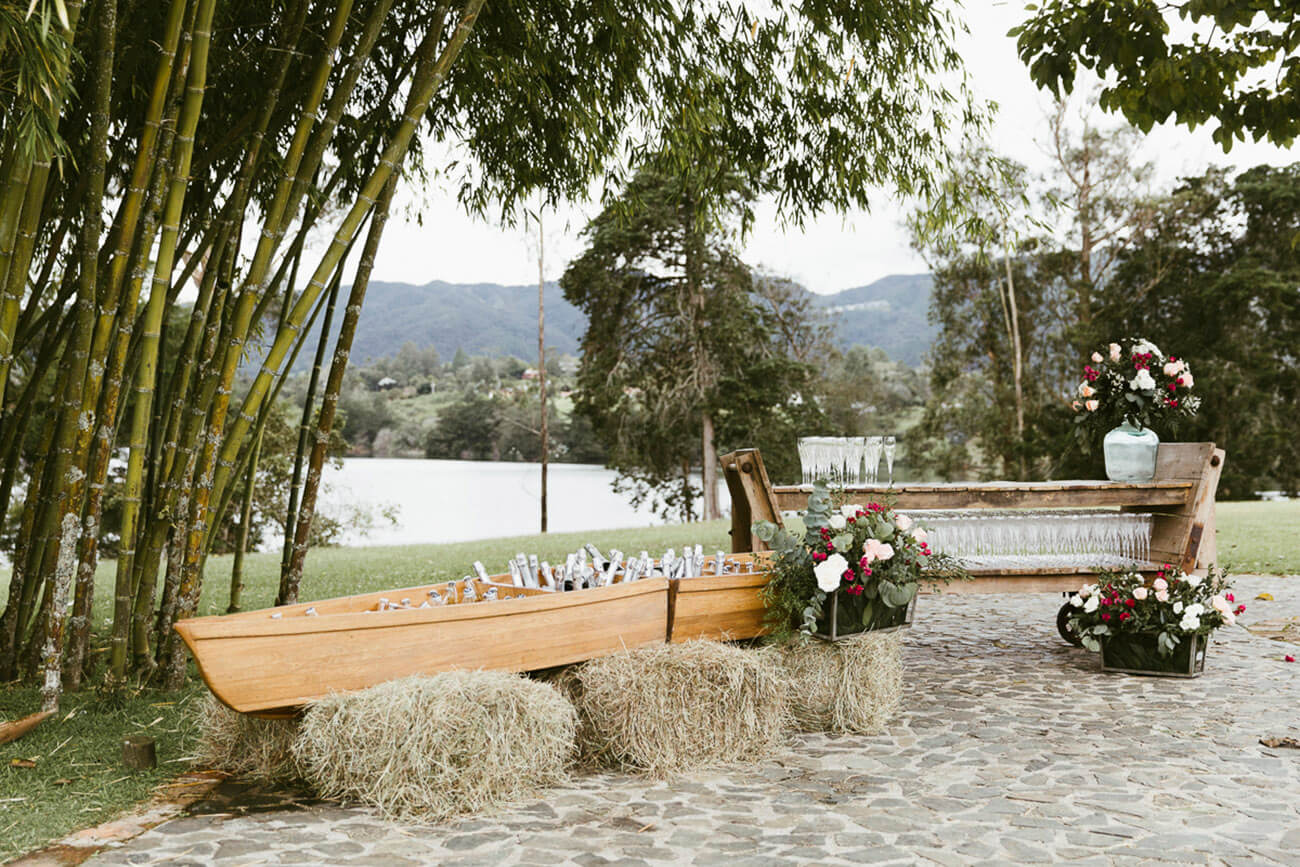 Dos ideas se desdibujaron en el proceso de planeación. La primera, hacer algo sencillo y con pocos invitados. La segunda, realizar la celebración en una finca familiar, porque el sueño –cumplido– era hacer una gran fiesta fuera del país. La lista de invitados creció y la logística del evento en la finca se hizo inviable. Eso sí, otras prioridades siguieron firmes: un matrimonio de día, campestre, con muy buena comida, sin rumba ni hora loca. Por eso cuando Caro, de Flores de Abril, los llevó a conocer Casa Vieja, en El Retiro, se enamoraron desde el primer momento. Del sitio, del paisaje, del lago, del deck en donde se imaginaron la ceremonia.