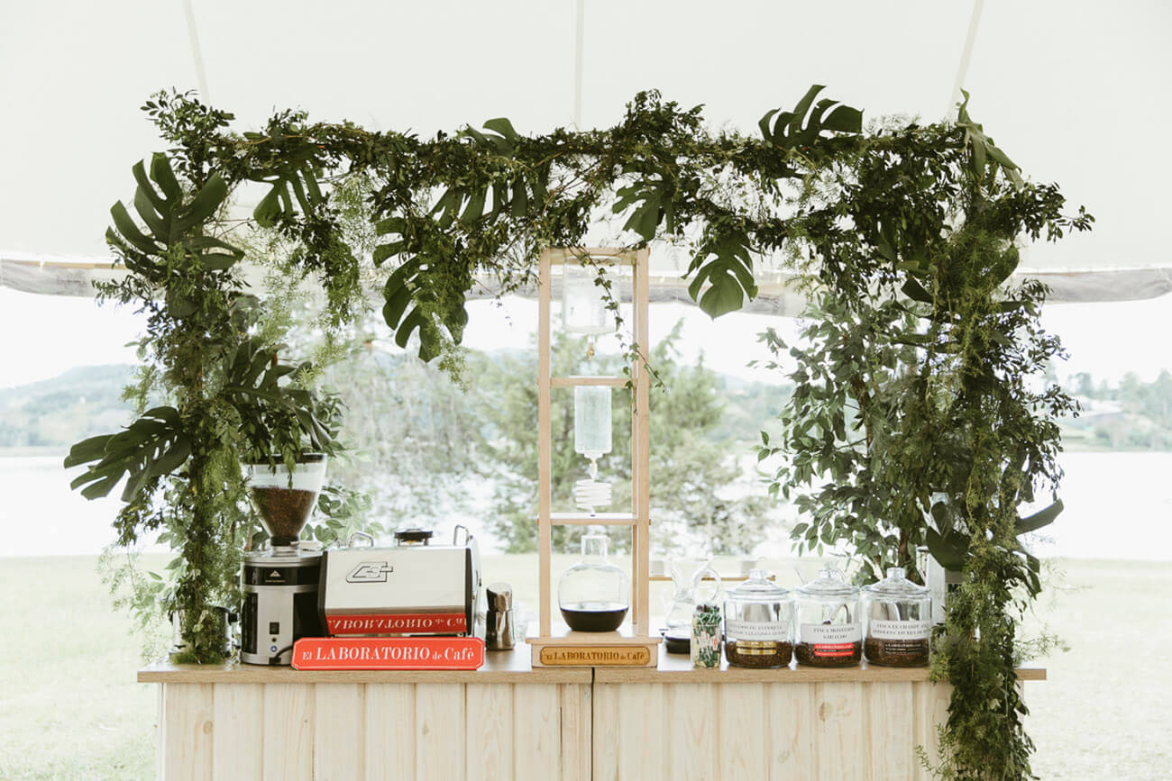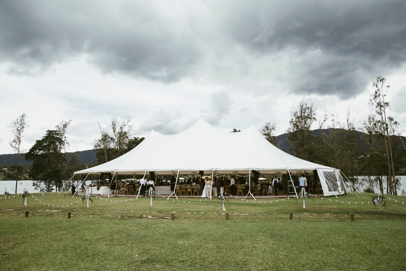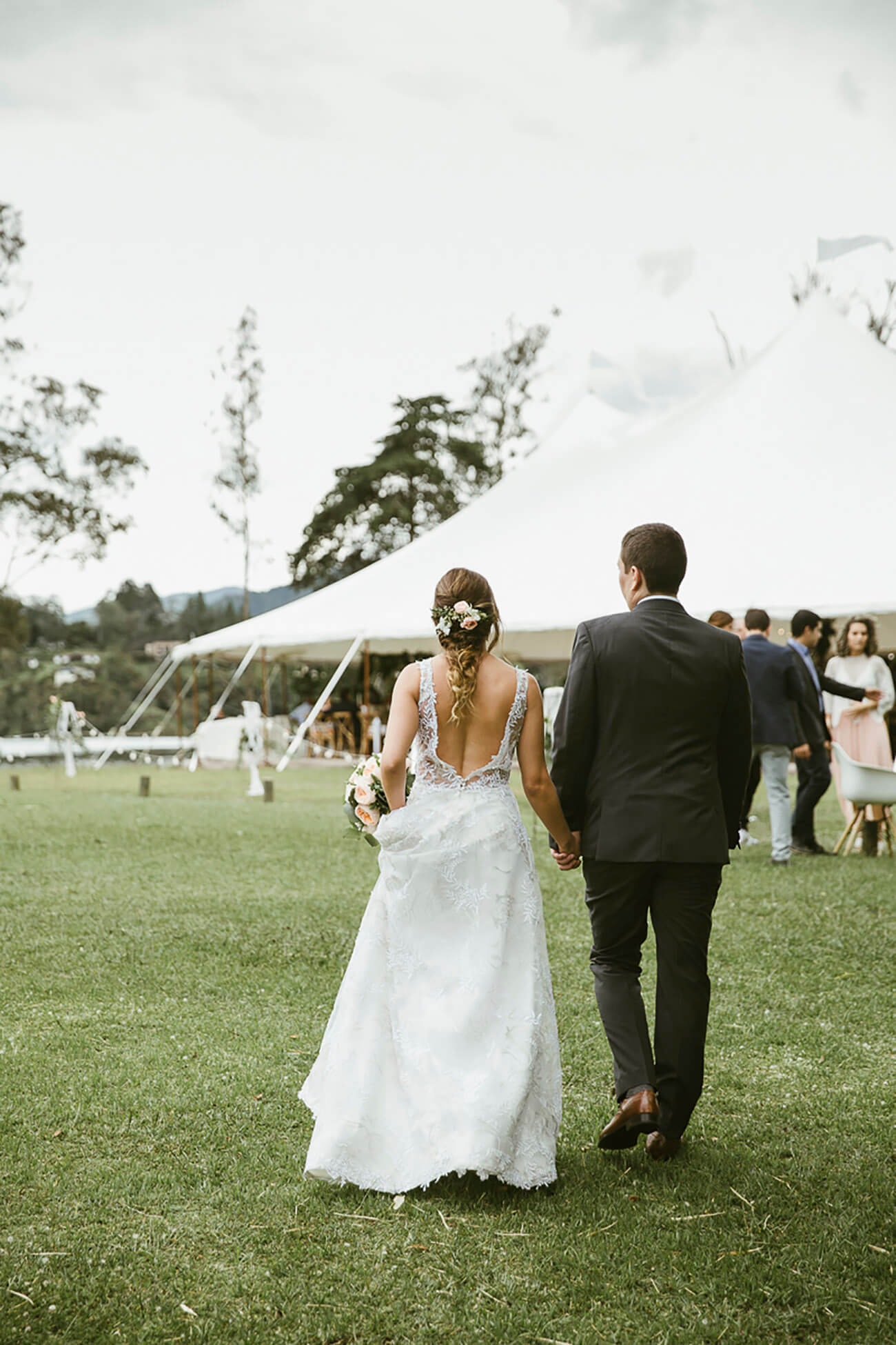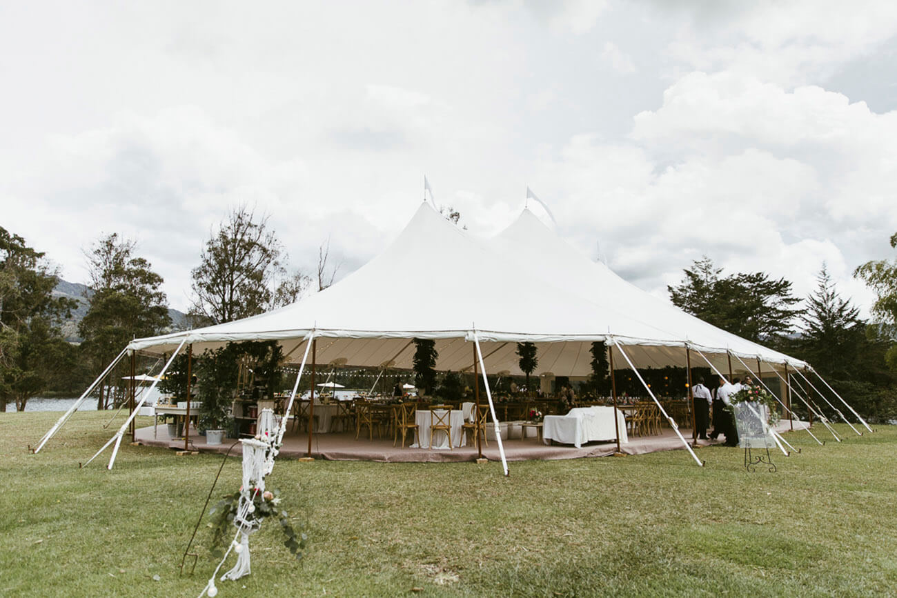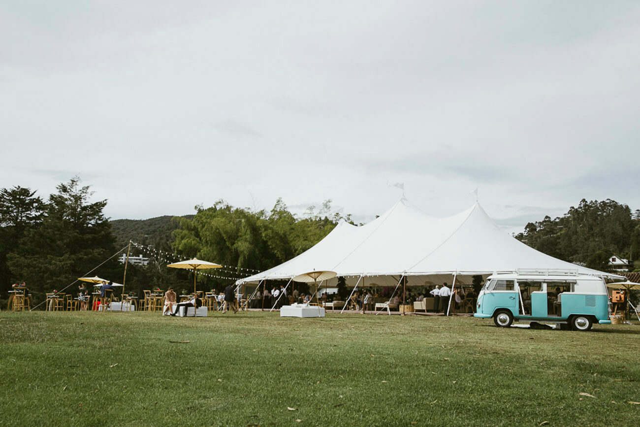“Un día llegué a la casa con algunas revistas de novias y en una de ellas vimos una carpa hermosa. Les mostramos a Maria y a Caro, ellas empezaron a investigar y nos contaron que conocían a un proveedor que tenía ese mismo diseño en Medellín, entonces definimos que la fiesta iba a ser en esa carpa”. Con la locación elegida y la carpa como punto de partida –con ese lindo aire de circo o festival–, se soñaron un matrimonio poco convencional, al aire libre, tranquilo pero divertido, sin mucha etiqueta ni protocolo, más informal. Un matrimonio en el que todos sus invitados pudieran disfrutar del paisaje. Un día de buena comida, buena conversación, buena música y buenos tragos.