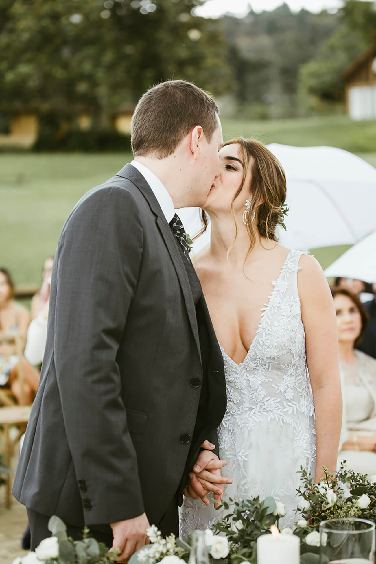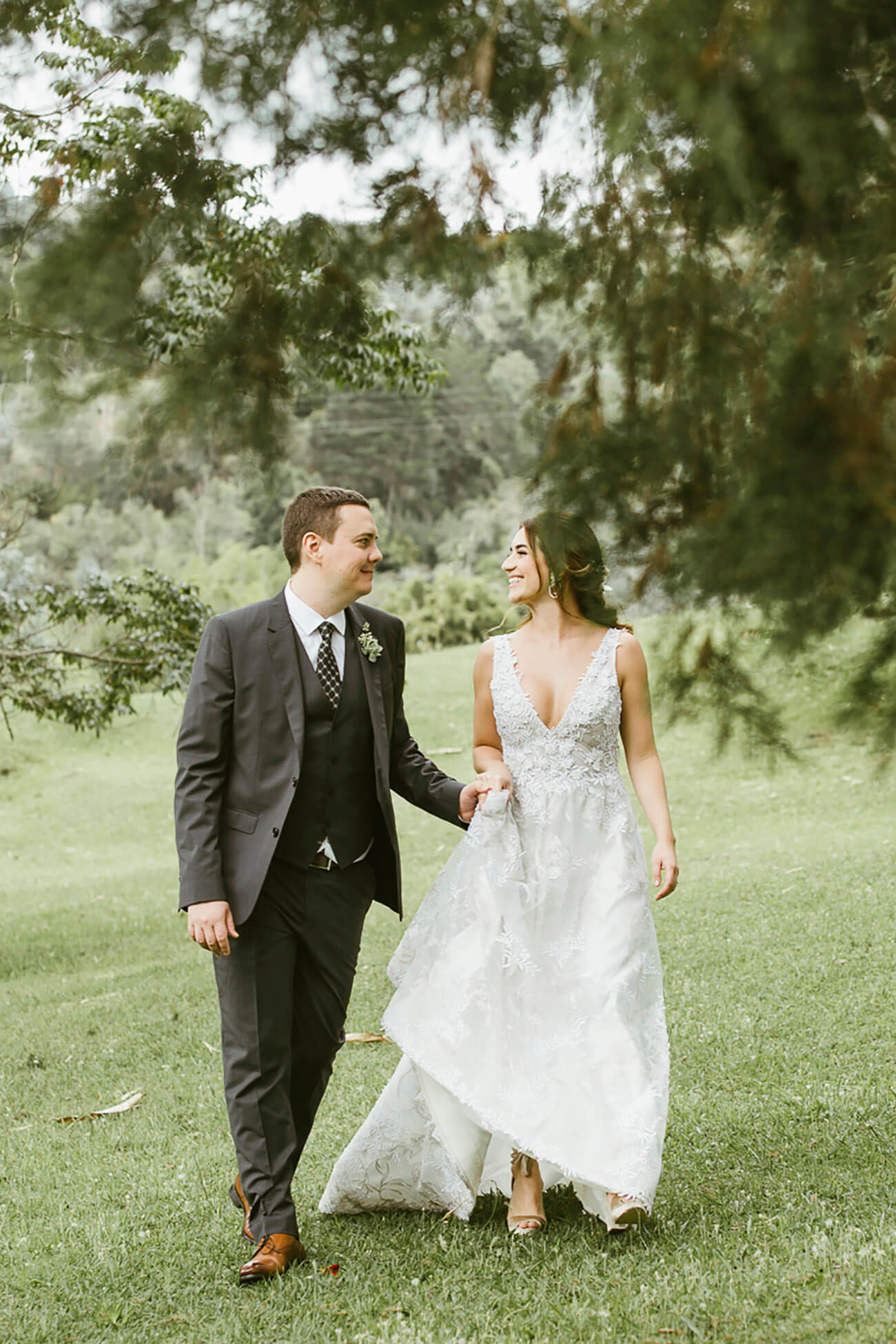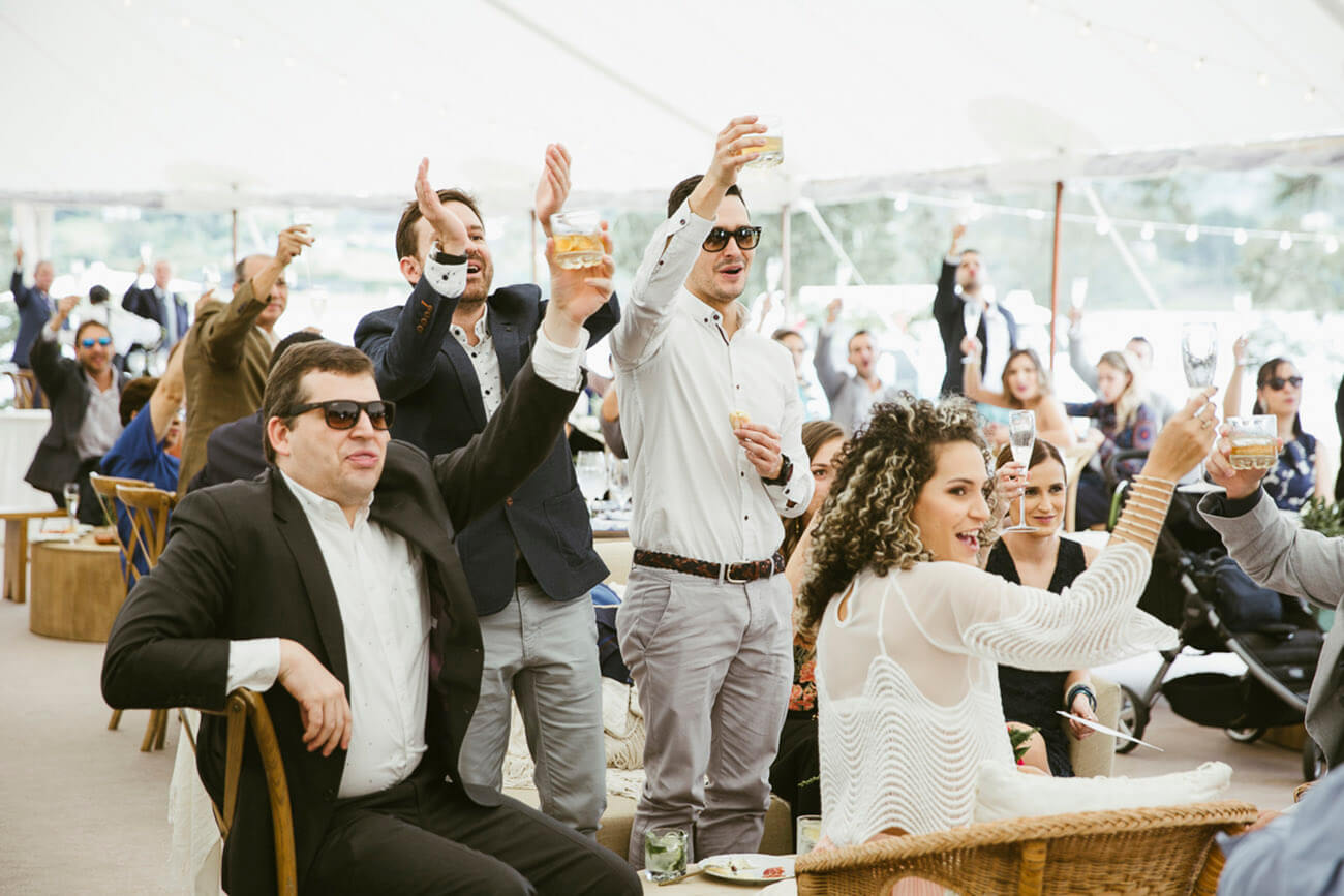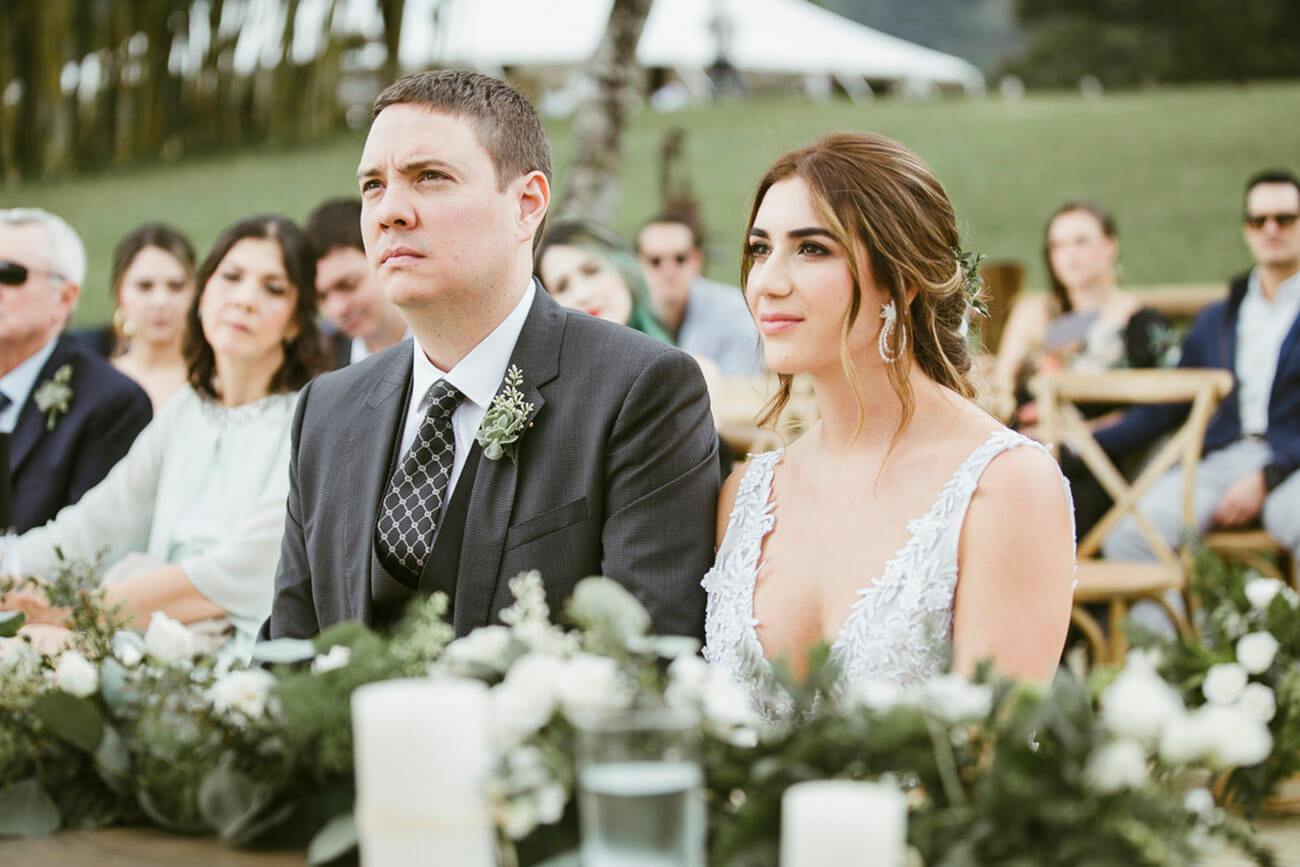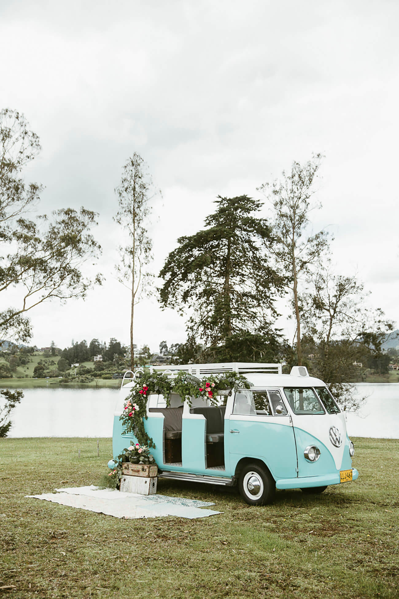 “Un día llegué a la casa con algunas revistas de novias y en una de ellas vimos una carpa hermosa. Les mostramos a Maria y a Caro, ellas empezaron a investigar y nos contaron que conocían a un proveedor que tenía ese mismo diseño en Medellín, entonces definimos que la fiesta iba a ser en esa carpa”. Con la locación elegida y la carpa como punto de partida –con ese lindo aire de circo o festival–, se soñaron un matrimonio poco convencional, al aire libre, tranquilo pero divertido, sin mucha etiqueta ni protocolo, más informal. Un matrimonio en el que todos sus invitados pudieran disfrutar del paisaje. Un día de buena comida, buena conversación, buena música y buenos tragos.
