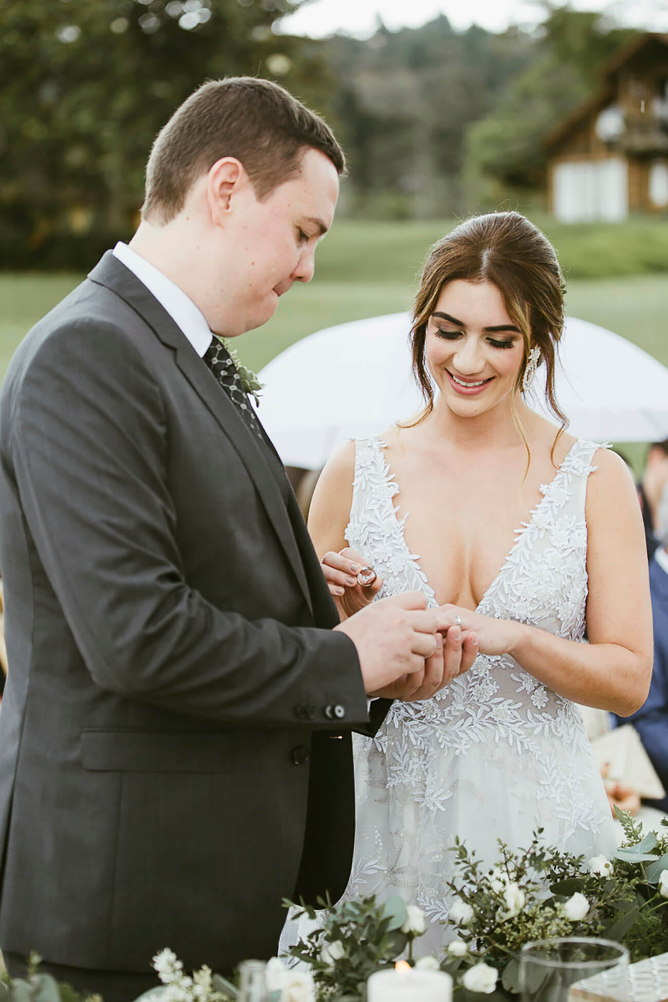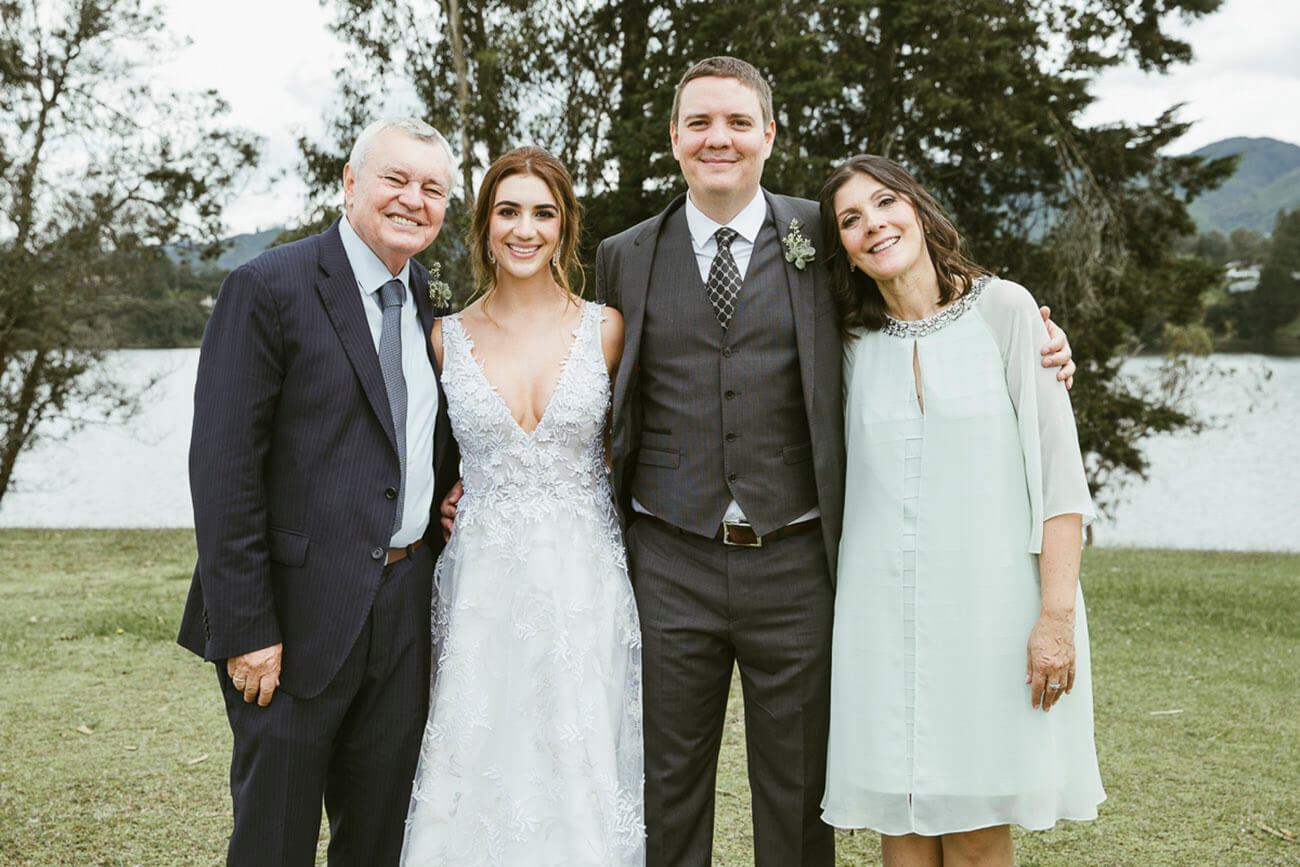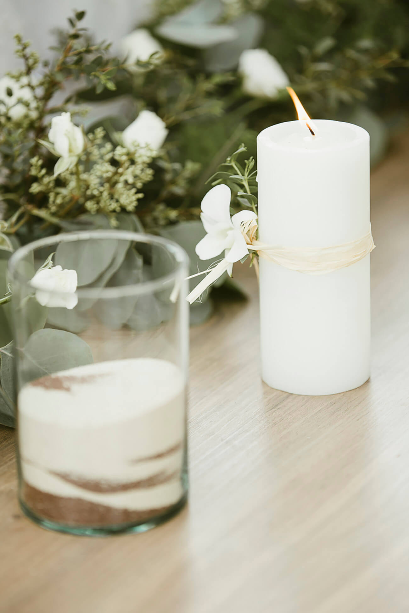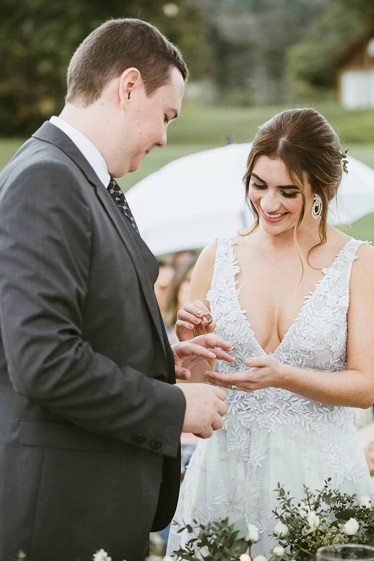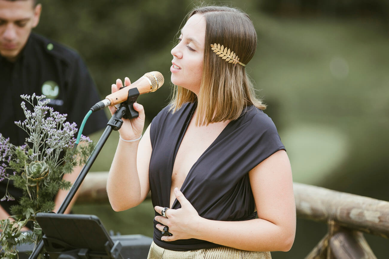 La ceremonia, con el lago como telón de fondo, un altar de madera rústica diseñado por Flores de Abril y tejido en macramé por Ukelele, tuvo momentos muy especiales. “No queríamos una ceremonia religiosa, pero tampoco dejar de hacer algo especial. María Antonia nos presentó a Mauricio Preciado, quien desde el primer momento en que lo conocimos, sentimos que estaba alineado con lo que queríamos para la ceremonia: algo corto pero especial, y sobre todo, que tuviera un significado para nosotros en ese día tan importante”. Inició con una lectura de El Principito, sobre las diferencias entre querer y amar. Continúo con un ritual de arenas, la de cada uno con un color y un significado distinto, de acuerdo con su personalidad. Para Anita, vinotinto: pasión, calidez, actividad, fuerza, movimiento. Para Alejo, beige: tranquilidad, transparencia, calma, serenidad. El resultado: alcanzar un equilibrio. “Las guardamos para que el día que construyamos nuestra casa, sirvan como cimiento de nuestro hogar. Luego hicimos la ceremonia de la luz y el intercambio de argollas. La canción con la que oficialmente fuimos esposos fue I’m Yours, en la hermosa voz de Candelaria, acompañada por La liebre”.