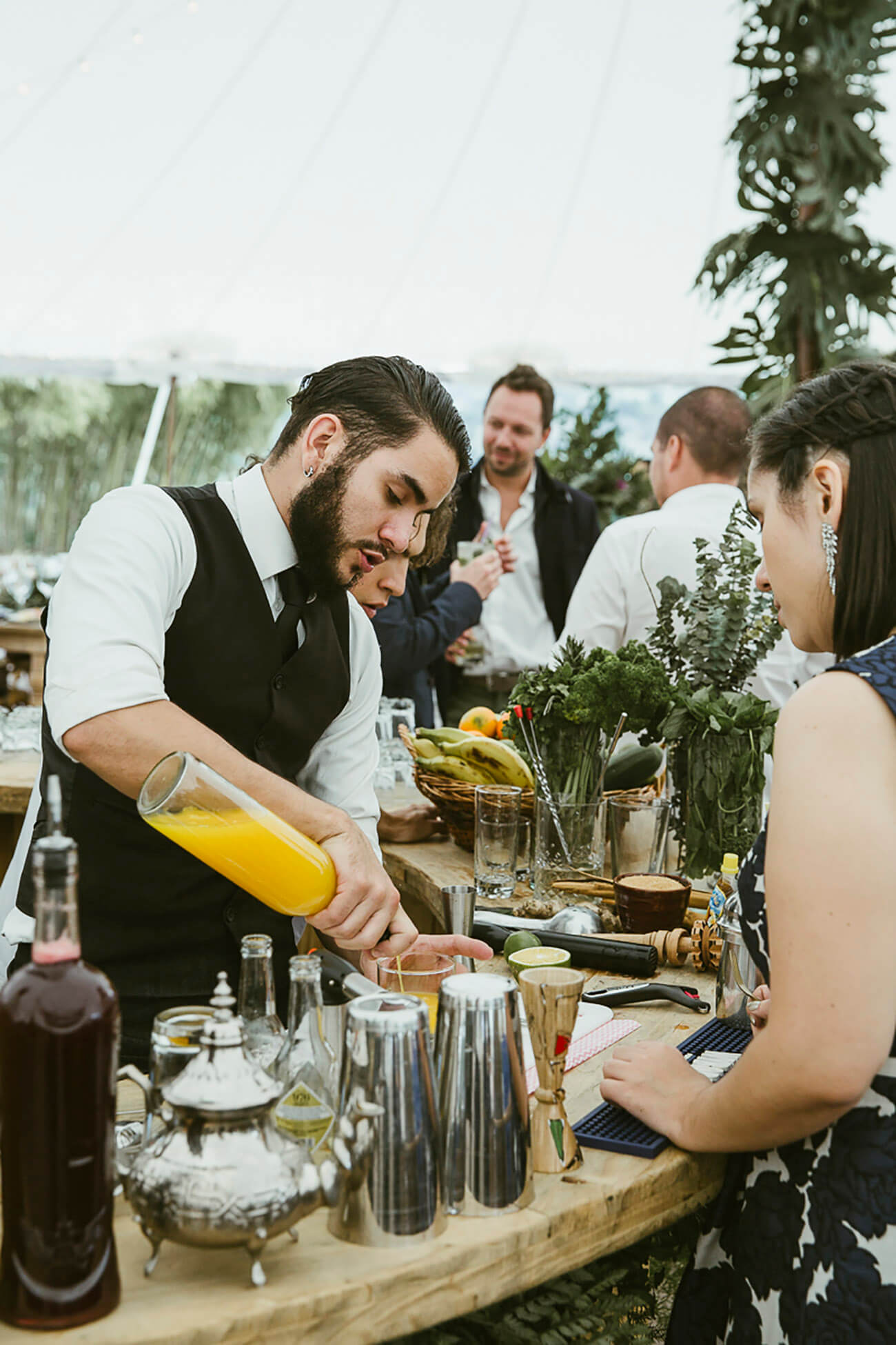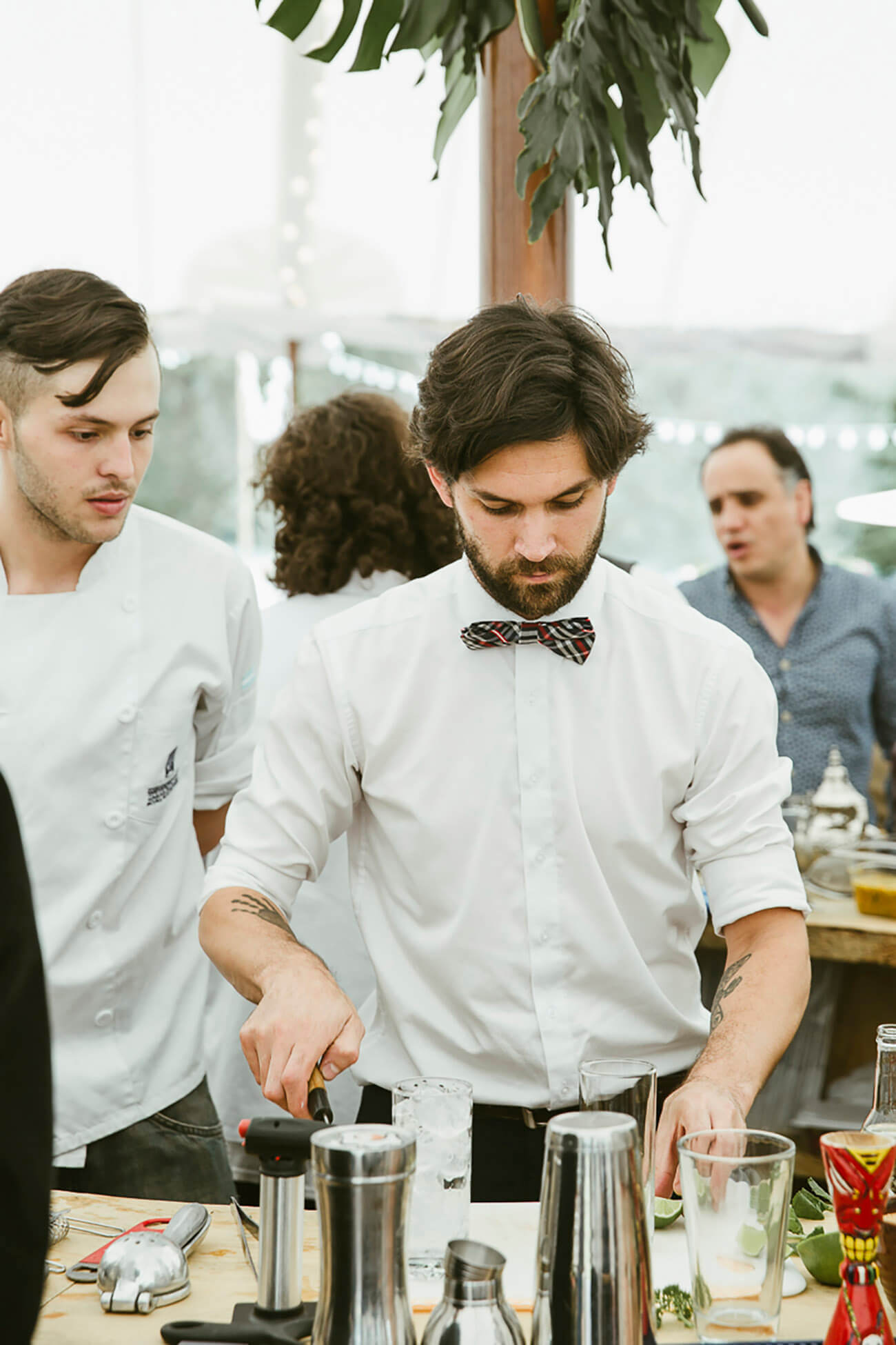 "El barman, Juan Basquez, fue una de las ‘atracciones’ de la fiesta. Además de ser argentino (todas las mujeres le hacían fila), como él y su encantador equipo estaban en el centro de la carpa, pusieron a probar a los invitados todos sus cocteles y más de uno terminó muy prendido. Fue espectacular ver cómo todos iban al centro a aprender a mezclar sabores, probar y disfrutar. No queríamos tragos muy fuertes, por ser de día, pero increíblemente TODO el licor se acabó para el final de la fiesta y muchos querían remate”.