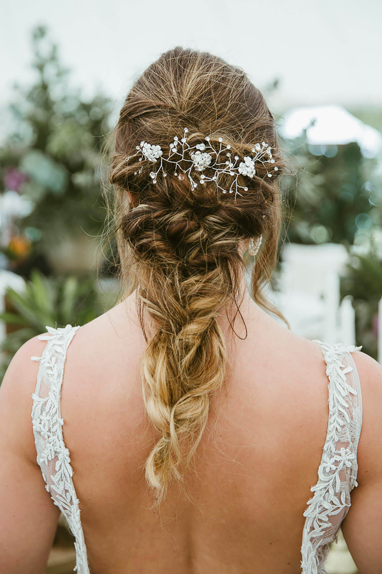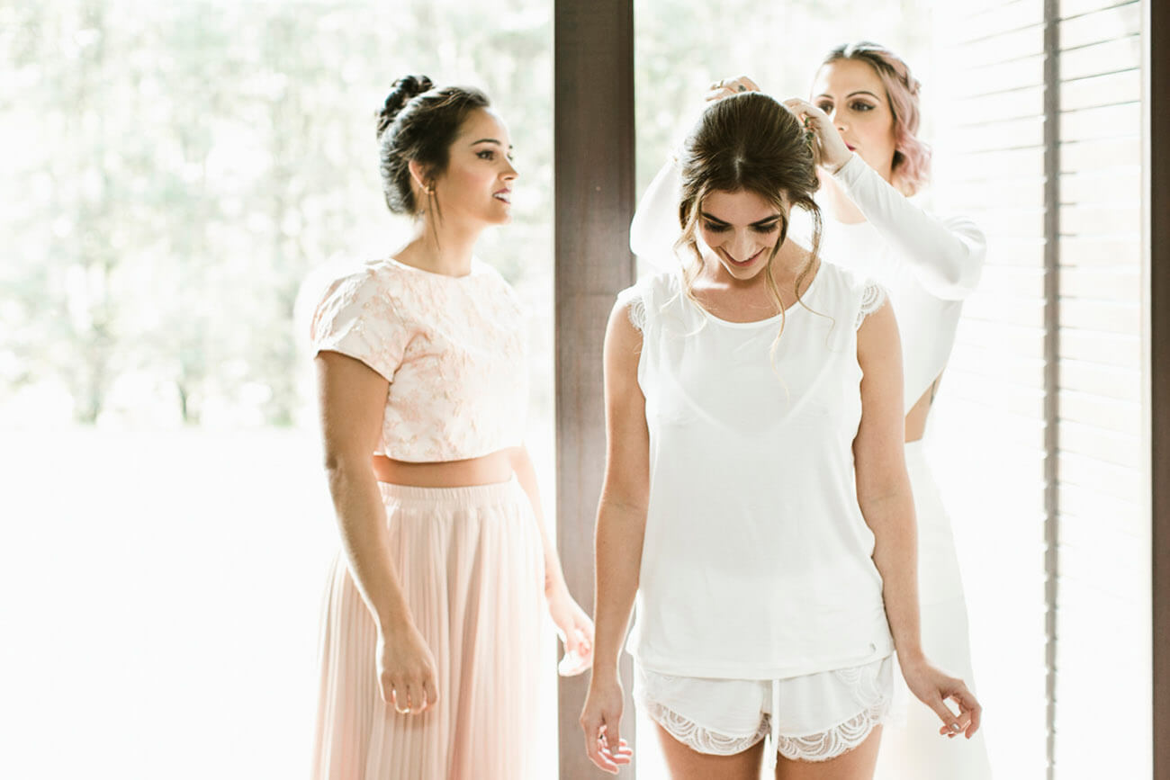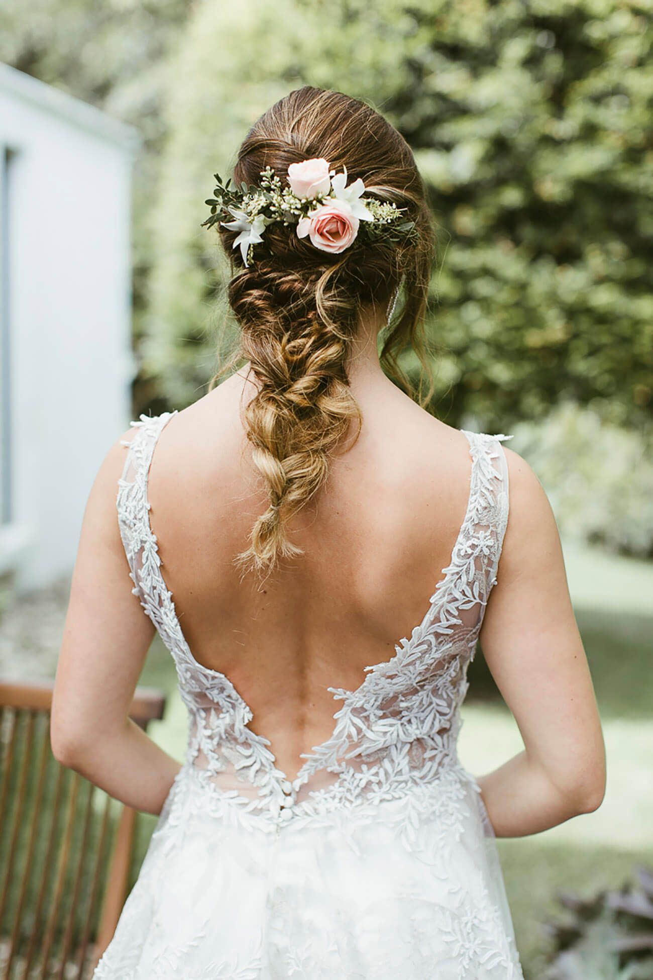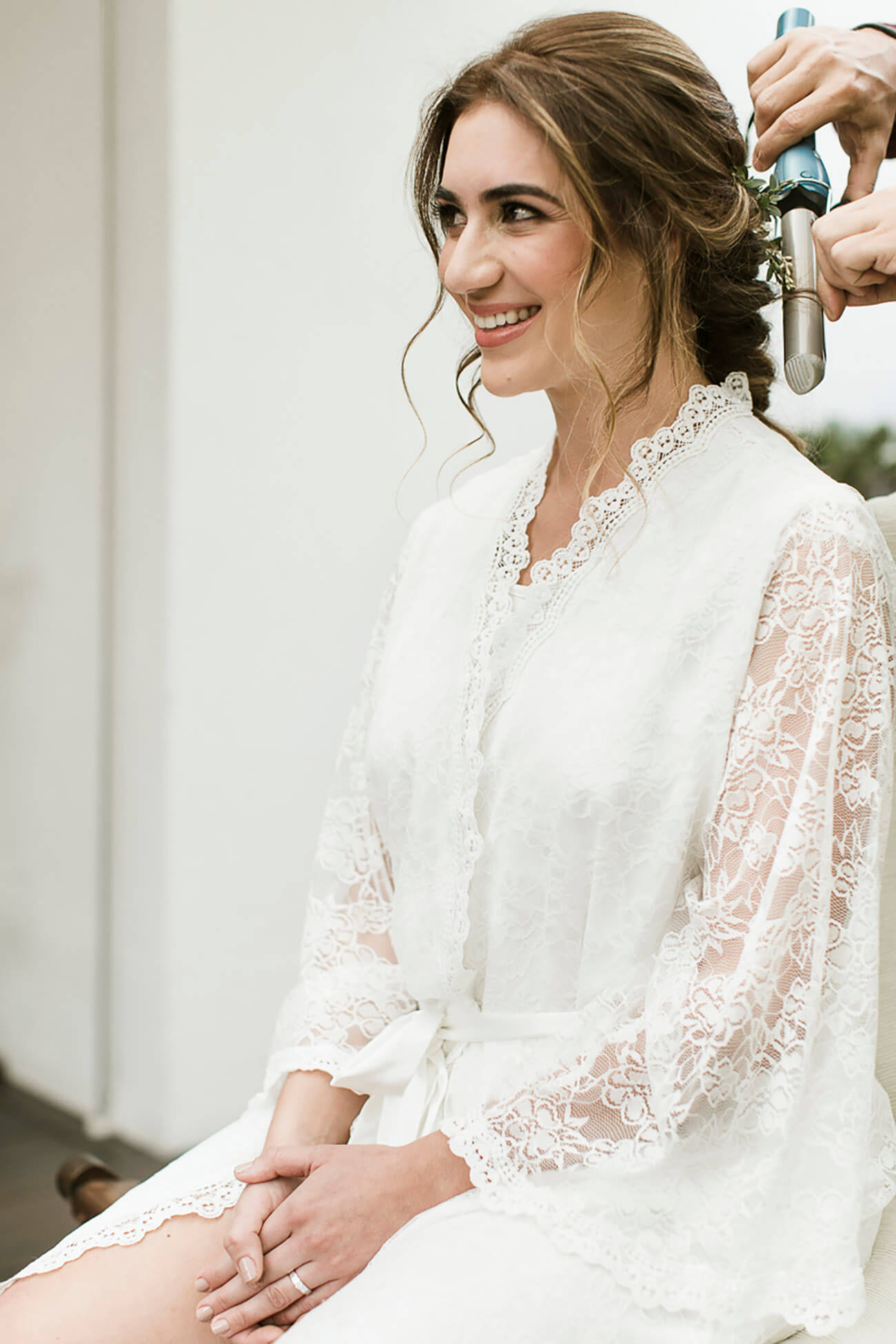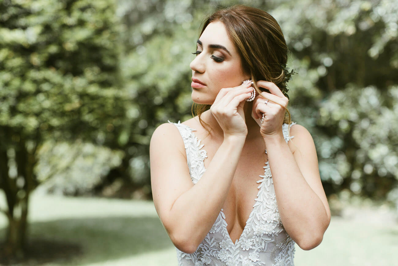 El vestido llevaba la firma de Luisa Nicholls. “Inicialmente tenía en mente un vestido de Anna Campbell o de Grace Love Lace, pero por el poco tiempo no alcanzaba a llegarme desde Australia. Decidí ir donde Luisa, le mostré mis referentes y me dejé asesorar. Me encantó el resultado. Luisa y su equipo entendieron todo lo que quería, las telas que tienen son hermosas, disfruté mucho todo el proceso, ya que nunca había soñado casarme y menos con el vestido de novia”. David Hoyos, su peluquero de toda la vida, se encargó de su maquillaje y peinado. Al ser una celebración de día, quería algo muy natural, desestructurado. Para la ceremonia, Anita llevó un accesorio de flores naturales; y para la fiesta, lo reemplazó por una pieza de Zawadzky.