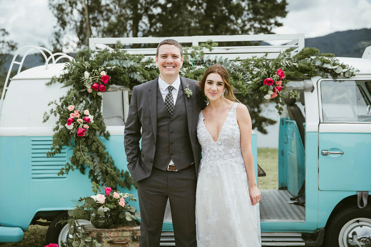 ANÉCDOTAS DIVERTIDAS. “Después de la ceremonia, y cuando todos pasaron a la carpa, empezamos a tomarnos muchas fotos con todos los amigos en la fotocabina y en una Volkswagen antigua con todos los grupos de invitados. Hubo un momento en el que nos dimos cuenta de que ¡nos habíamos insolado!