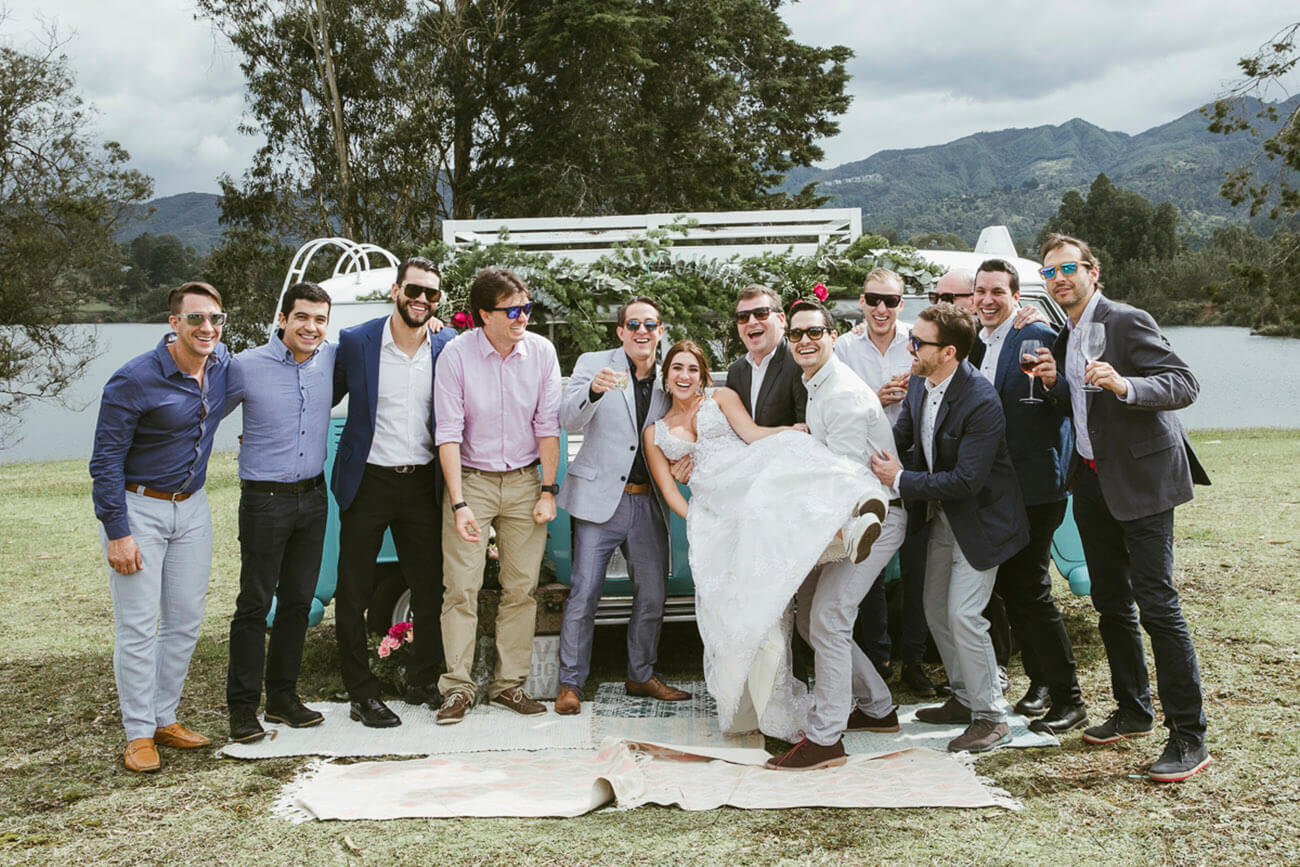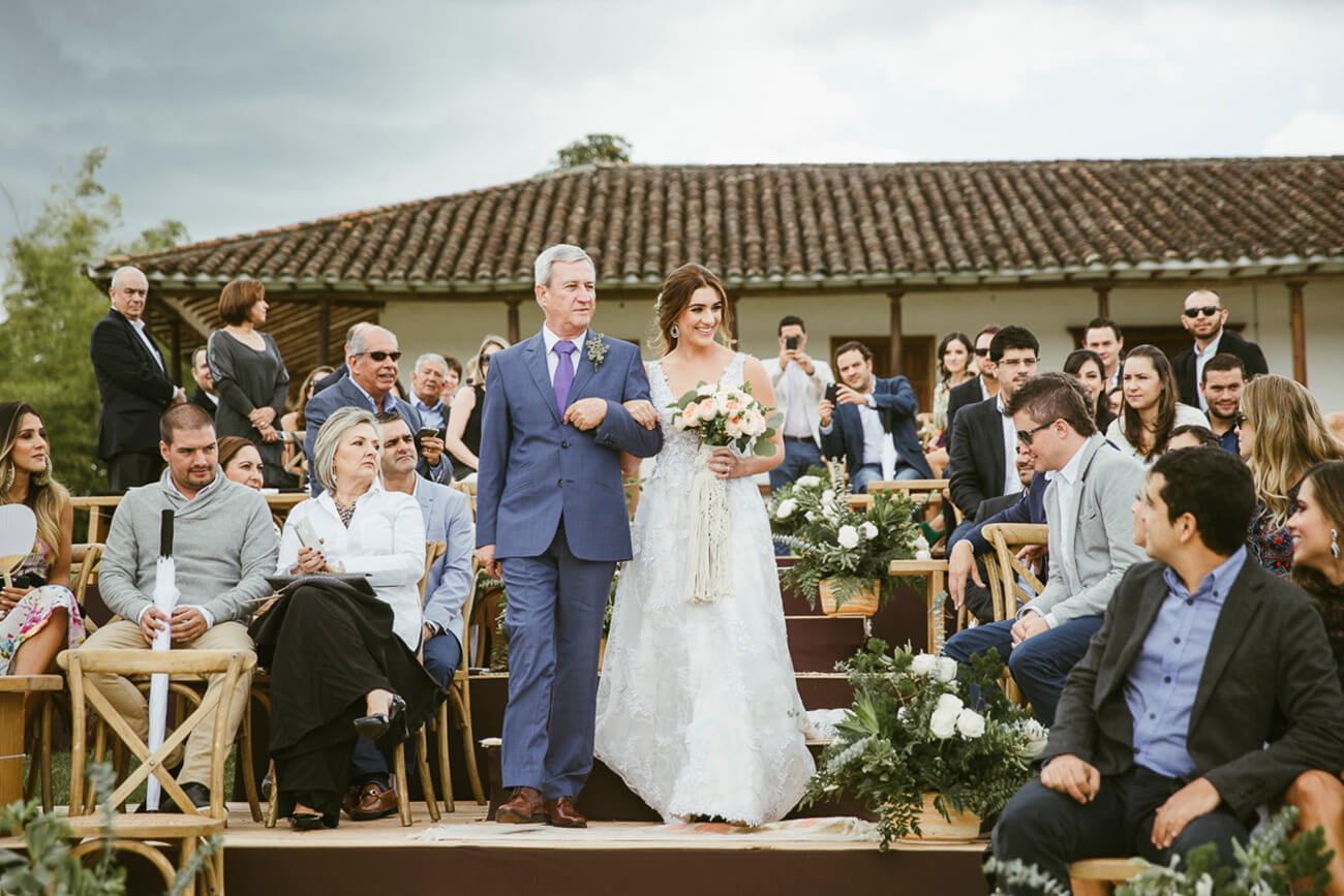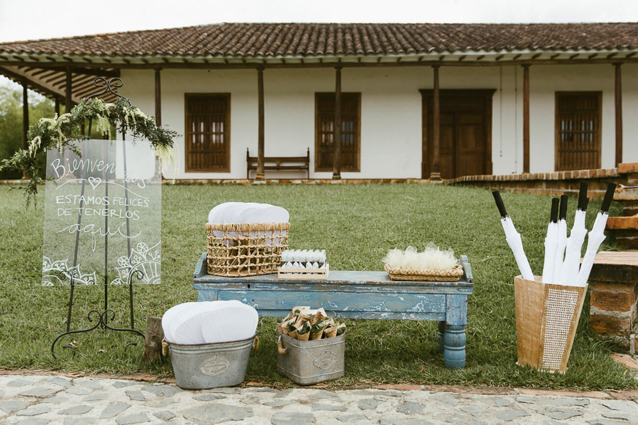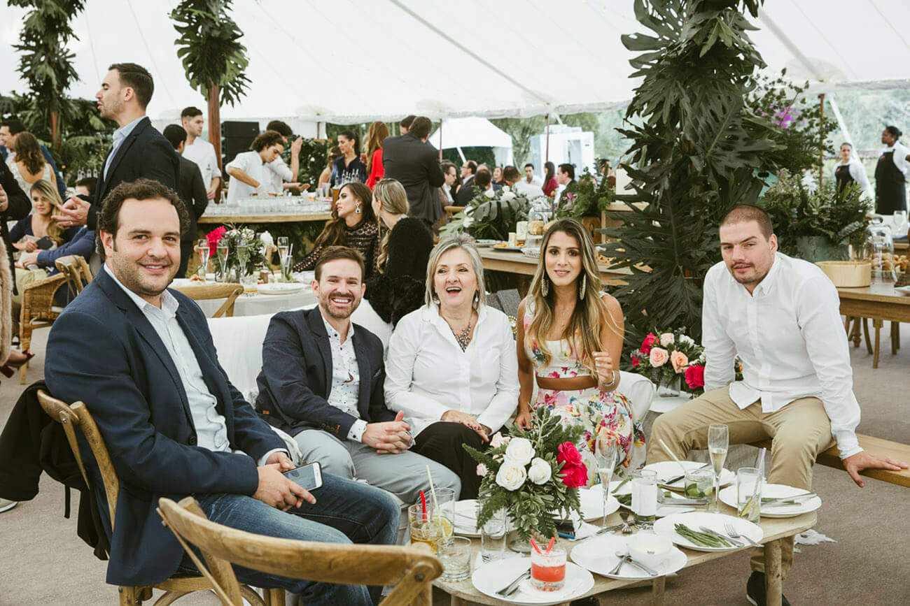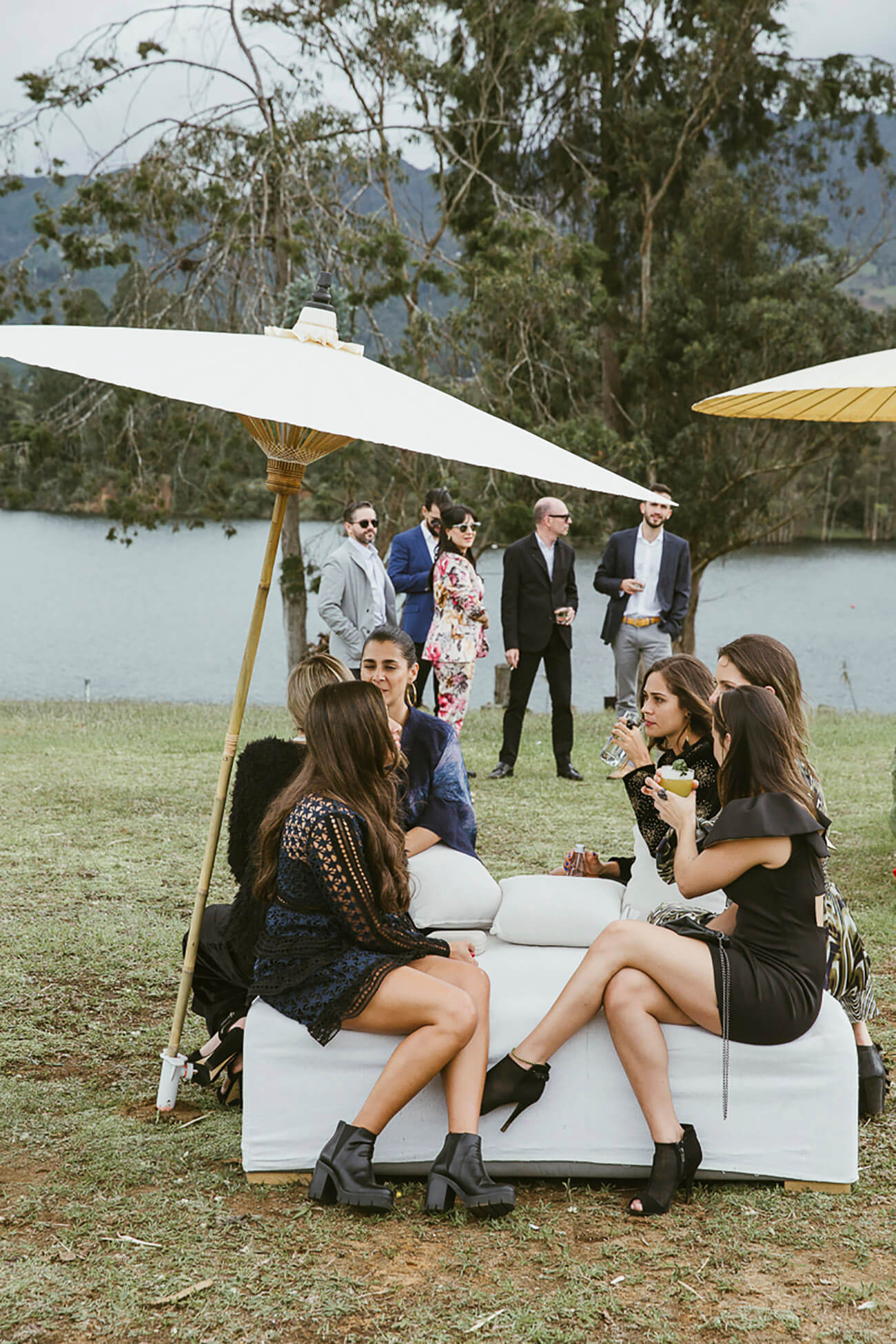 Invitados cómodos, pero sin restarle elegancia al evento. “Cuando llamaron a confirmar asistencia, las niñas de Flores de Abril hicieron un trabajo increíble al explicarles a cada uno que nuestra fiesta iba a ser campestre. Que los hombres fueran de blazer, camisa y pantalón, sin corbata; y las mujeres de vestido y tacones que no se enterraran en la manga. Tuvimos en cuenta comprar unos ‘taquitos’ que se ponen en los zapatos para evitar que se entierren”.