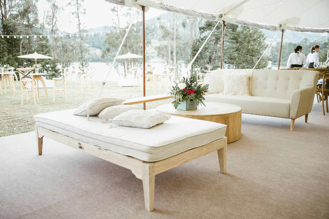 Una carpa como punto de partida. Una celebración de día, al aire libre, junto a un lago. Una fiesta tranquila, sin rumba ni hora loca. A cambio: buena comida, buenos tragos, buena música, buena conversación. Un matri diferente, planeado en poco tiempo, pero con todo el amor y la buena energía. Aquí la historia.