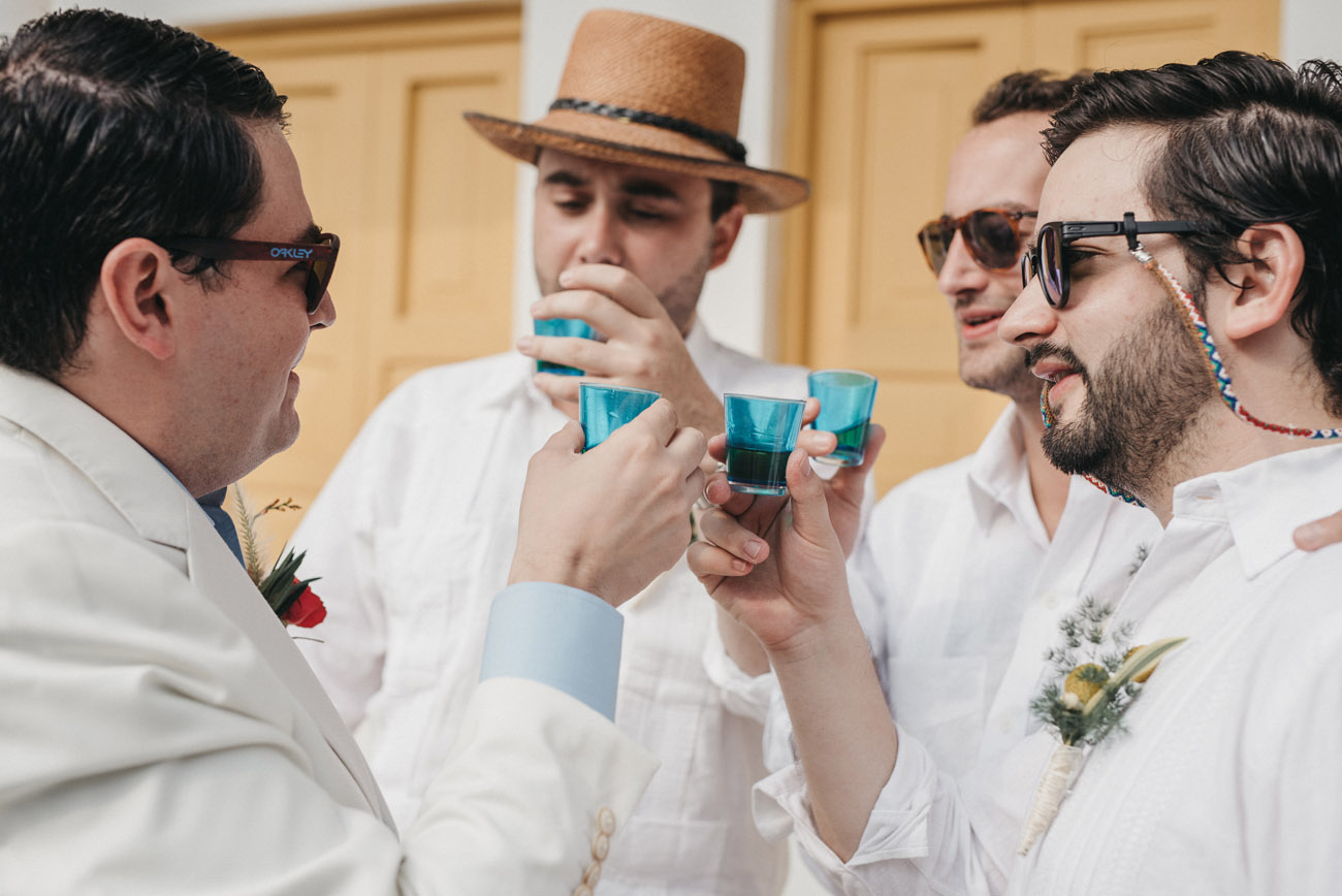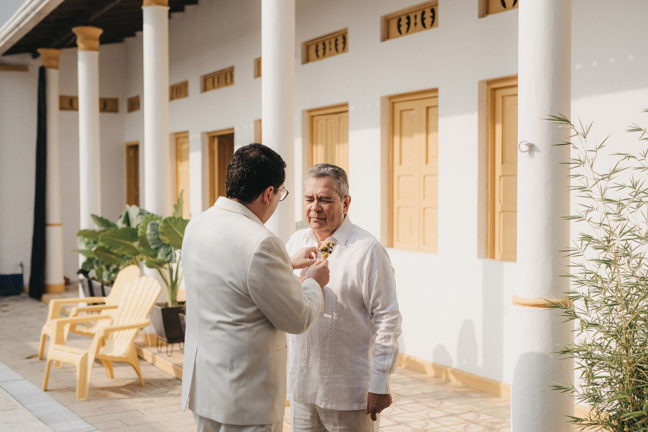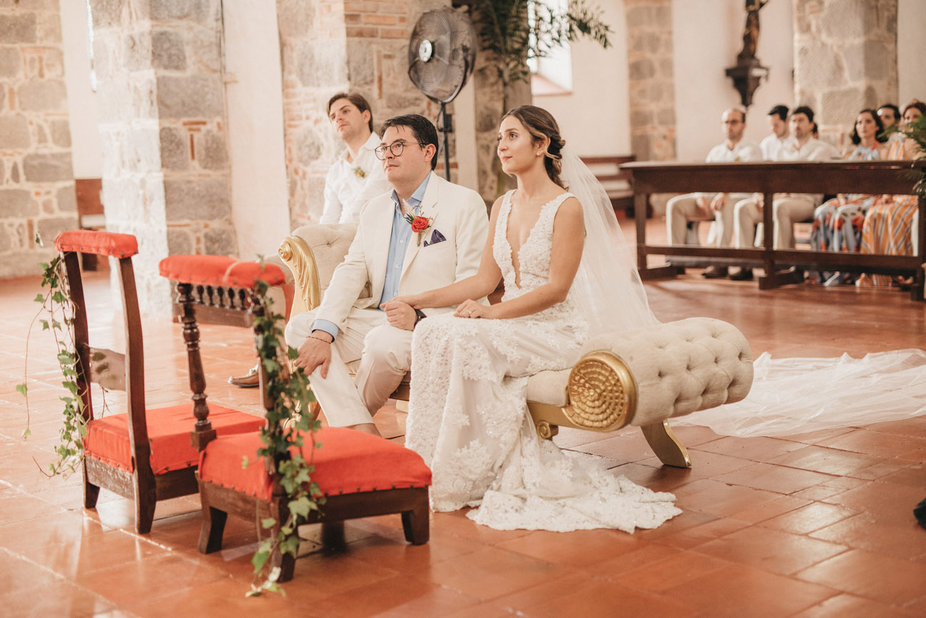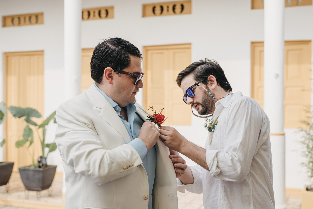 La noche antes hubo comida donde los suegros de Camila. Una cena española donde las dos familias celebraron al son de los mariachis que Juan David llevó. La antesala ideal para el día que iba a llegar, que llegó, por supuesto, con nervios y ansiedad y con claridad y soltura. Ya habían entregado a un ancianato 160 huevos (uno por invitado) para que no lloviera, porque aunque en Honda hace mucho calor por esa época el cielo estaba acuoso, ya habían escrito a mano las 160 notas personales que iban encima de los platos agradeciéndole a cada persona su presencia, su cariño, su energía, ya habían (las damas de honor de ella) revisado que cada cosa estuviera en su lugar, ya habían hecho todo con amor y paciencia… ya nada podía salir mejor.