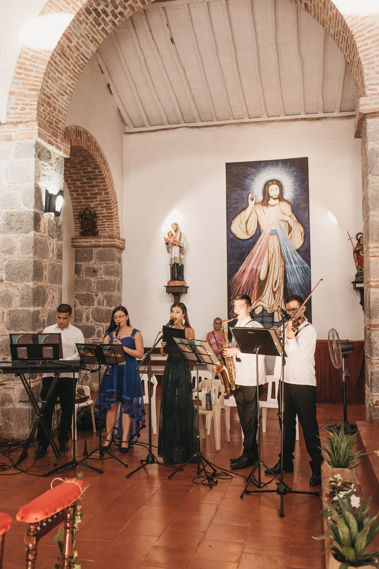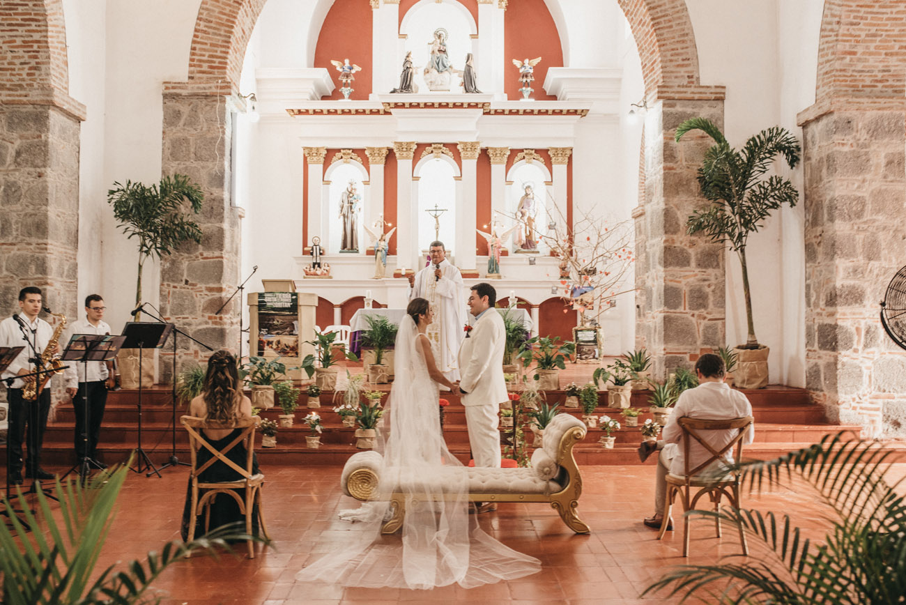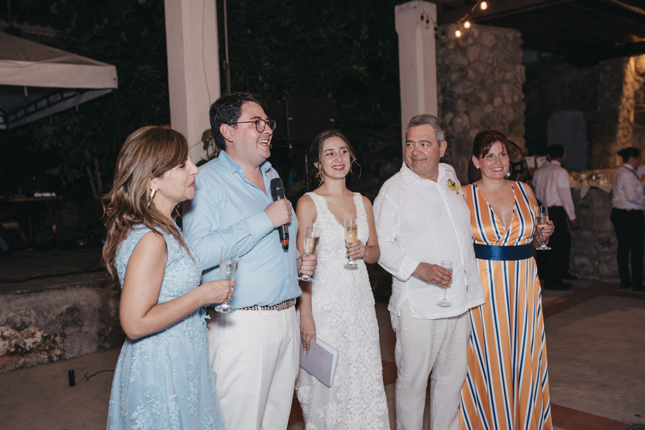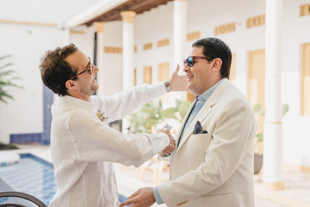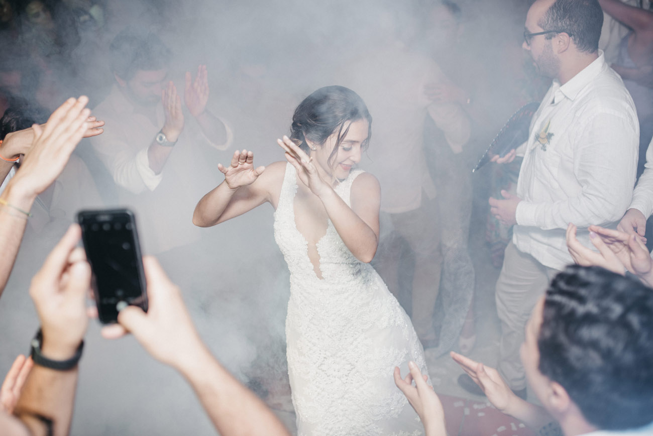La noche antes hubo comida donde los suegros de Camila. Una cena española donde las dos familias celebraron al son de los mariachis que Juan David llevó. La antesala ideal para el día que iba a llegar, que llegó, por supuesto, con nervios y ansiedad y con claridad y soltura. Ya habían entregado a un ancianato 160 huevos (uno por invitado) para que no lloviera, porque aunque en Honda hace mucho calor por esa época el cielo estaba acuoso, ya habían escrito a mano las 160 notas personales que iban encima de los platos agradeciéndole a cada persona su presencia, su cariño, su energía, ya habían (las damas de honor de ella) revisado que cada cosa estuviera en su lugar, ya habían hecho todo con amor y paciencia… ya nada podía salir mejor.